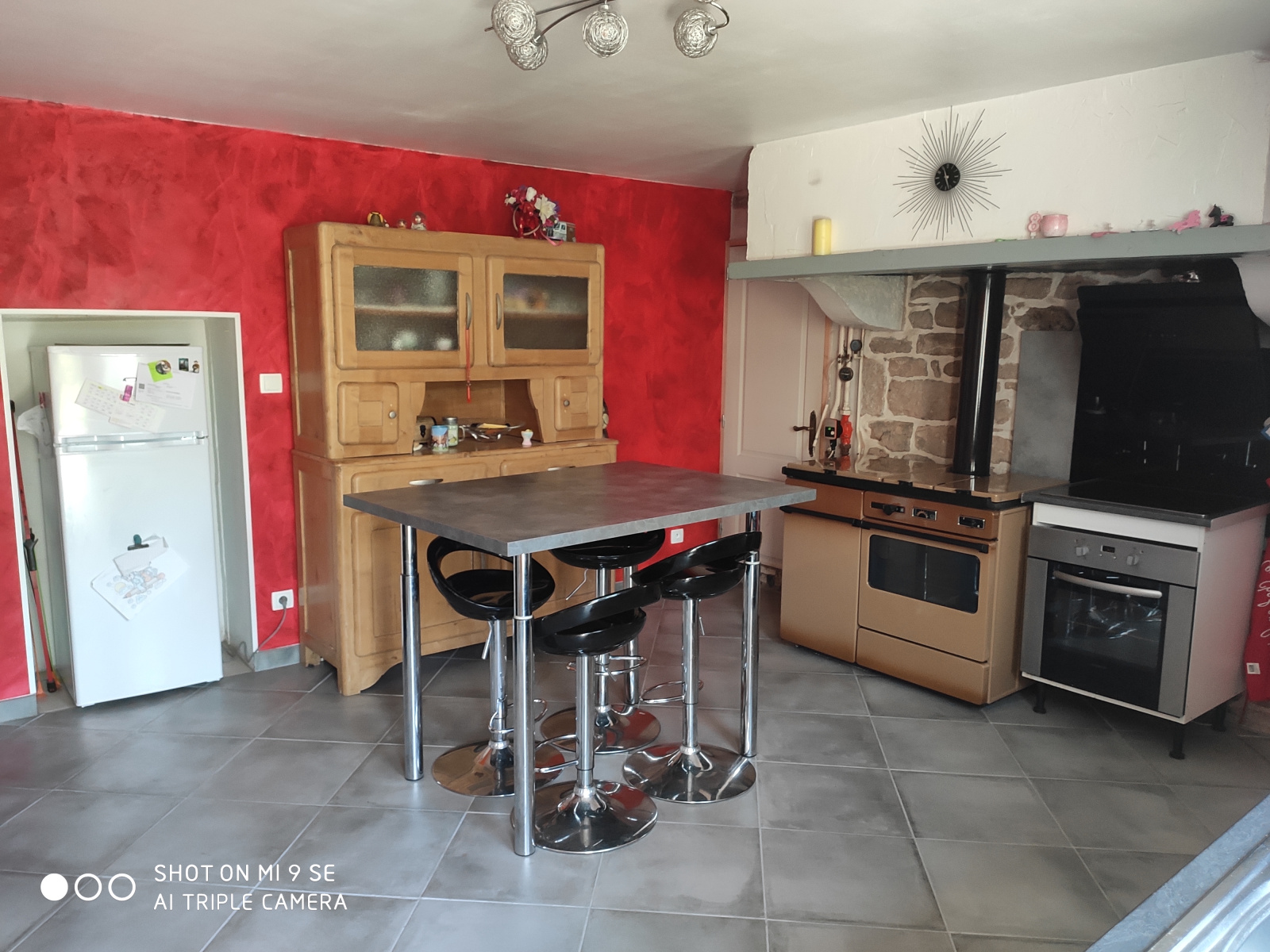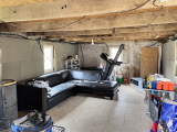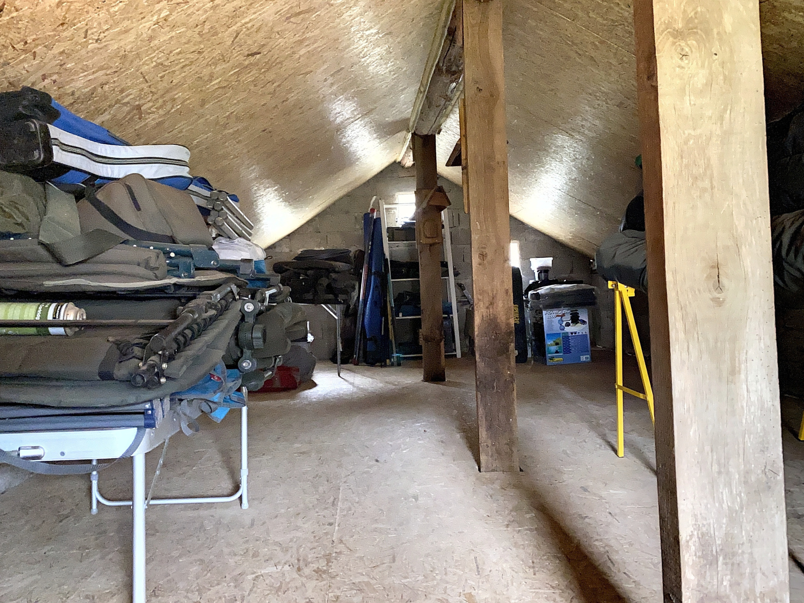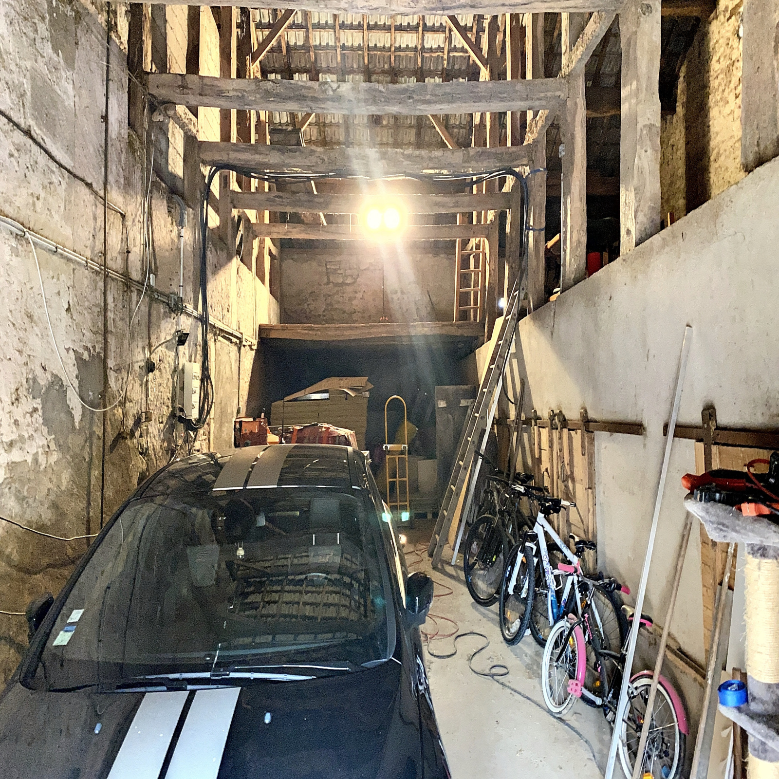 Un local de 32 m² environ avce poêle à bois (salle de sport).