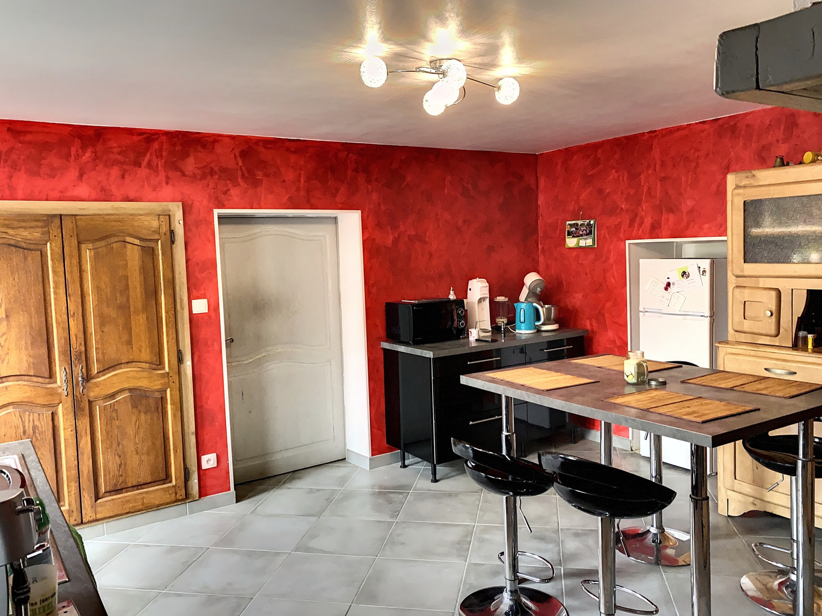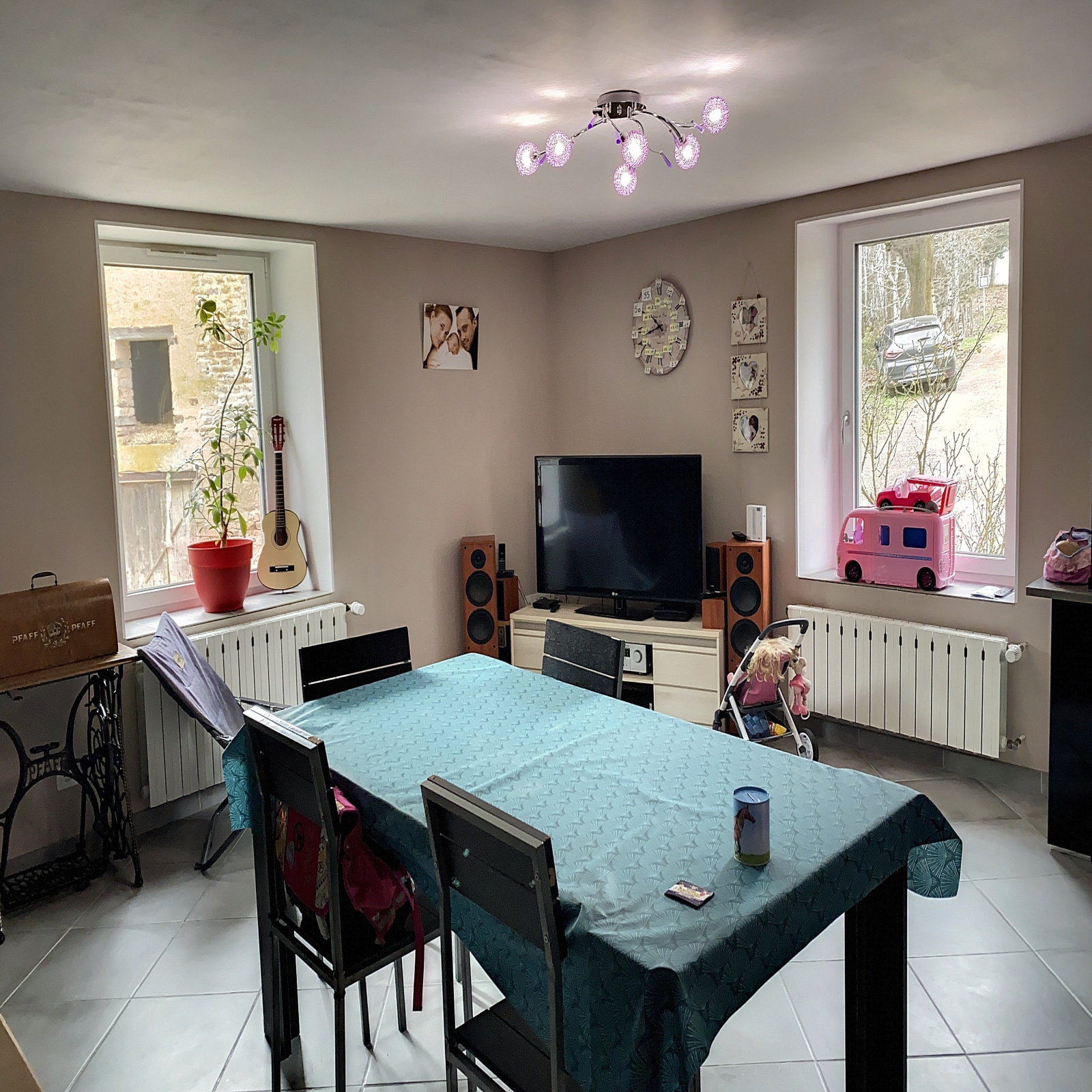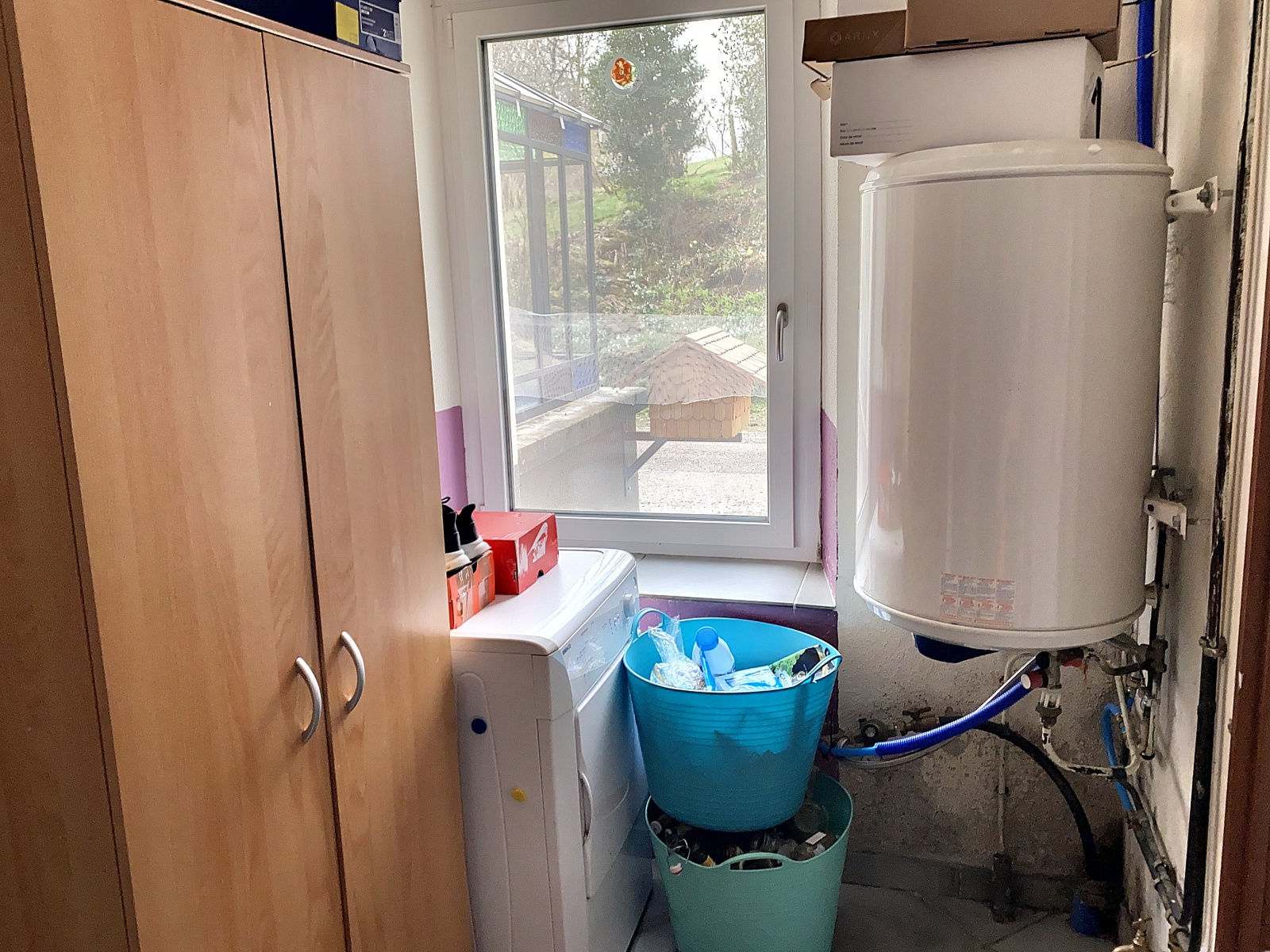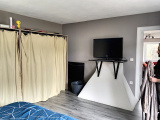 Un local de 32 m² environ avce poêle à bois (salle de sport).