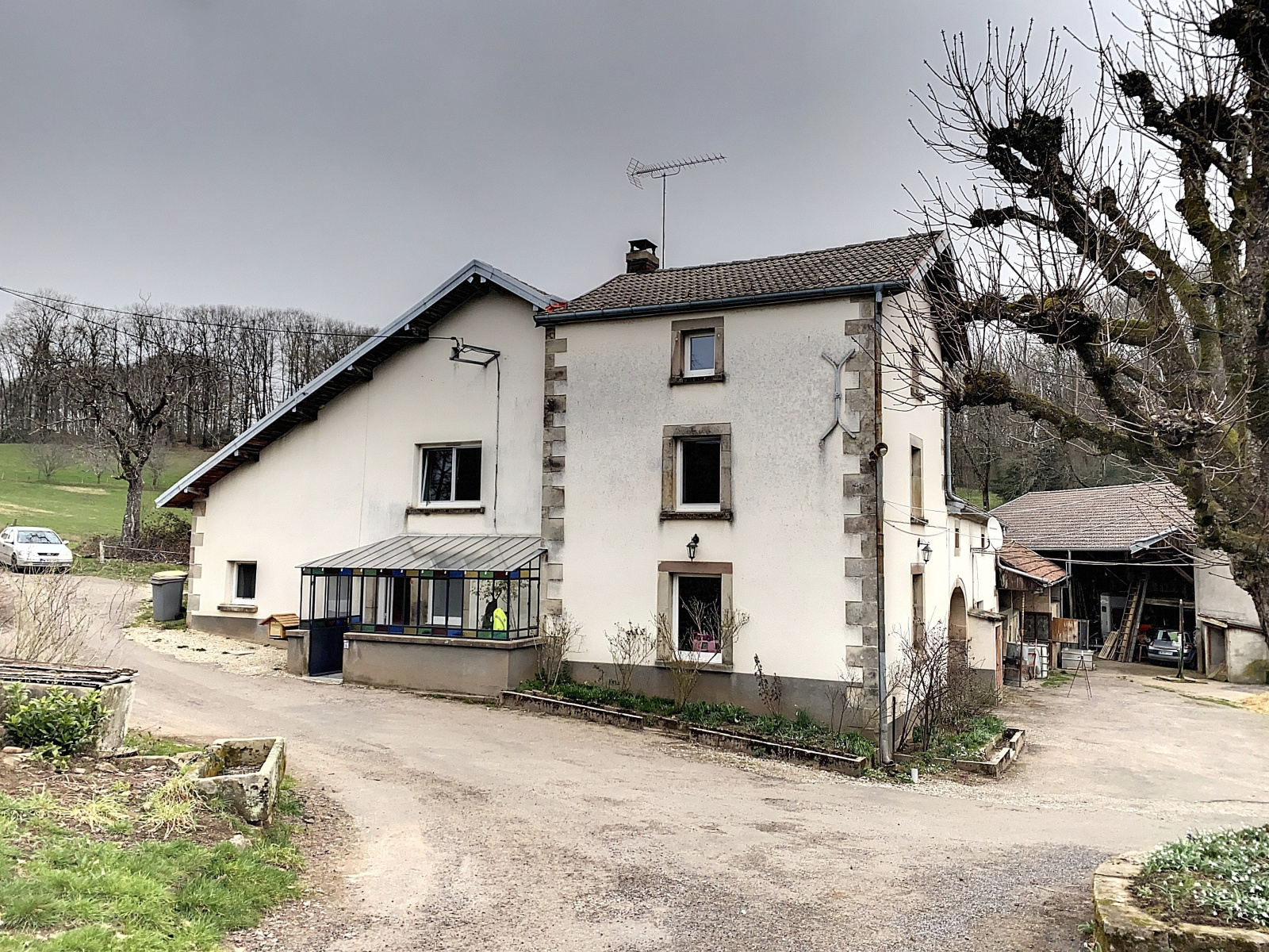 Appentis (105 m² env), un autre appentis (40 m² env), atelier (45 m² env), plusieurs soues à cochon et écurie.