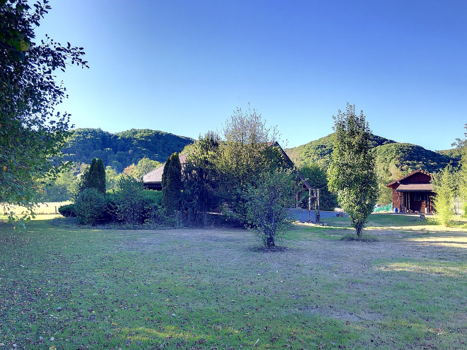 Côté extérieur, le calme et le terrain clos et arboré de 2200m2 environ vous séduira.