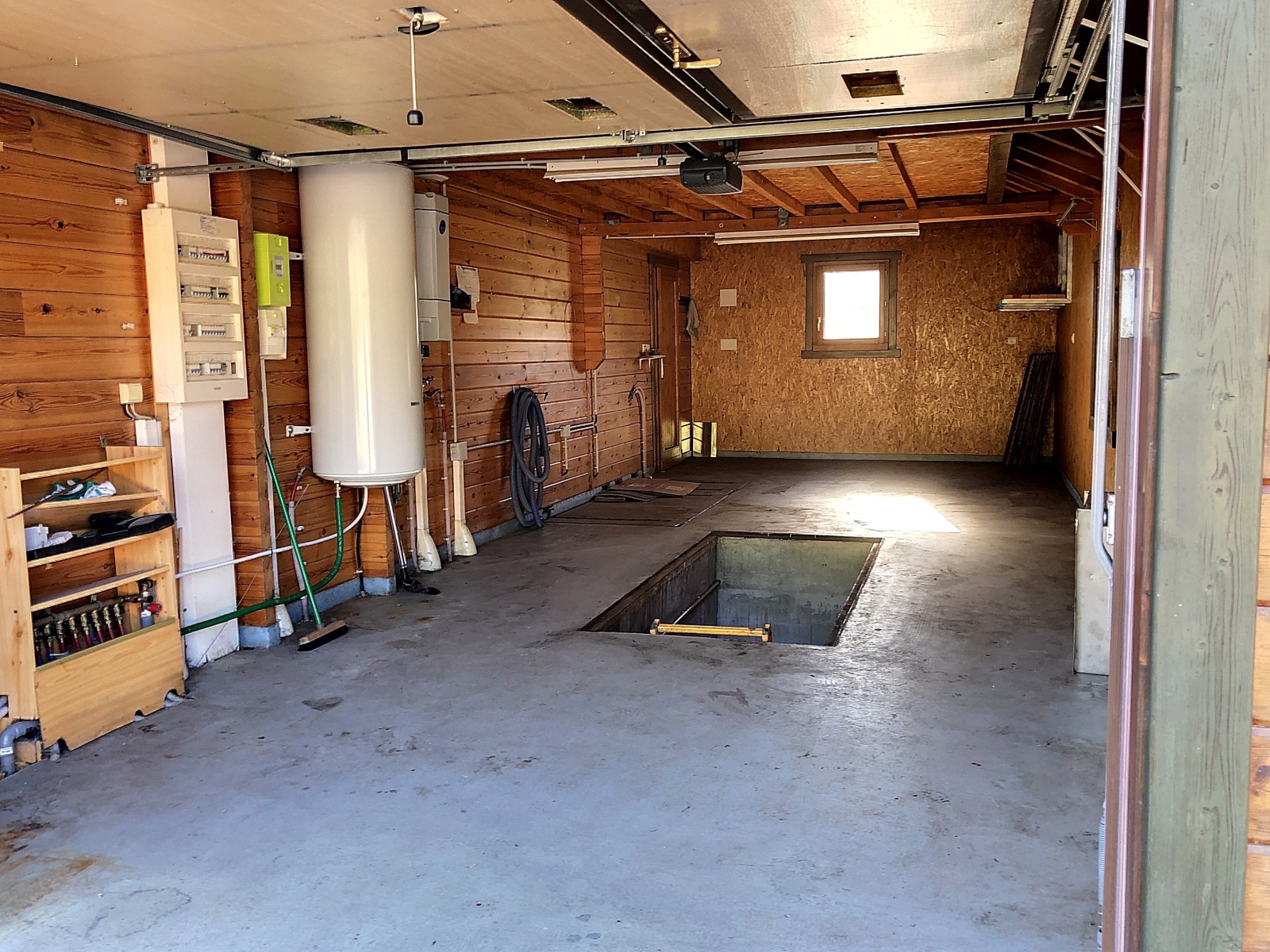 Garage pouvant accueillir 2 véhicules. Cave en dessous du garage. Appenti bois.