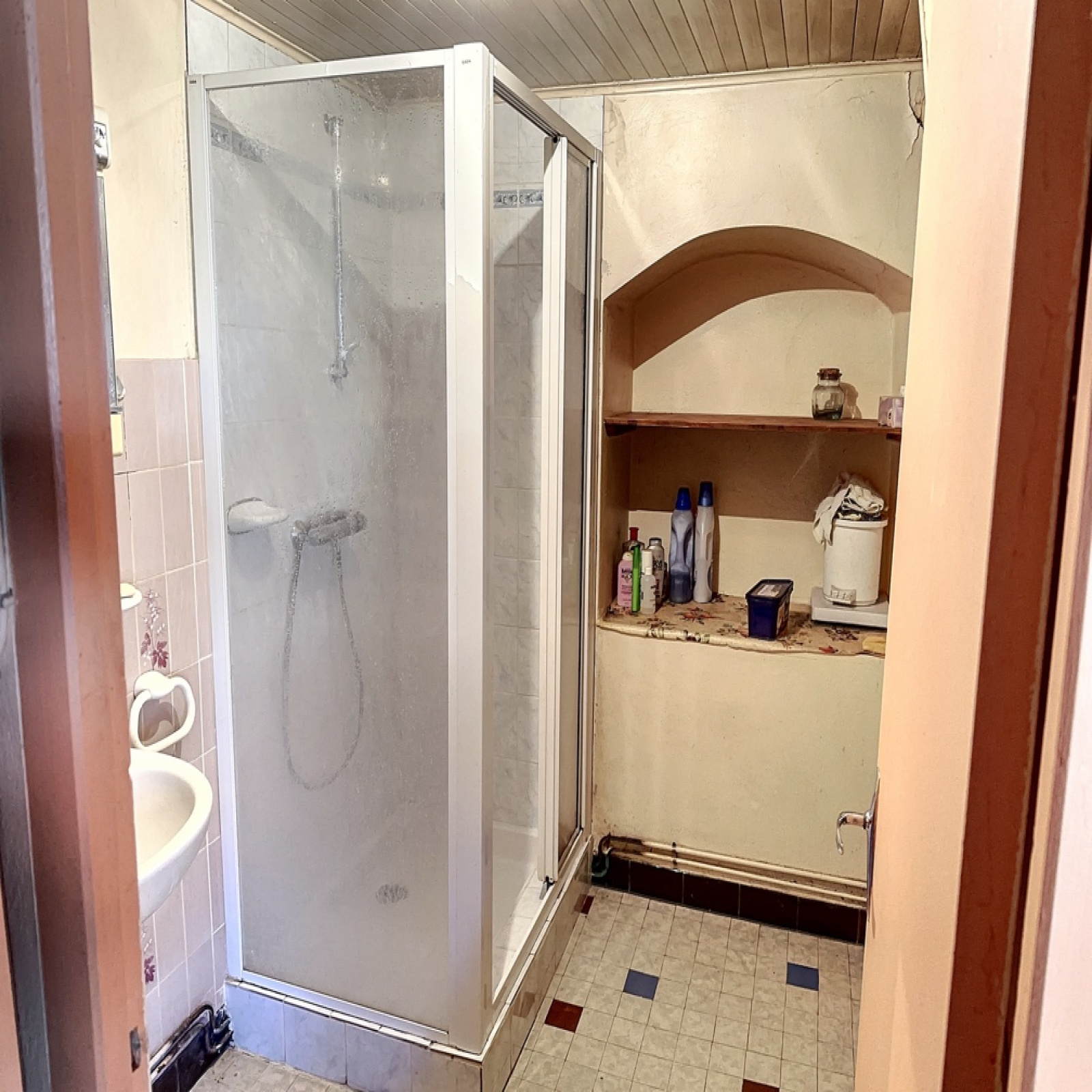 Au rez-de-chaussée : entrée, wc, cuisine, arrière cuisine, salle à manger / salon, une chambre, salle d'eau, atelier / chaufferie.