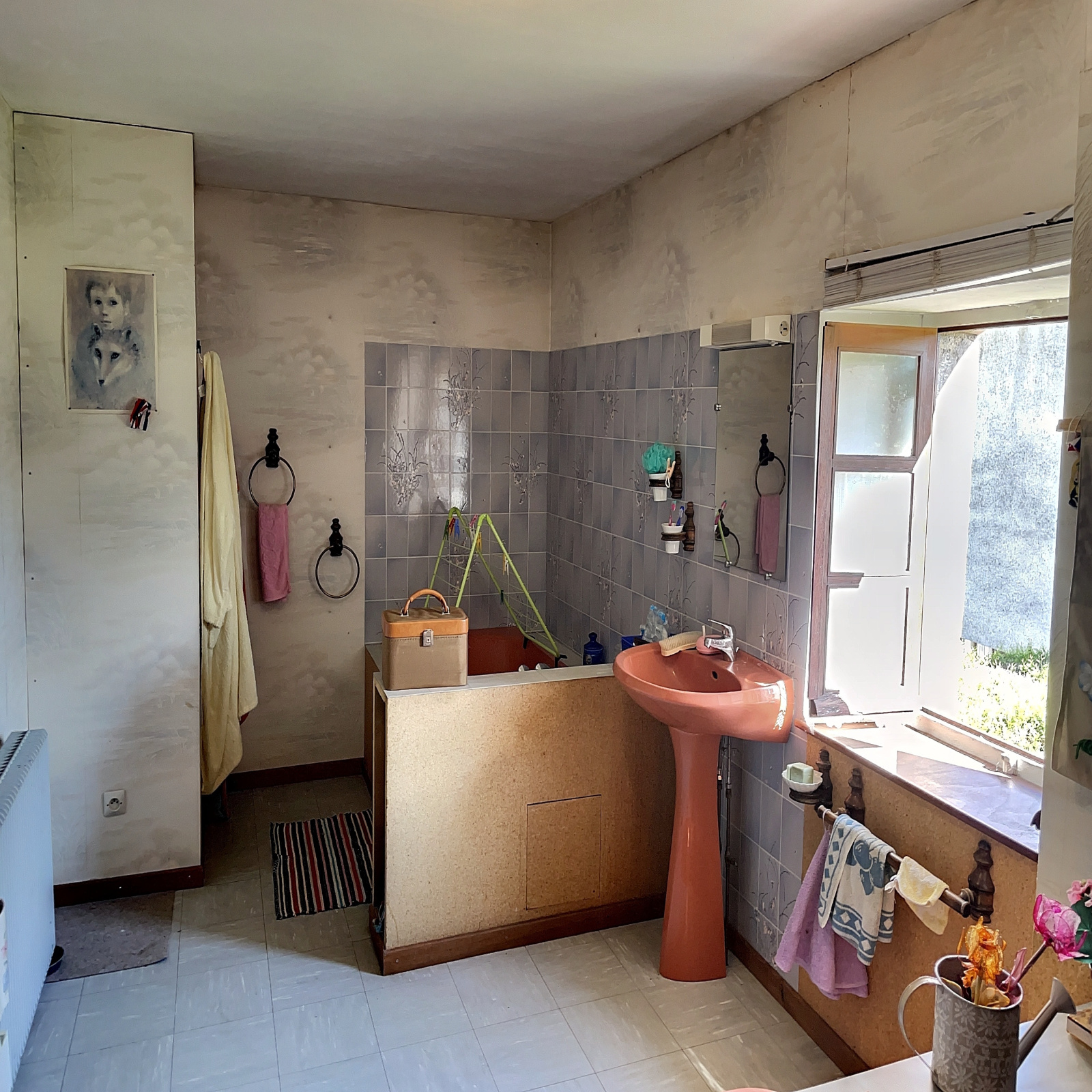 Au rez-de-chaussée : entrée (13 m² env), cuisine (18 m² env), séjour avec insert (32 m² env), une 1ère chambre (28 m² env) avec placard mural, salle d'eau (8.5 m² env).