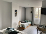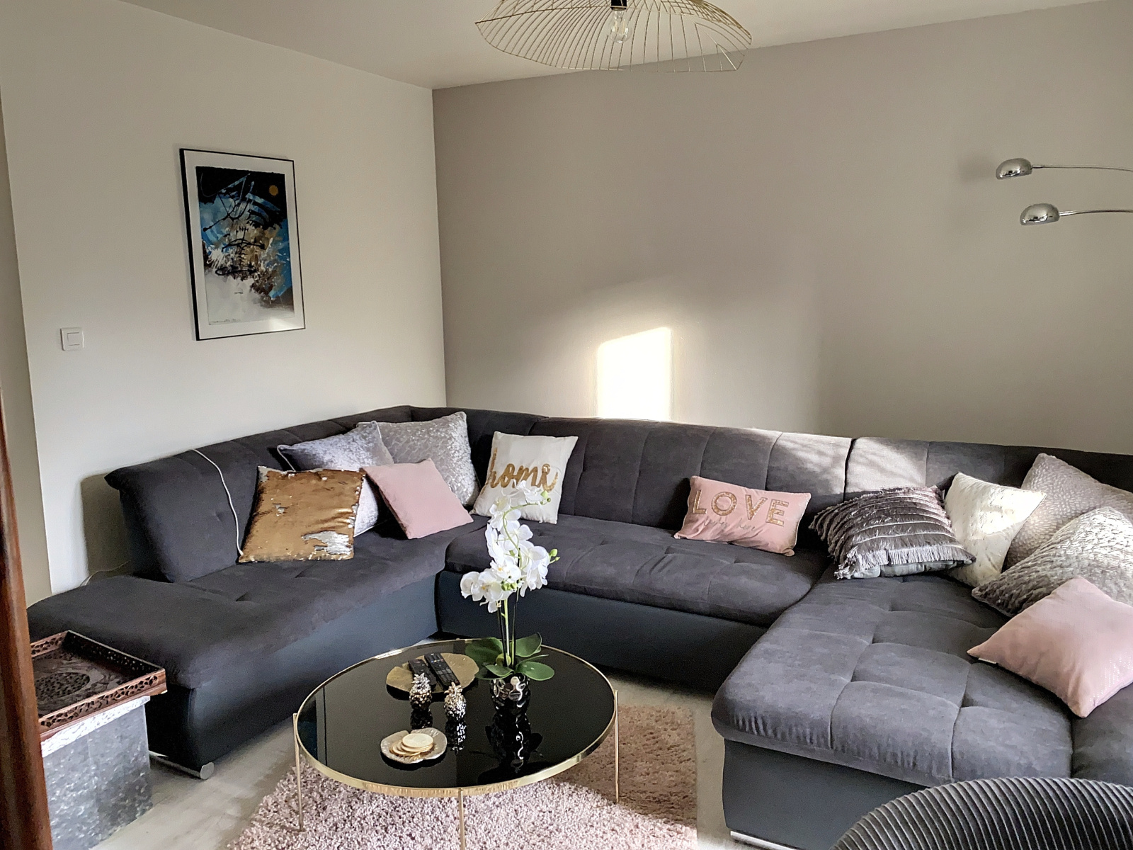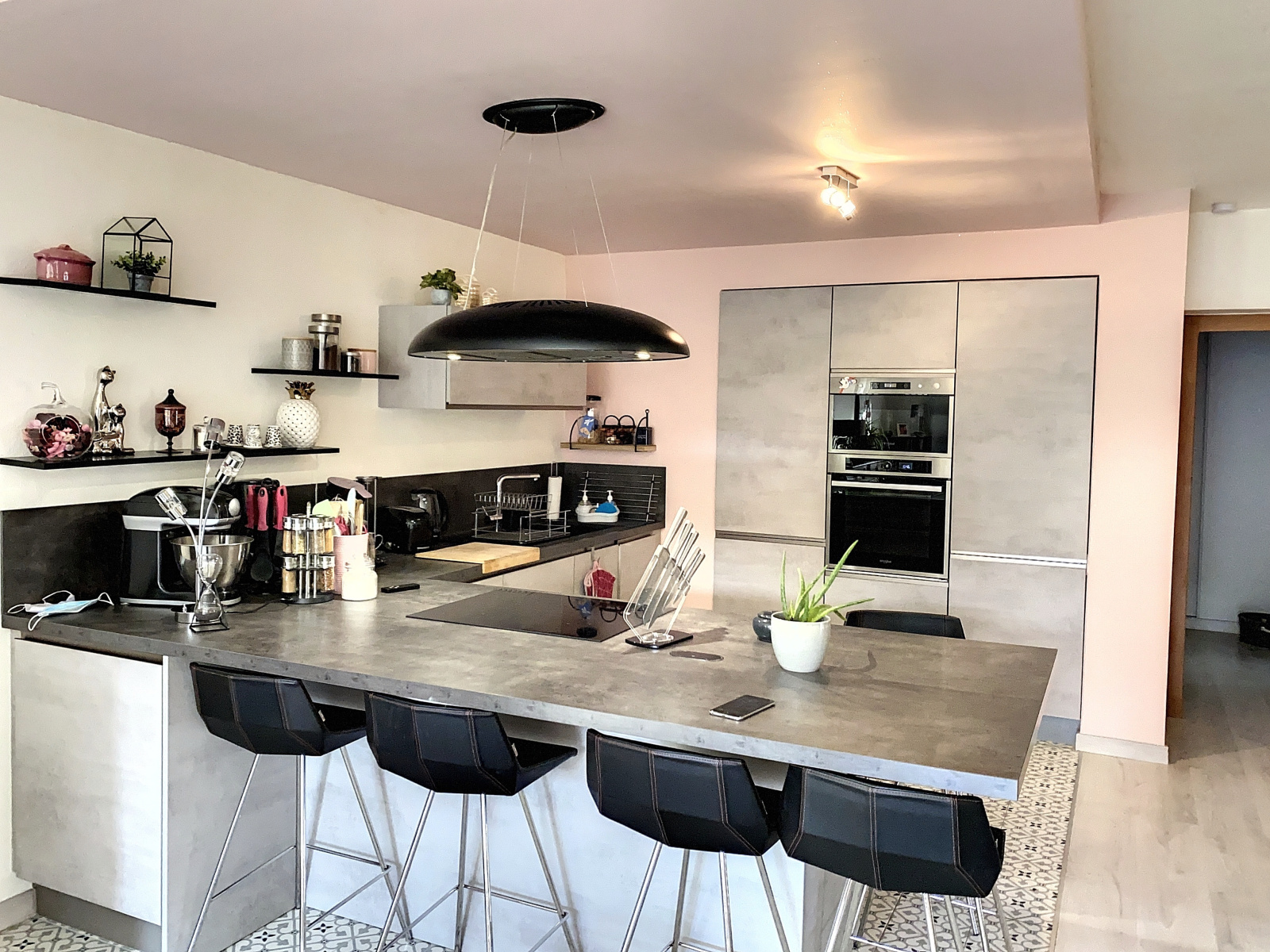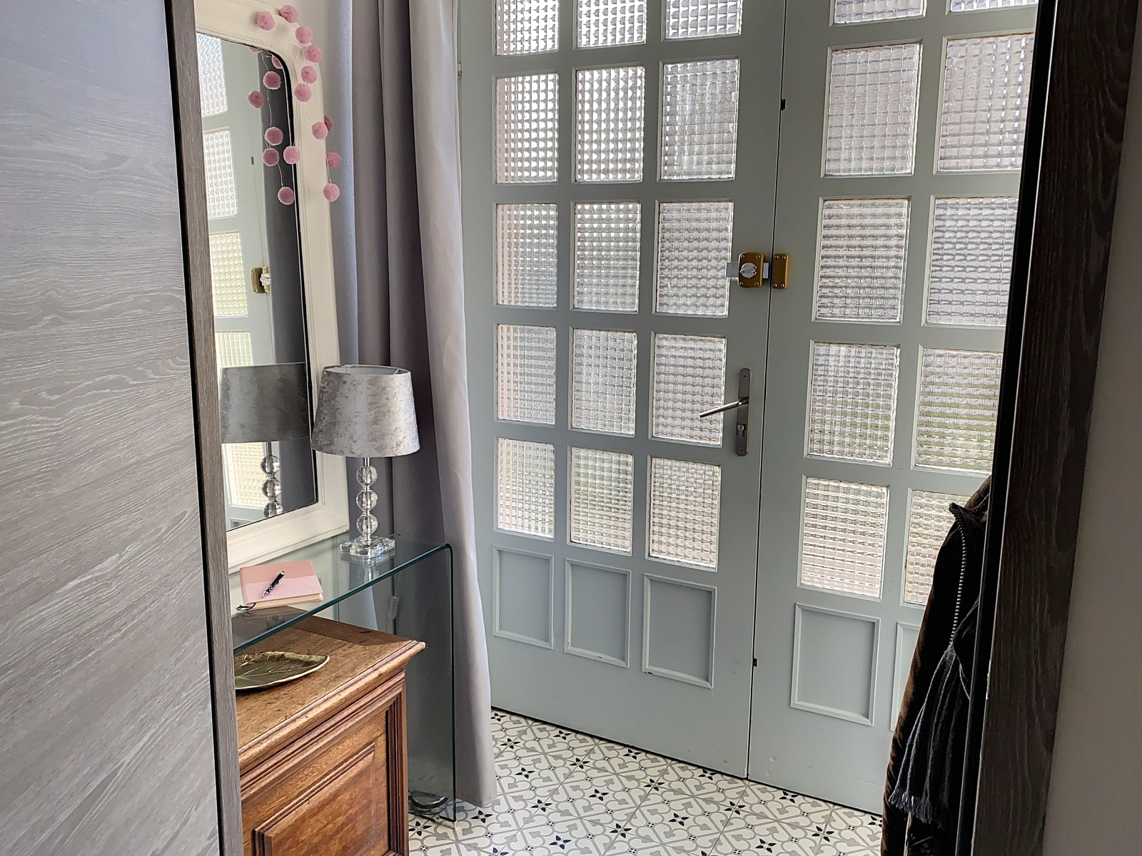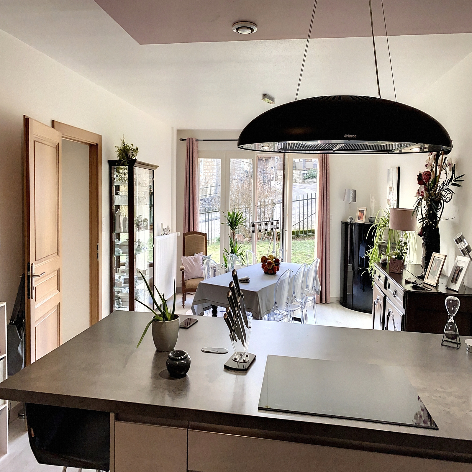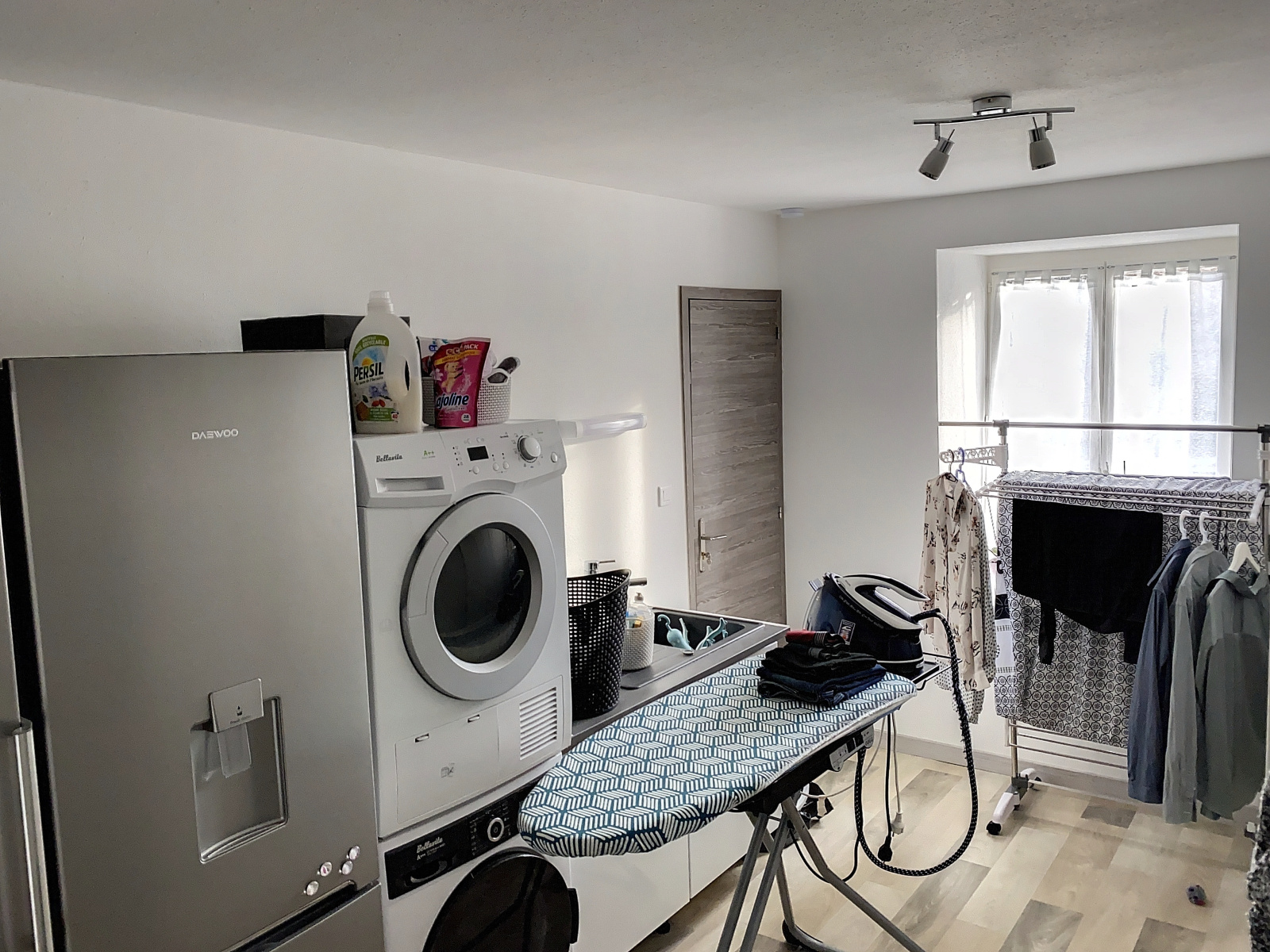Au rez-de-chaussée : petite entrée donnant sur une pièce accueillante servant de bureau, cuisine équipée ouverte sur grande pièce à vivre avec accès terrasse, superbe salon (possibilité de poêle avec conduit tubé) donnant accès sur jardin, salle de bains, wc, grande buanderie avec accès à la cave voûtée (par l'intérieur et l'extérieur).