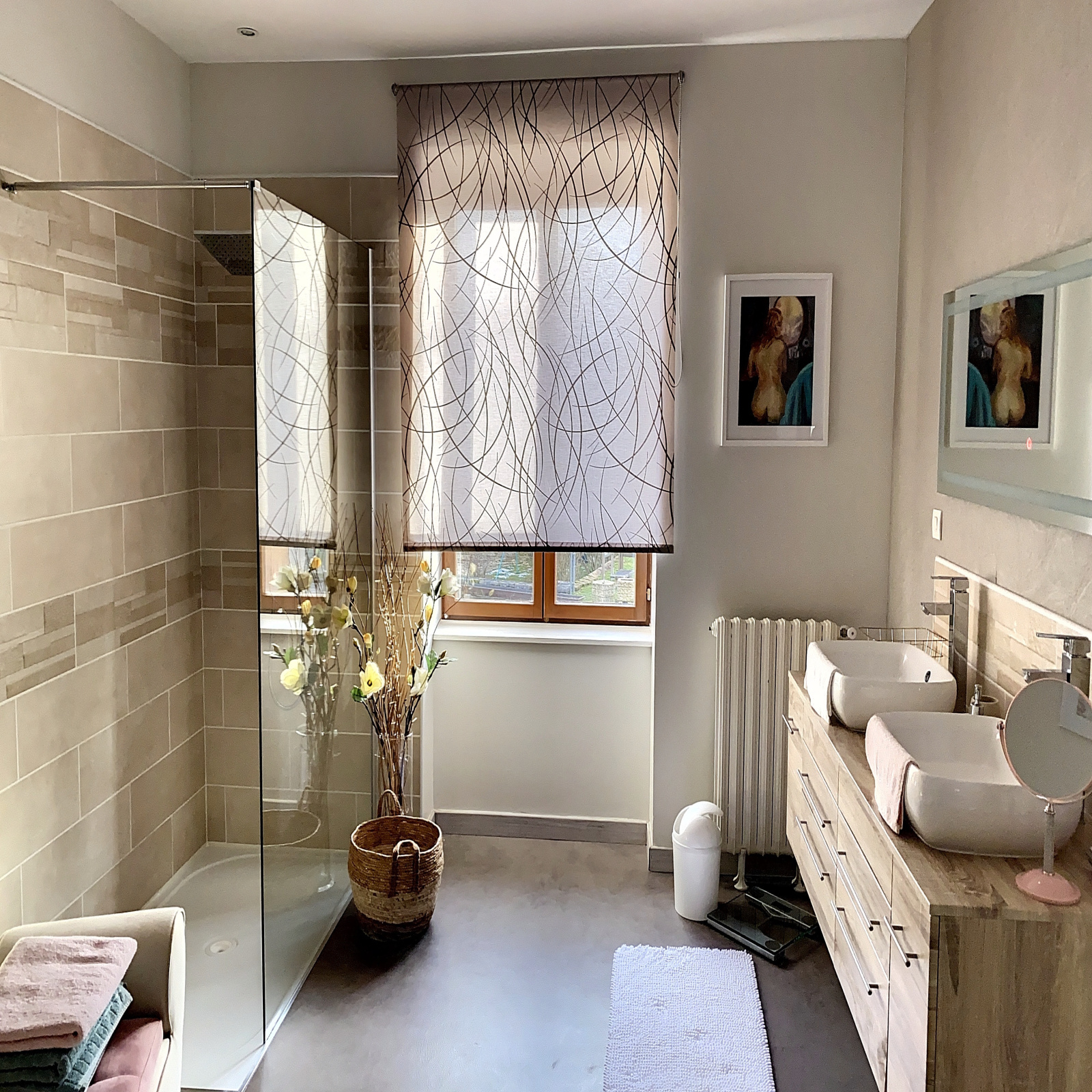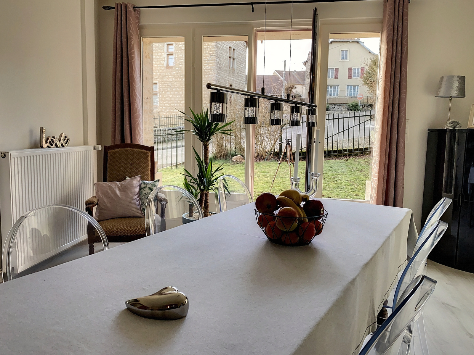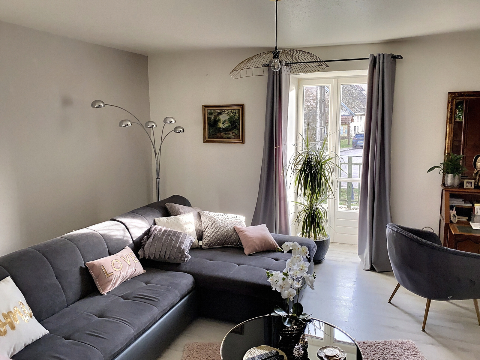Entre pierres, terre et rivière, jolie demeure de 1880, rénovée, dans village historique, sur l'AXE VESOUL / BESANCON,de 188 m² habitables environ, avec coquet agencement intérieur, assise sur 579 m² de terrain entre terrasse et jardin. Elle comprend :