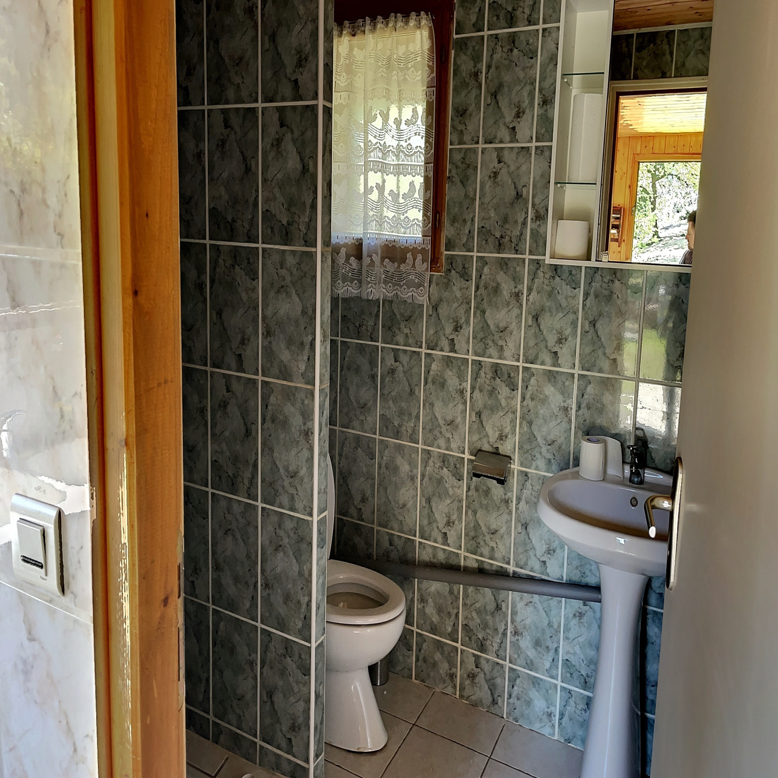 Elle comprend une pièce avec kitchenette, douche et wc. Chauffage électrique