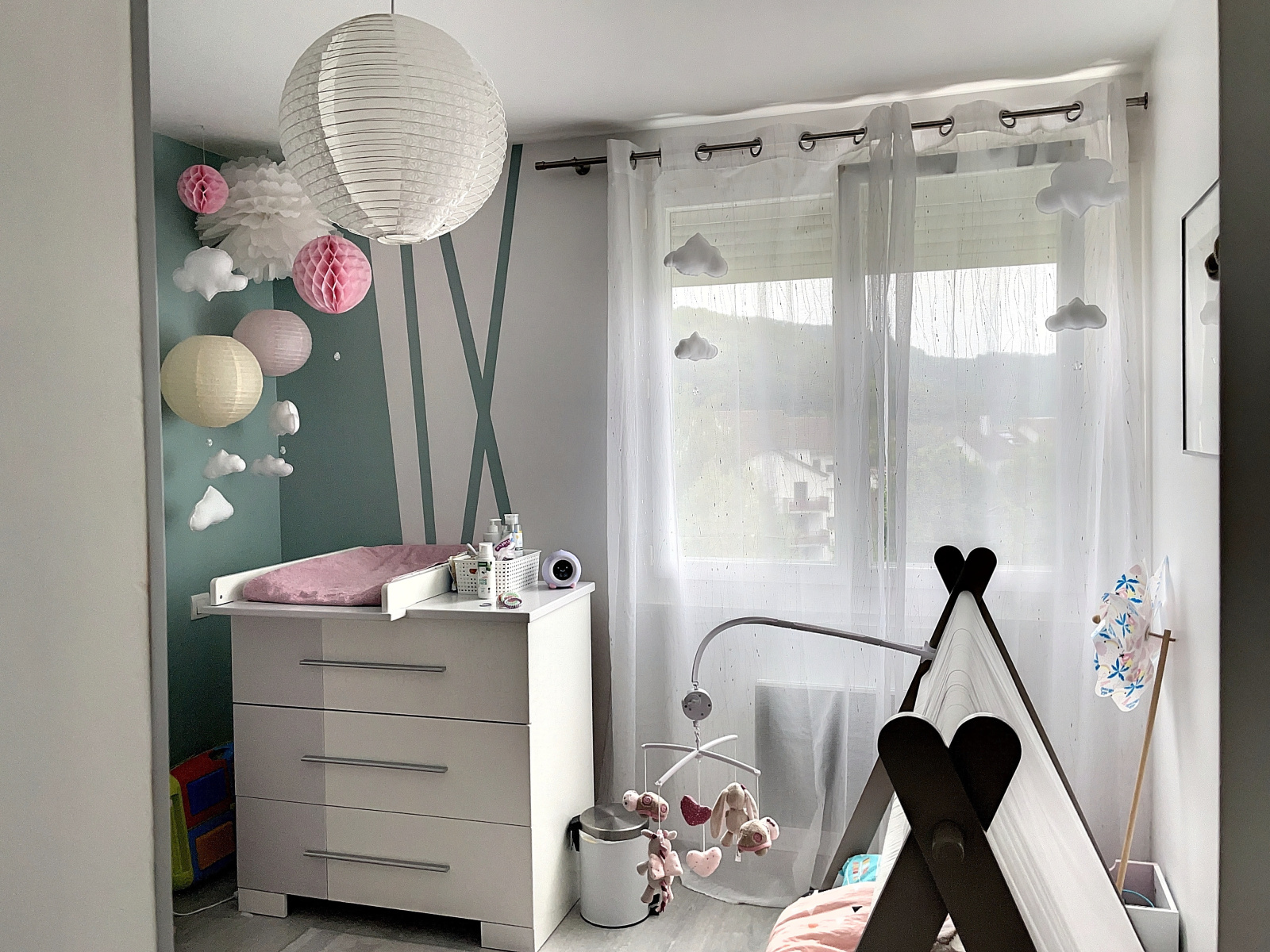 Une entrée avec placard, cellier (2.4 m² env avec arrivée et évacuation d'eau), cuisine équipée (11 m² env) avec accès loggia (4 m² env), ouverte sur salle à manger / salon (17 m² env) avec accès loggia (6 m² env), 3 chambres dont 2 avec espace de rangement (les 3 de 9 m² env), salle d'eau (4.7 m² env), wc.