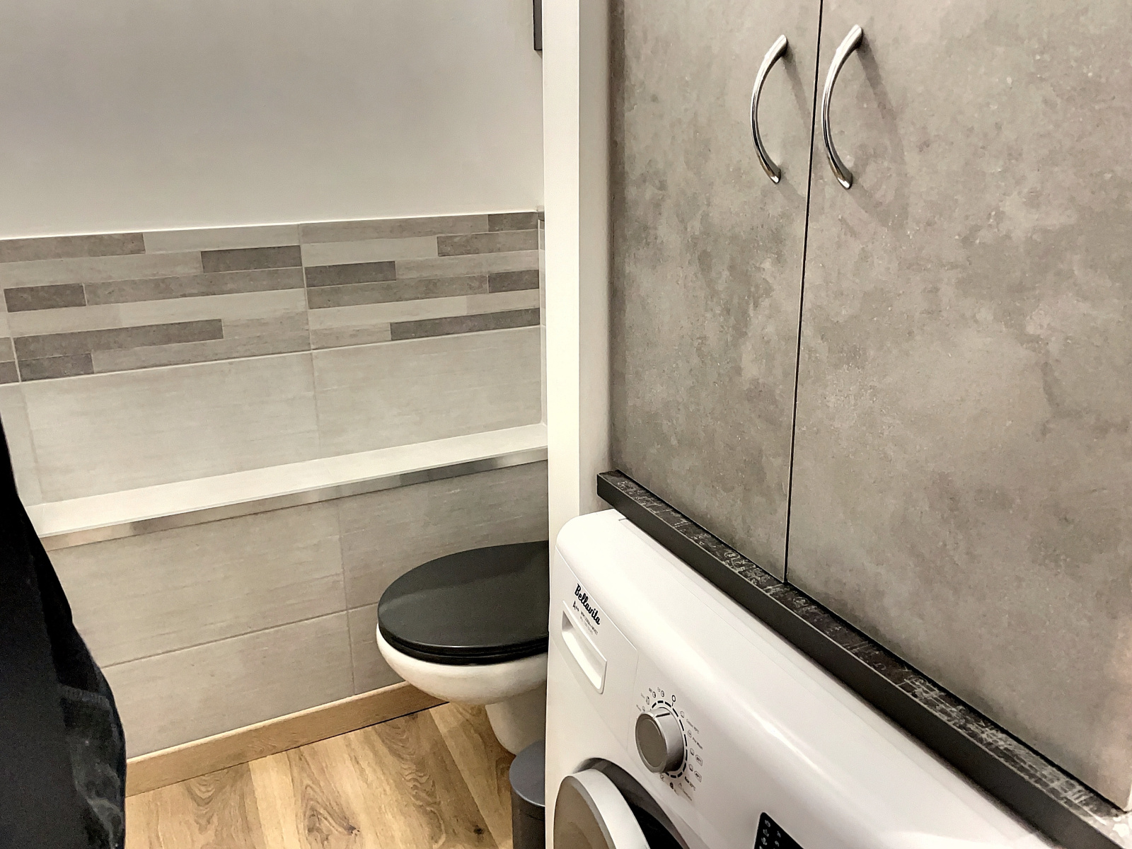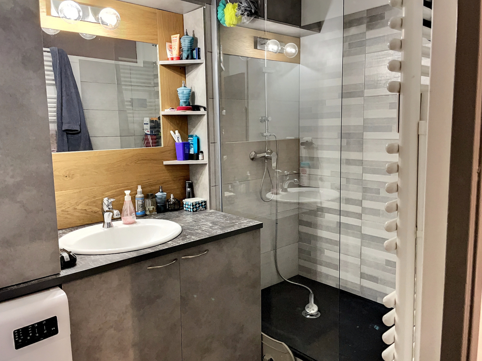 Entrée (2m2 env), cuisine équipée (14 m2 env), salle à manger / salon (27 m2 env) avec accès balcon (6 m2 env), 3 chambres avec rangements et une avec baignoire (10, 10, 12 m2 env), salle d'eau (6 m2 env), wc.