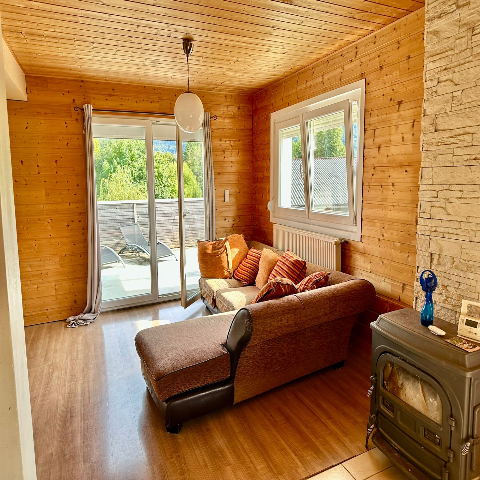 - Un pavillon indépendant de plain-pied (env 49 m2) composé d'une entrée ouverte sur dégagement, cuisine équipée ouverte sur séjour (26 m2 env) avec poêle à bois, une chambre avec douche privative (13 m2 env), wc. Chauffage : poêle à bois. DPE : E GES : B