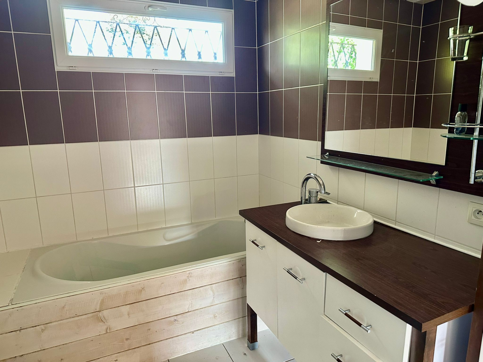 - Une maison principale de 130 m2 environ composée d'une entrée sur dégagement, buanderie, dressing (4 m2 env), salle d'eau/wc (3 m2 env), une chambre (12 m2 env), garage en 3 parties (35, 36 et 42 m2 env) au rez-de-chaussée ; cuisine équipée (12 m2 env), séjour (37 m2 env) avec poêle à bois, dégagement, une chambre (12 m2 env) avec douche privative, 2 autres chambres (11 m2 env), salle de bains/wc (6 m2 env), cellier (2 m2 env), terrasse (41 m2 env) à l'étage. Chauffage : pompe à chaleur et poêle à bois. DPE : D GES : B