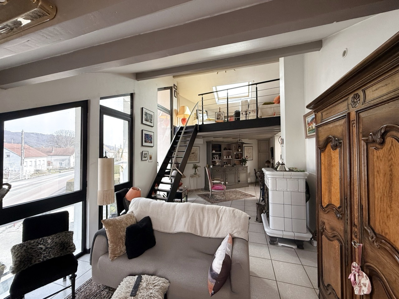 Mezzanine avec accès aux combles (rangement).