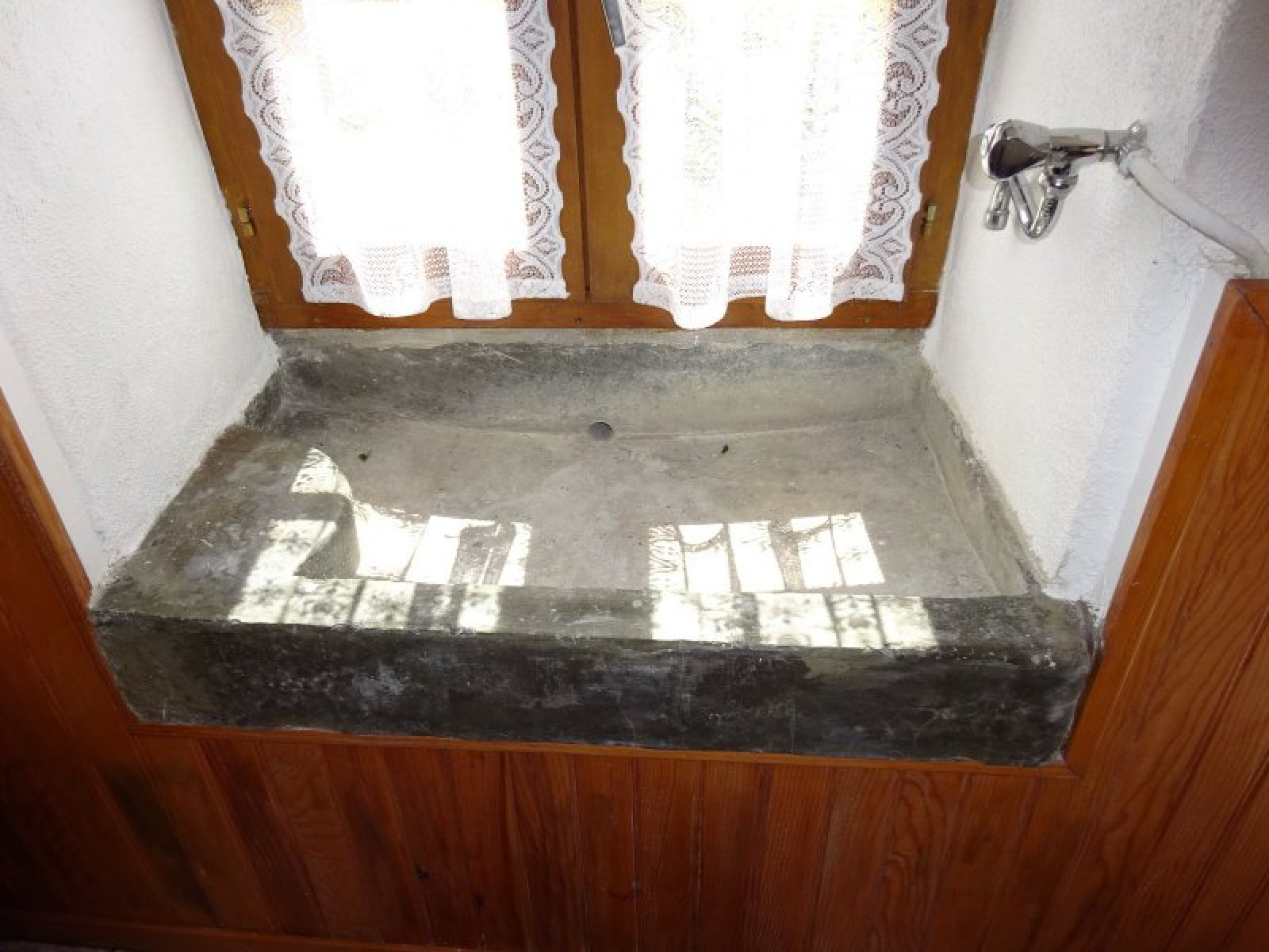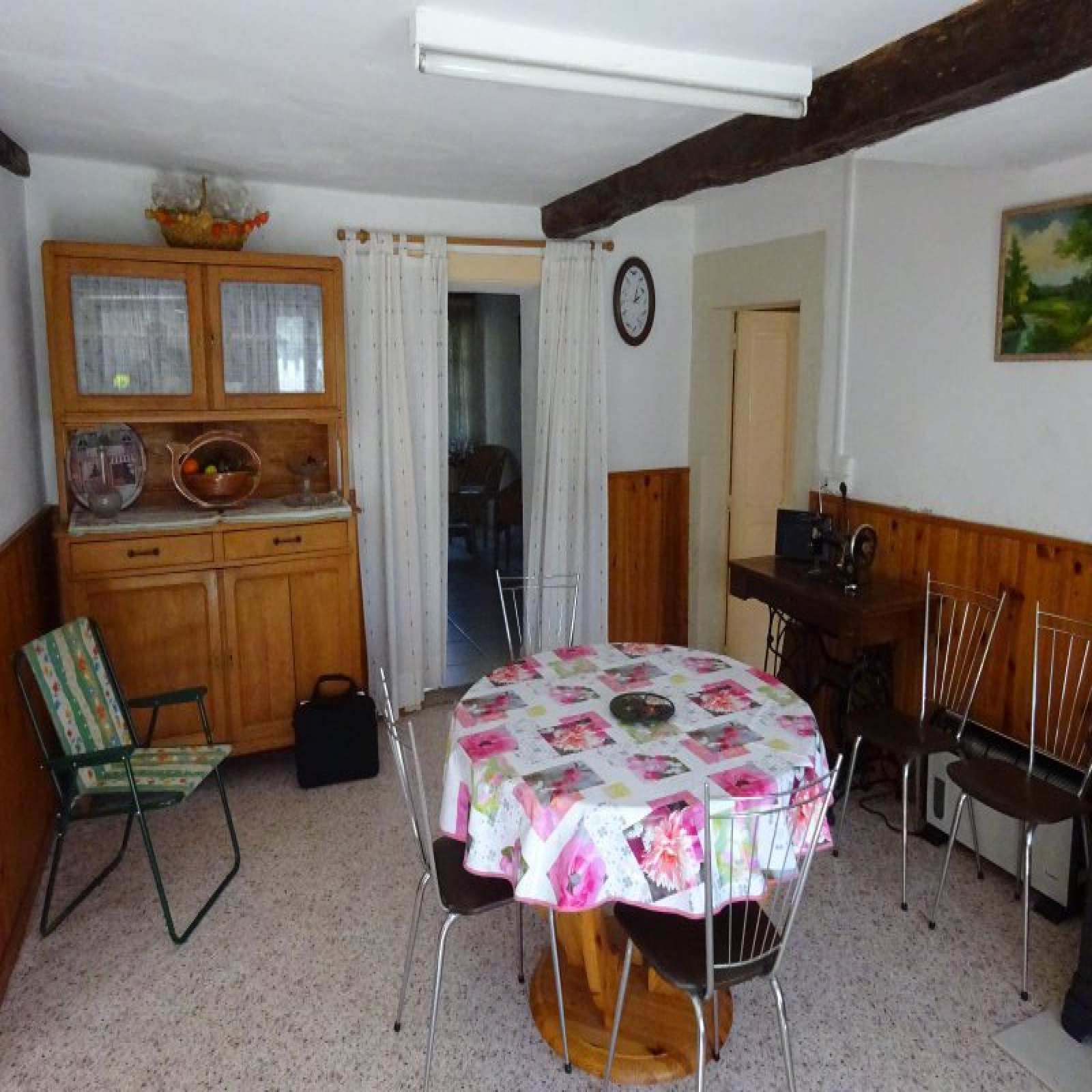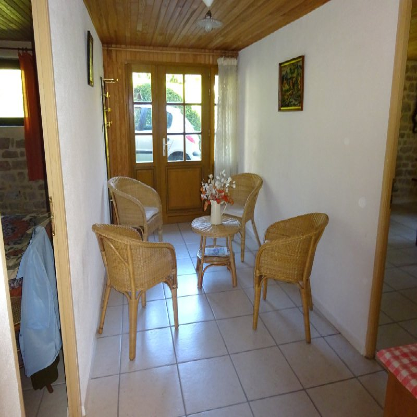 Au rez-de-chaussée : entrée avec grande baie / petit salon, petite cuisine, salle à manger avec ancien évier en pierre, salon, 2 chambres, salle d'eau / wc.