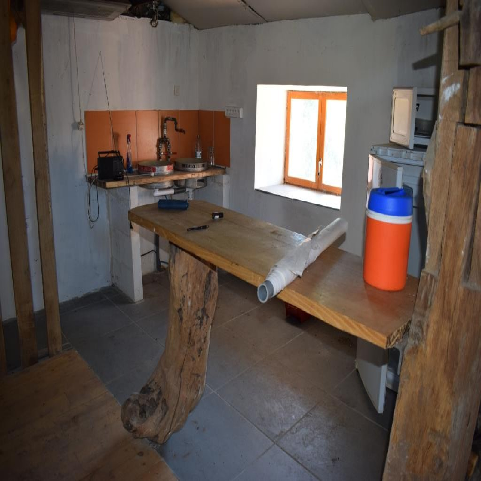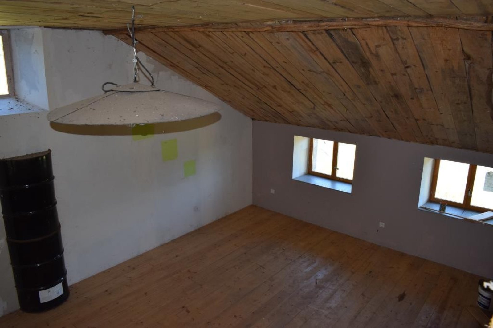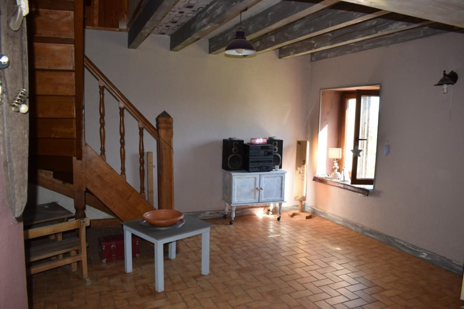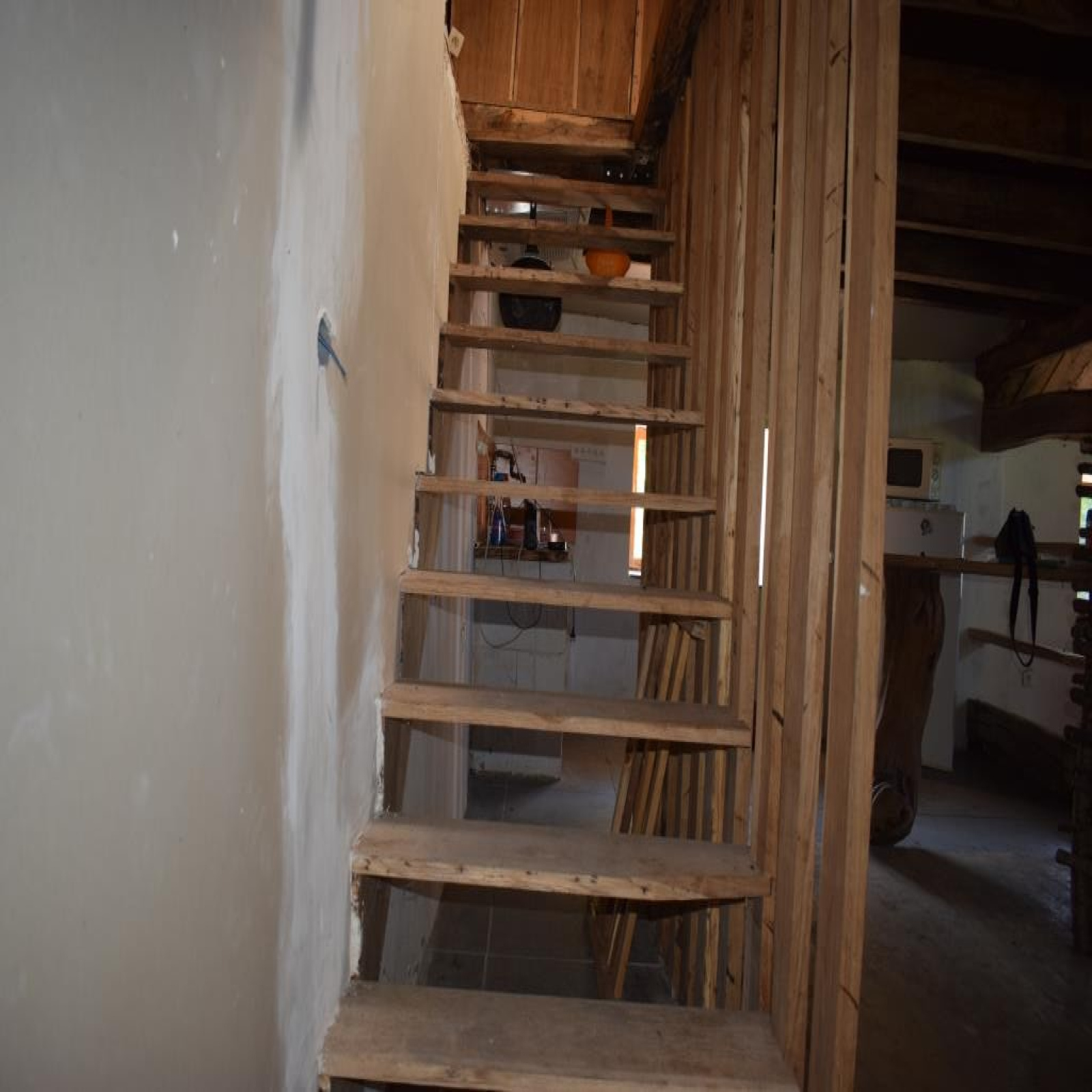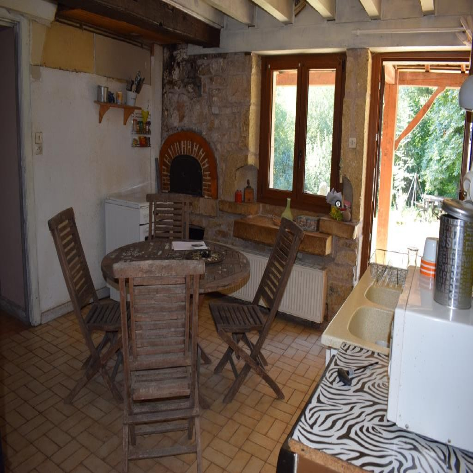 Au rez-de-chaussée : entrée dans cuisine avec ancien évier en pierre et four à pain, salle à manger / salon, salle de bains, wc.