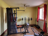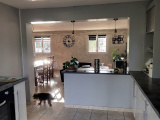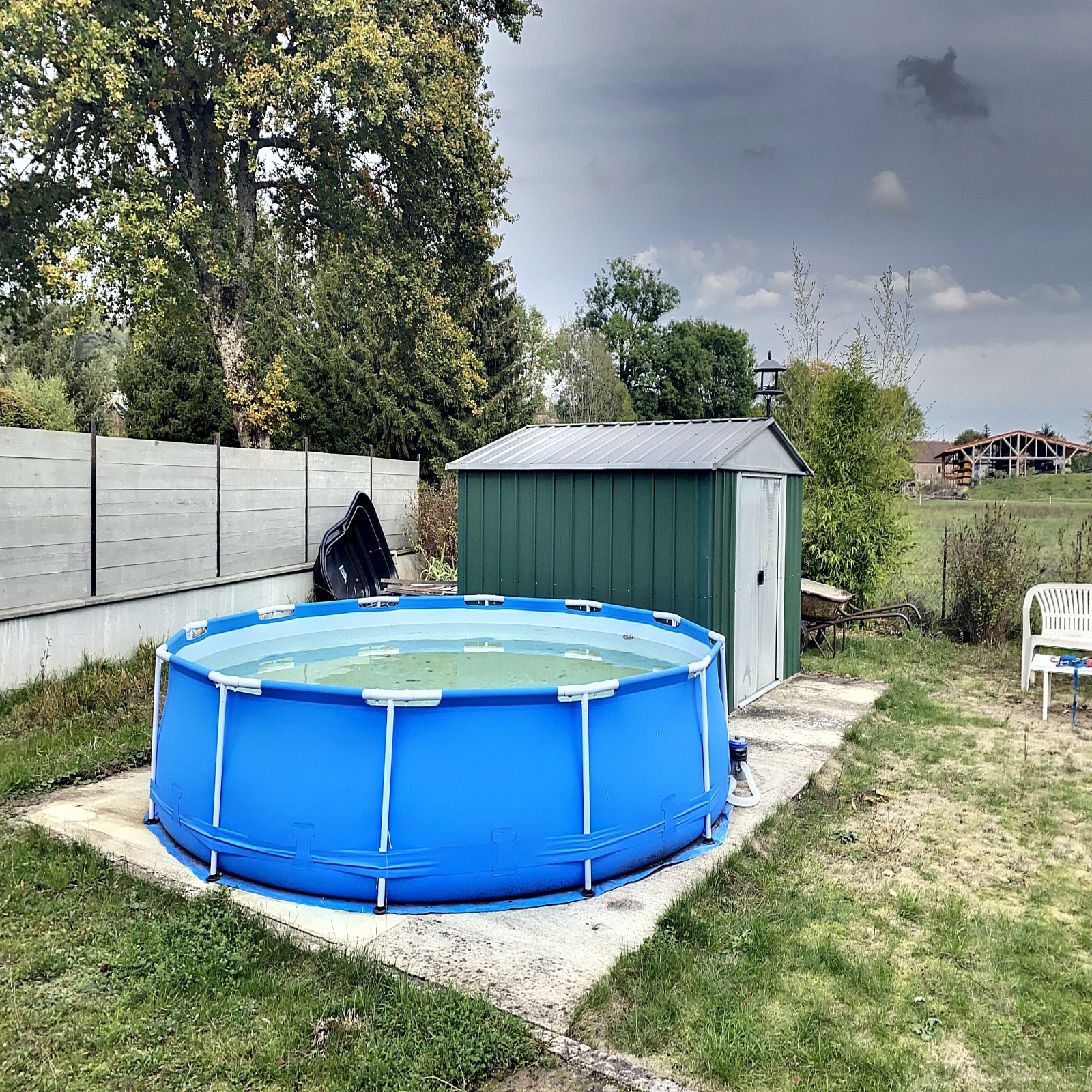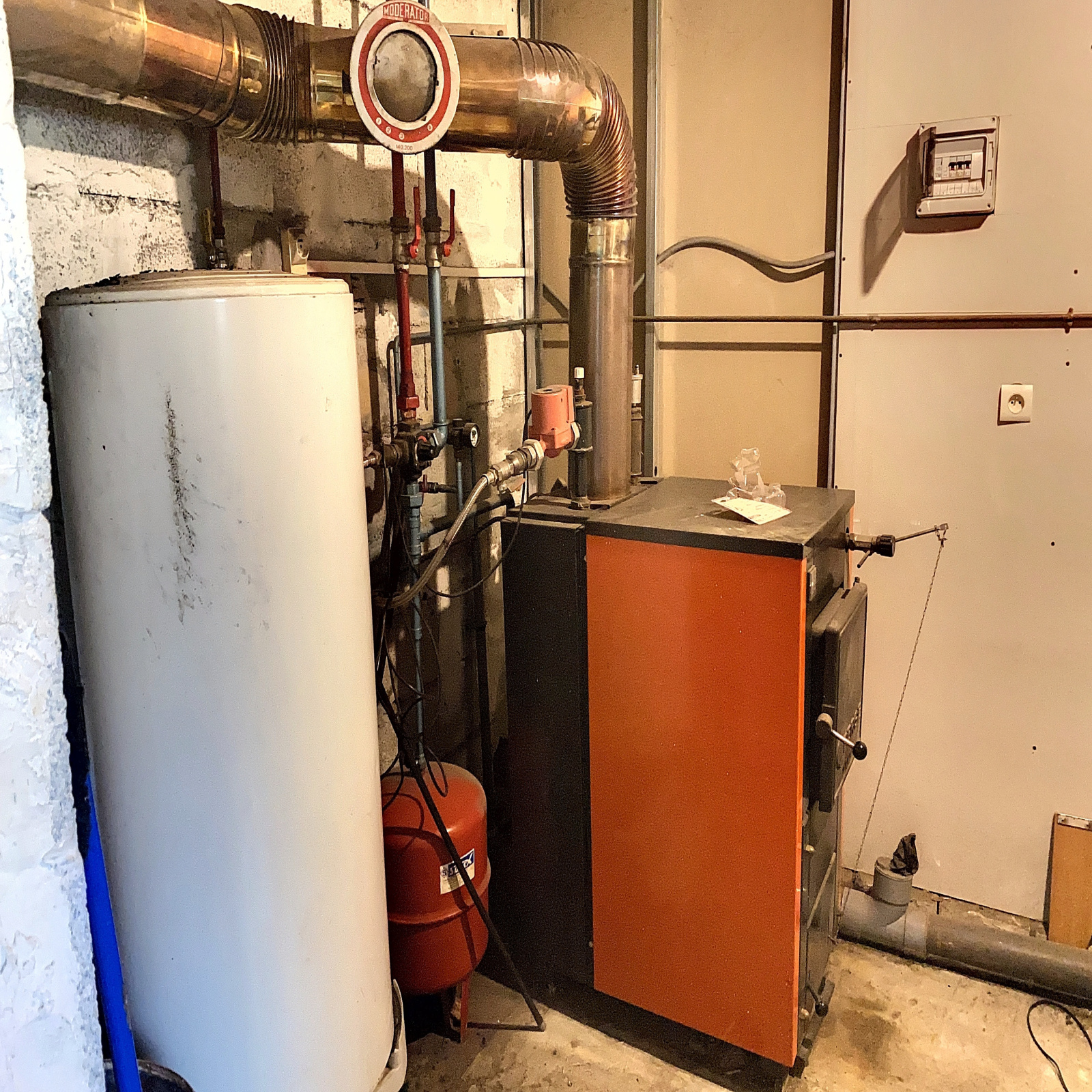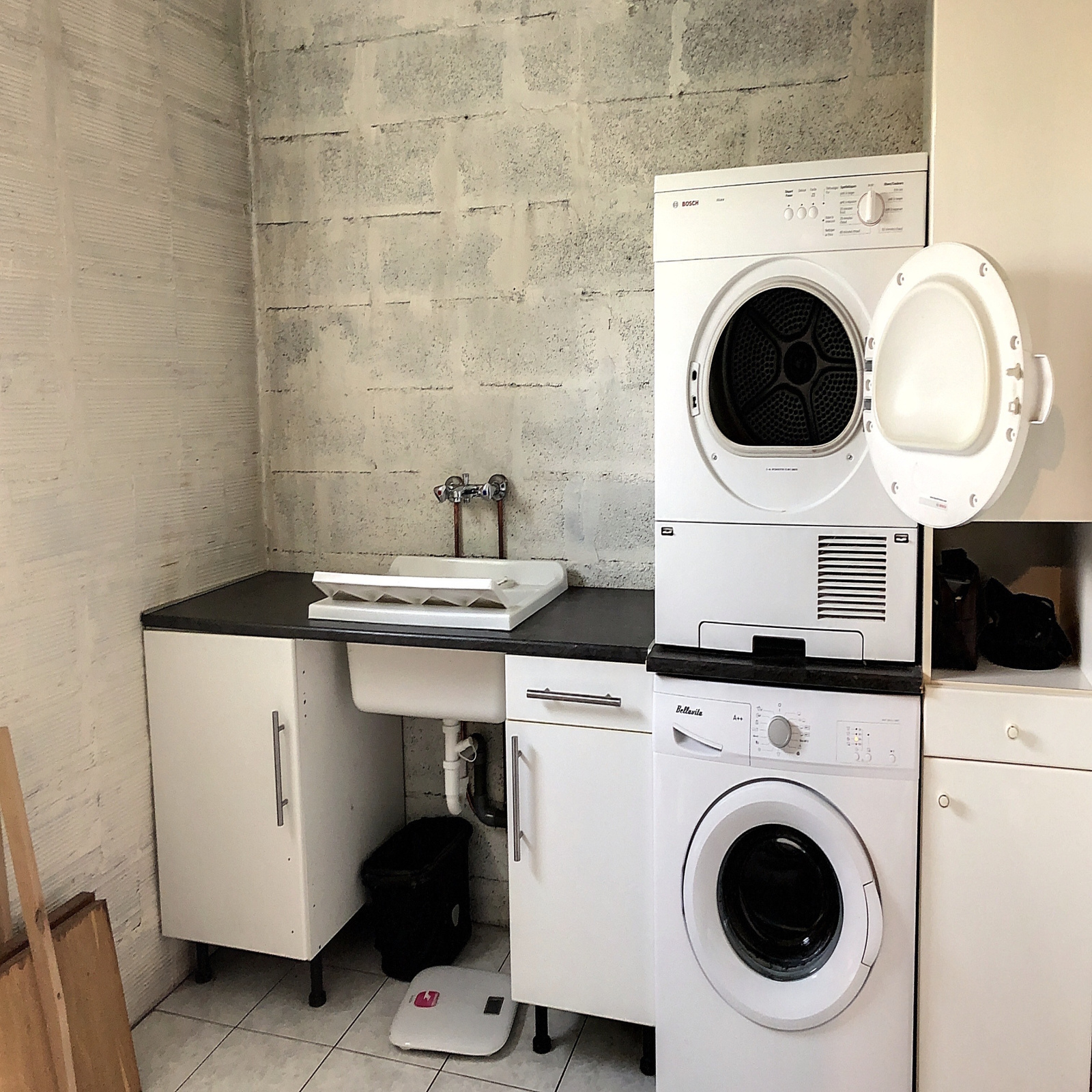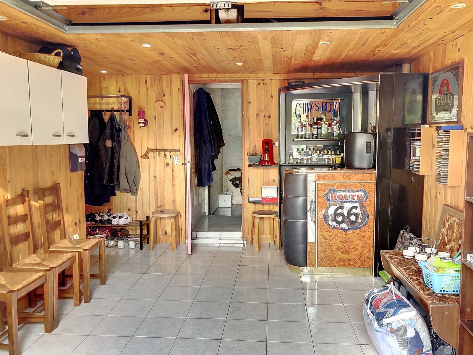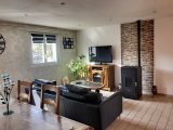 Au rez-de-chaussée : cuisine équipée ouverte sur salon salle à manger avec poêle à granulés, salle de bains avec wc, une pièce, douche, buanderie, chaufferie.