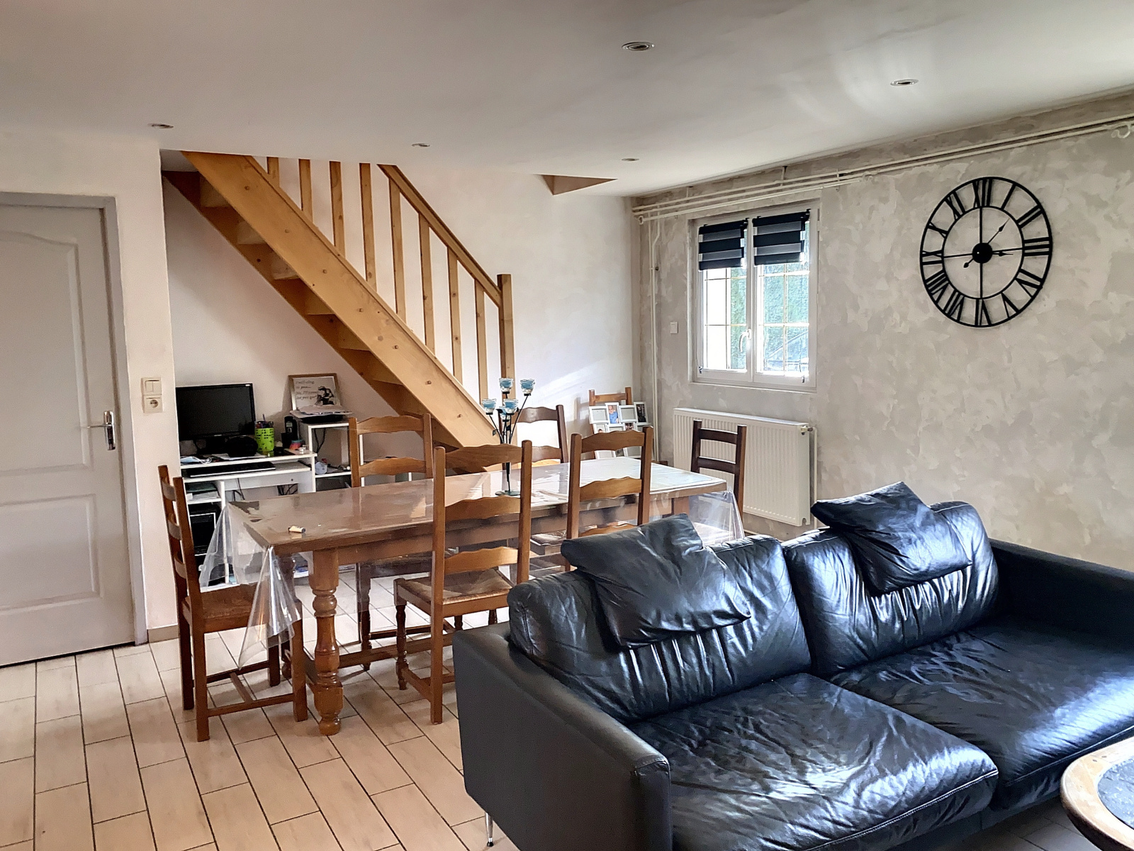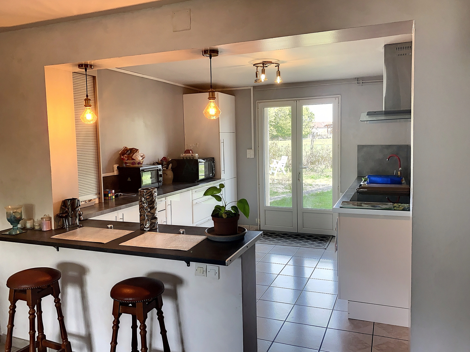 Nos agents Solène Boucard et Hélène Valette vous proposent à la vente cette maison mitoyenne d'un côté, entièrement rénovée, environ 120m², sur son terrain clos et arboré de 8 a 10 ca comprenant :
