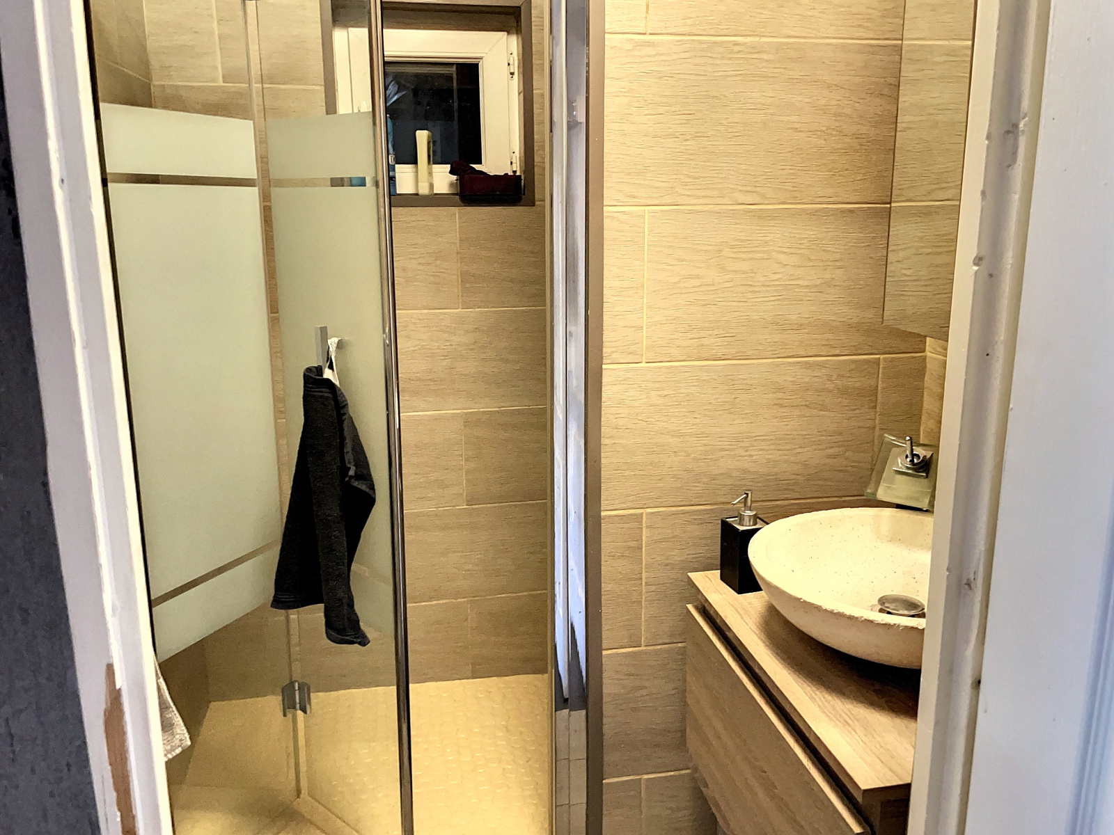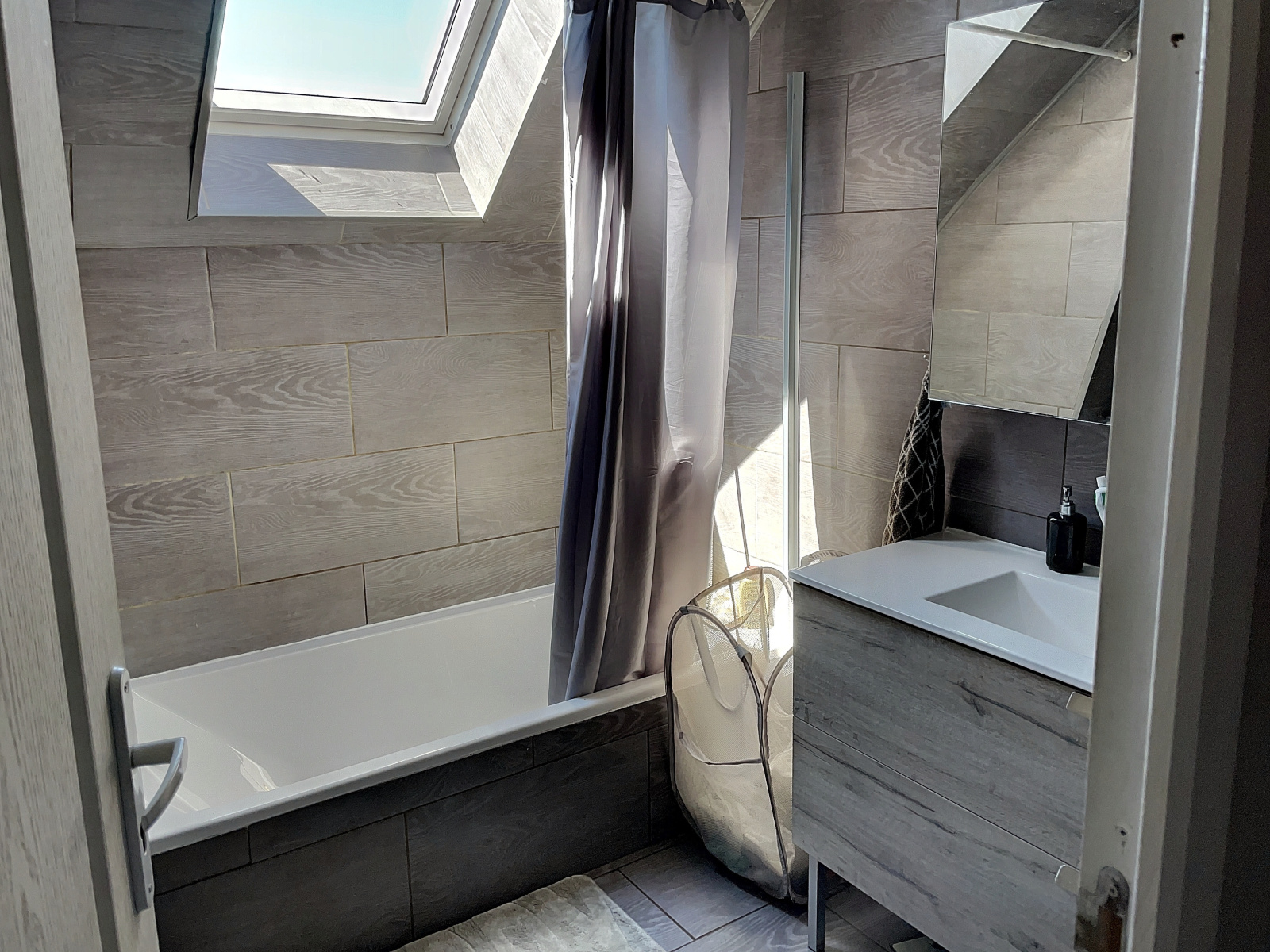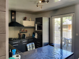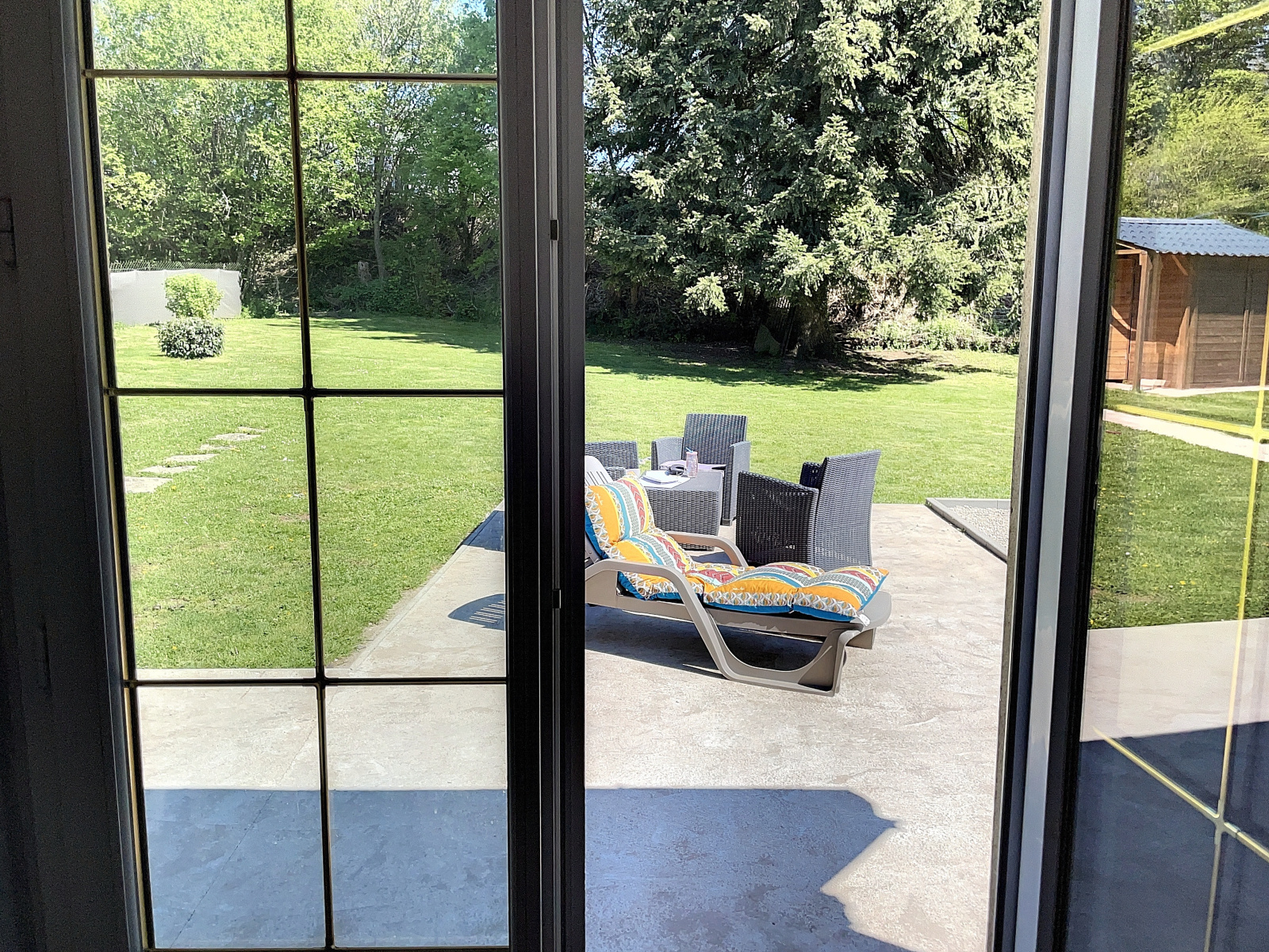 Au rez-de-chaussée : entrée, wc suspendus, cuisine équipée avec ouverture sur la terrasse, séjour ouvert avec insert bois et accès sur les terrasses avant et arrière, une chambre avec sa salle d'eau privative, cellier/buanderie, garage.