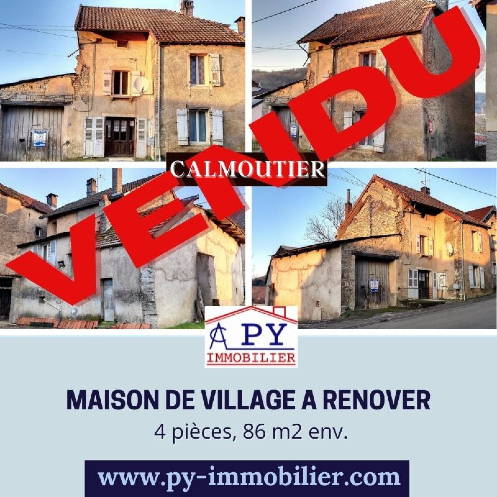 Maison de village à rénover entièrement sur terrain de 3 ares 98 centiares comprenant