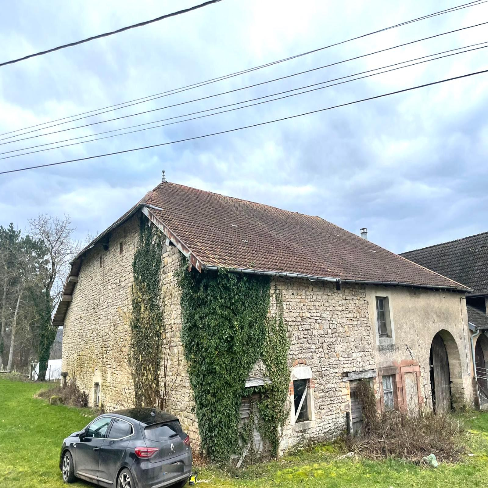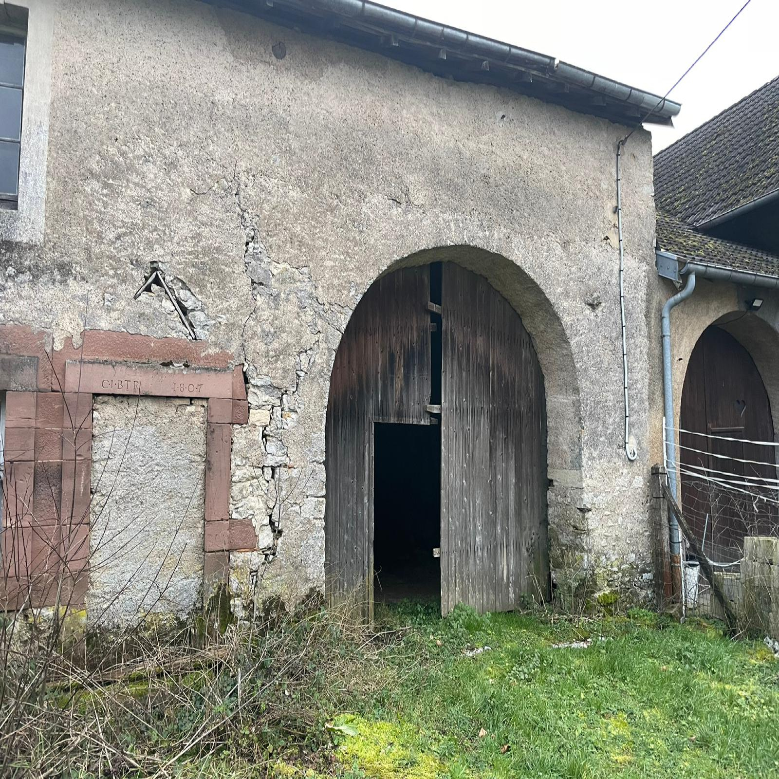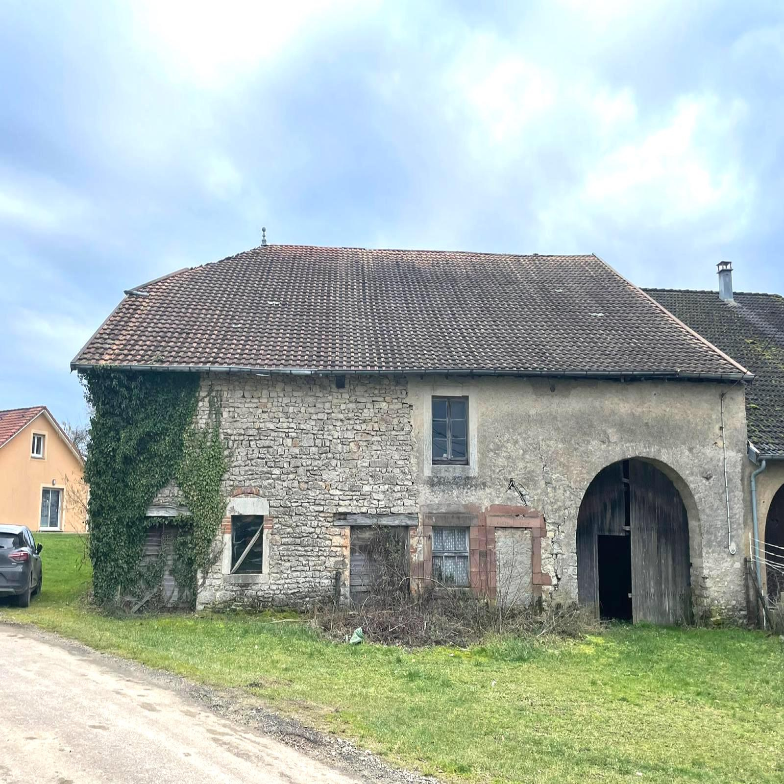 Une grange en 3 parties (400 m2 environ) avec grenier au-dessus.