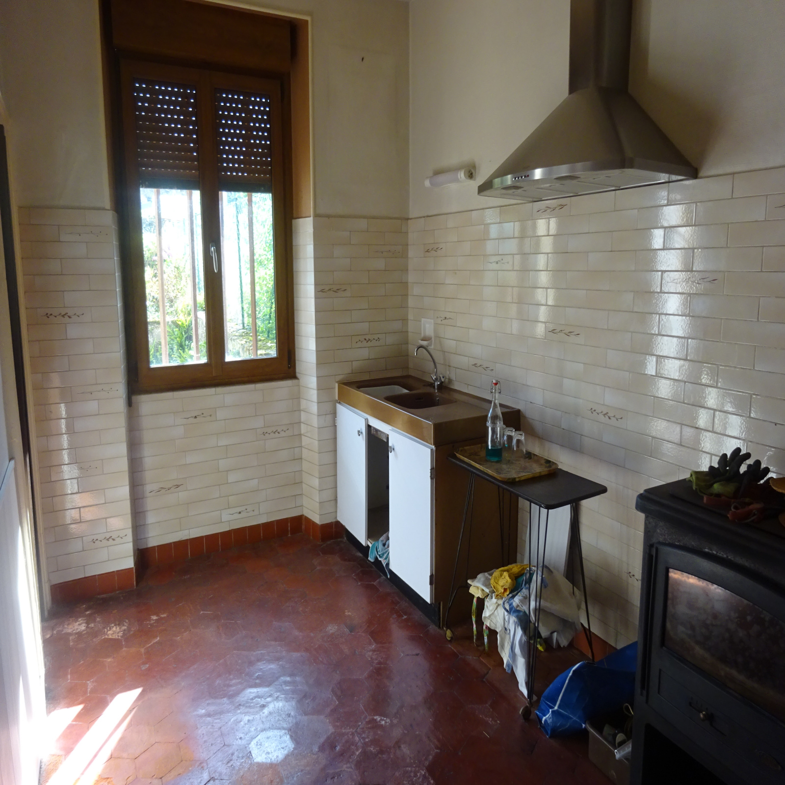 Maison de village habitable, mitoyenne d'un côté, sur terrain de 218 m² environ comprenant :
