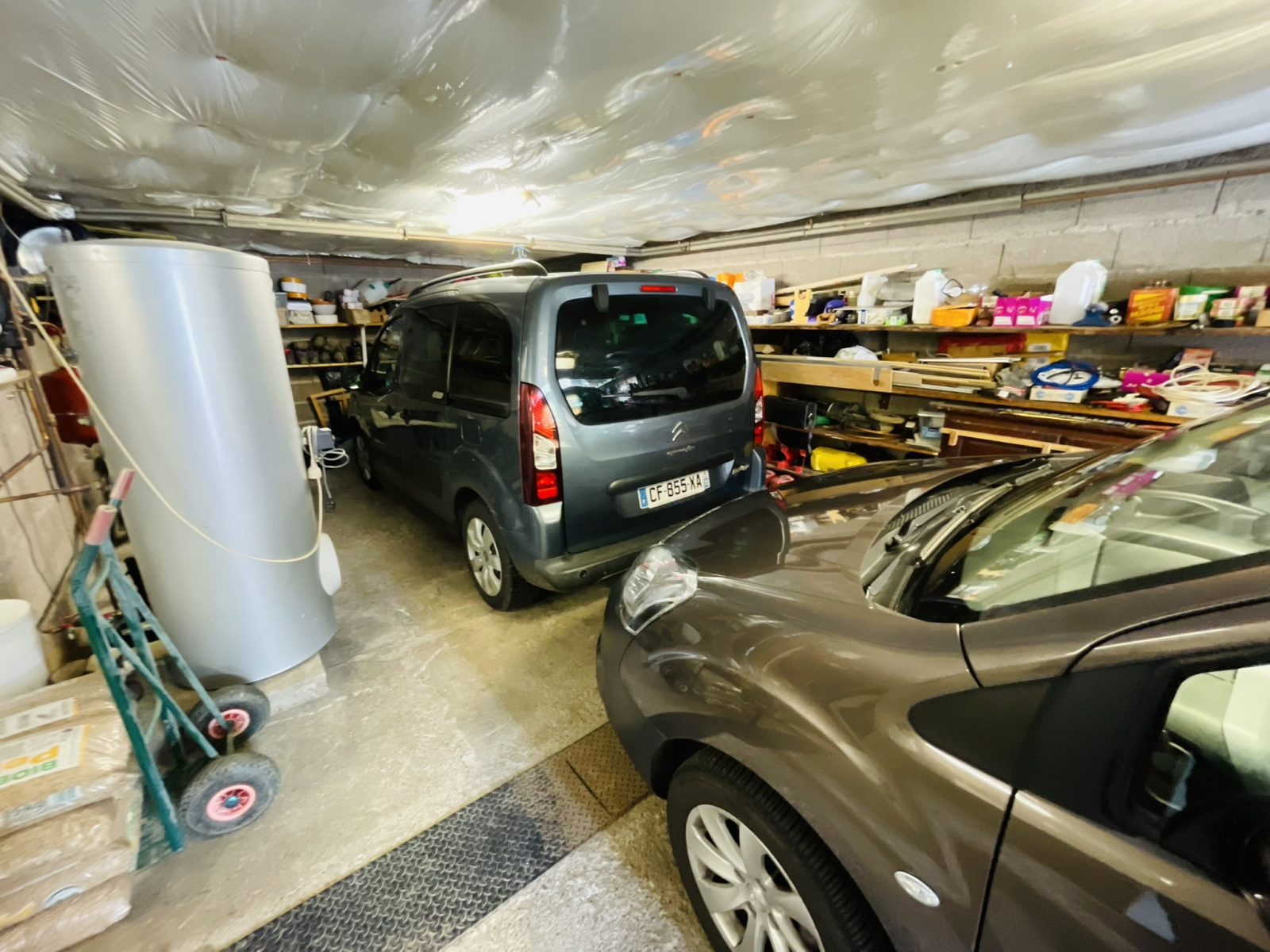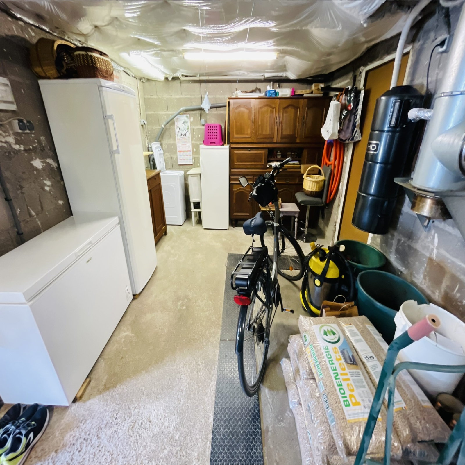 Au sous-sol: hall d'entrée donnant accès au garage avec porte motorisée, buanderie et cave.