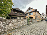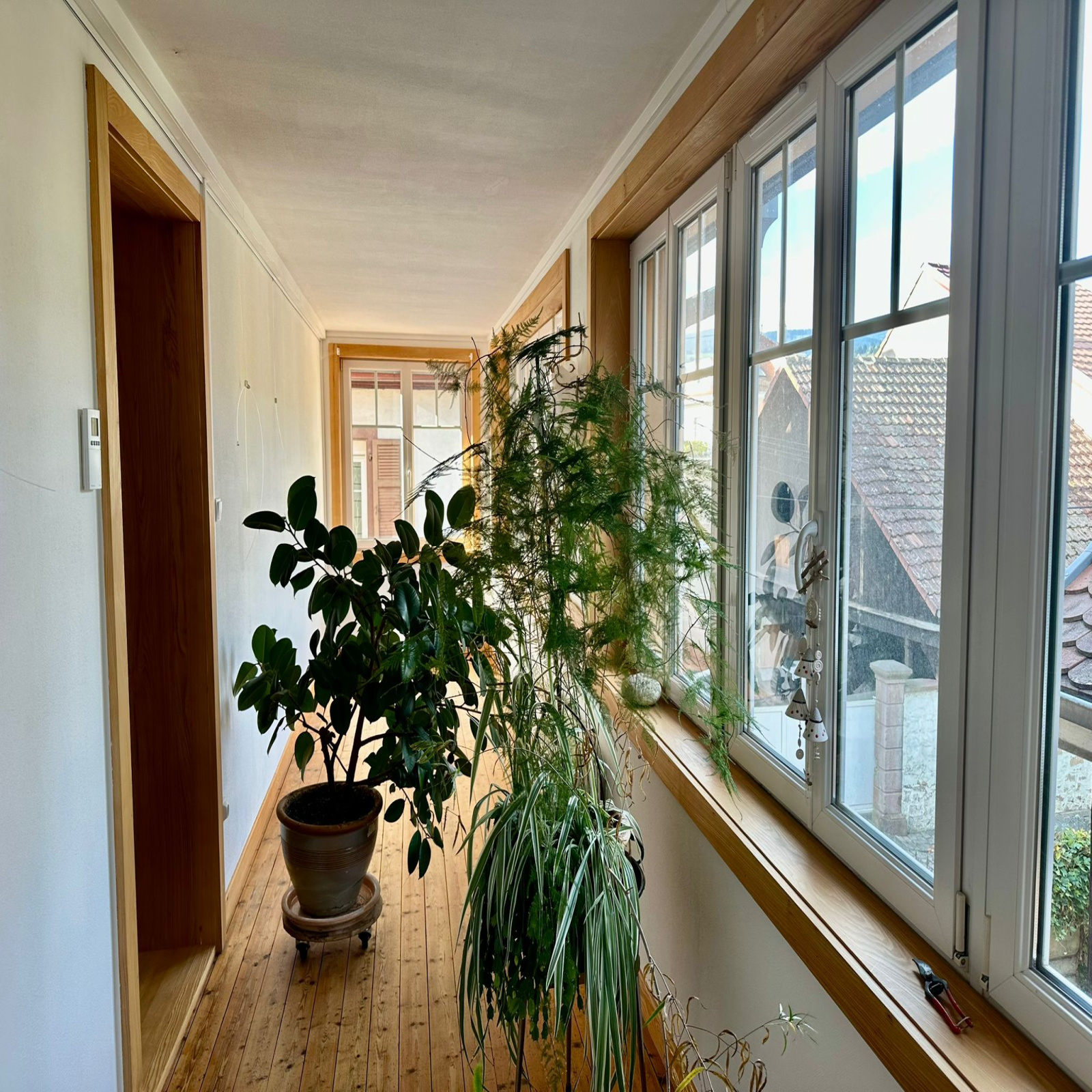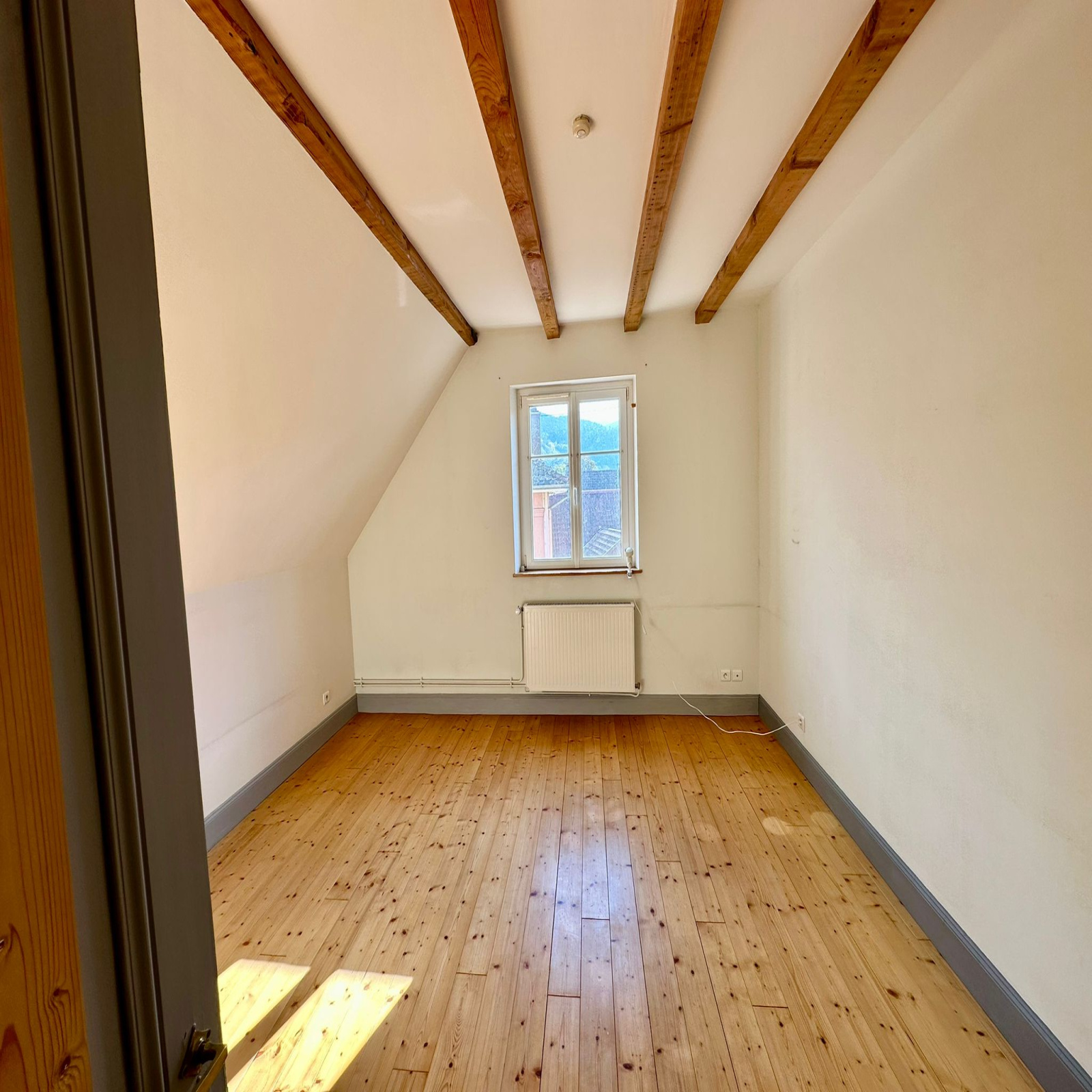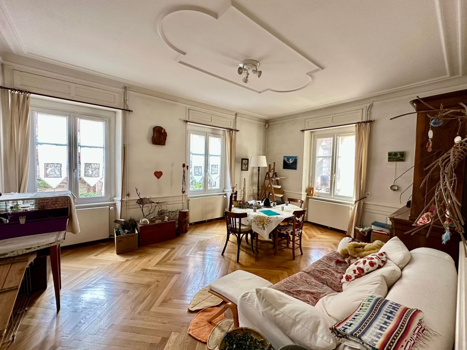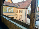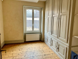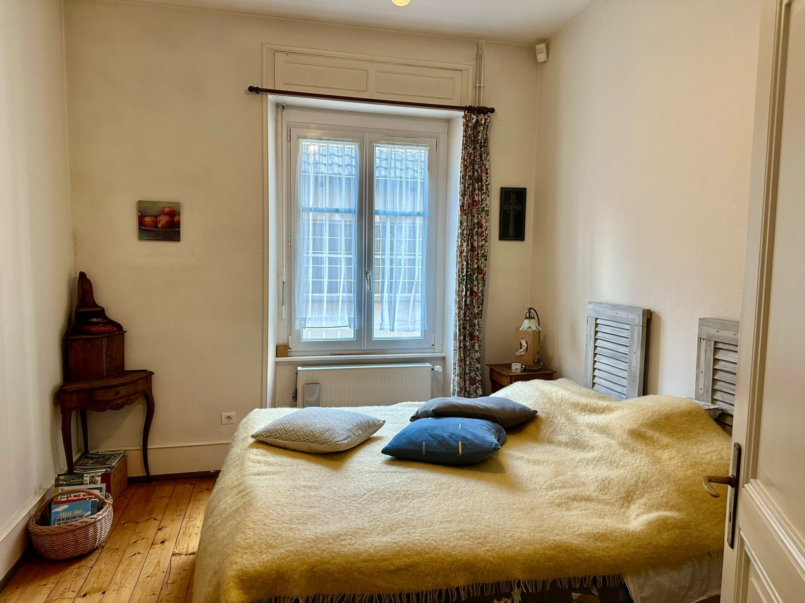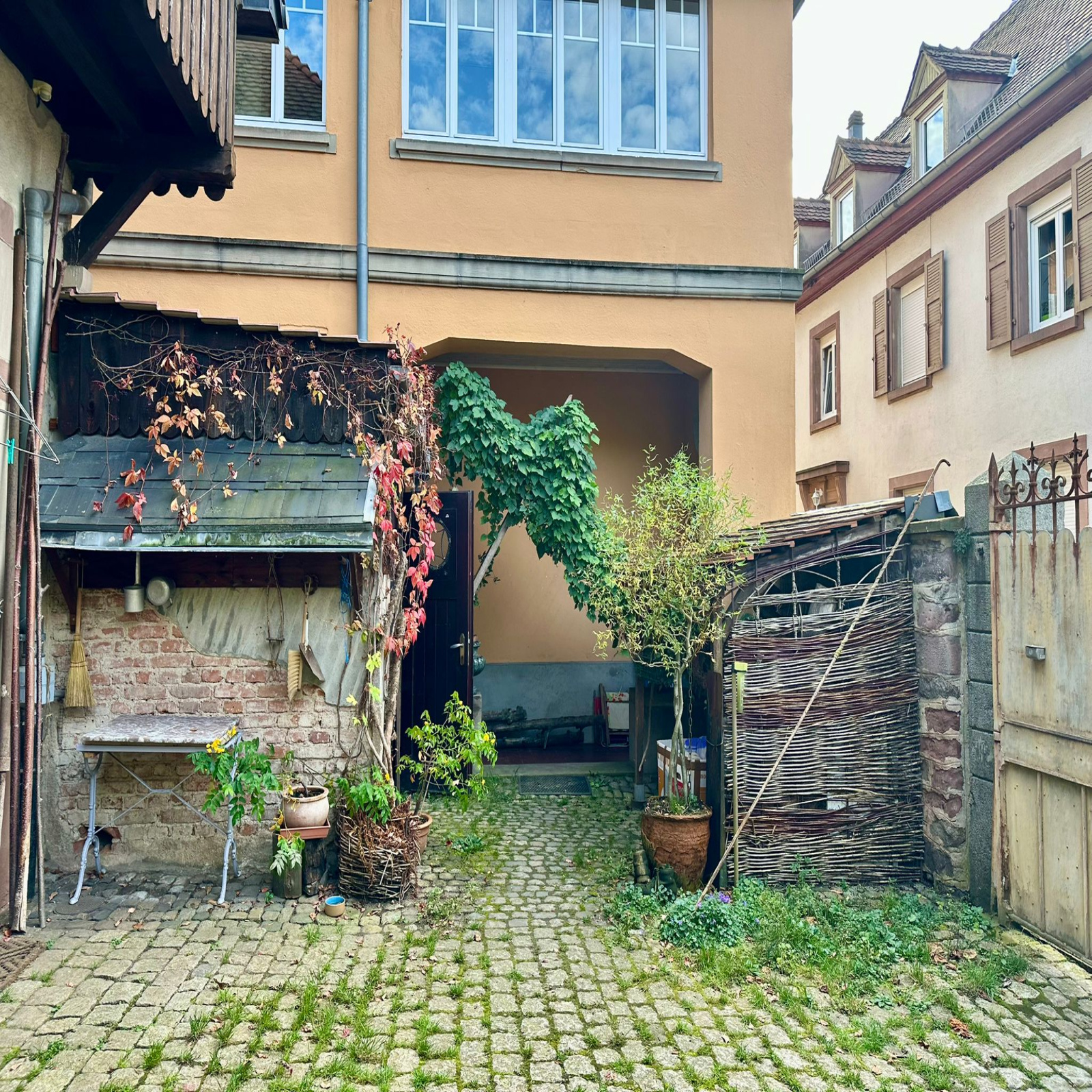 Au premier étage, le même agencement se poursuit avec quatre chambres, une salle de bain avec WC, une cuisine avec ancien évier en grès des Vosges et deux grandes pièces à vivre, une véranda.