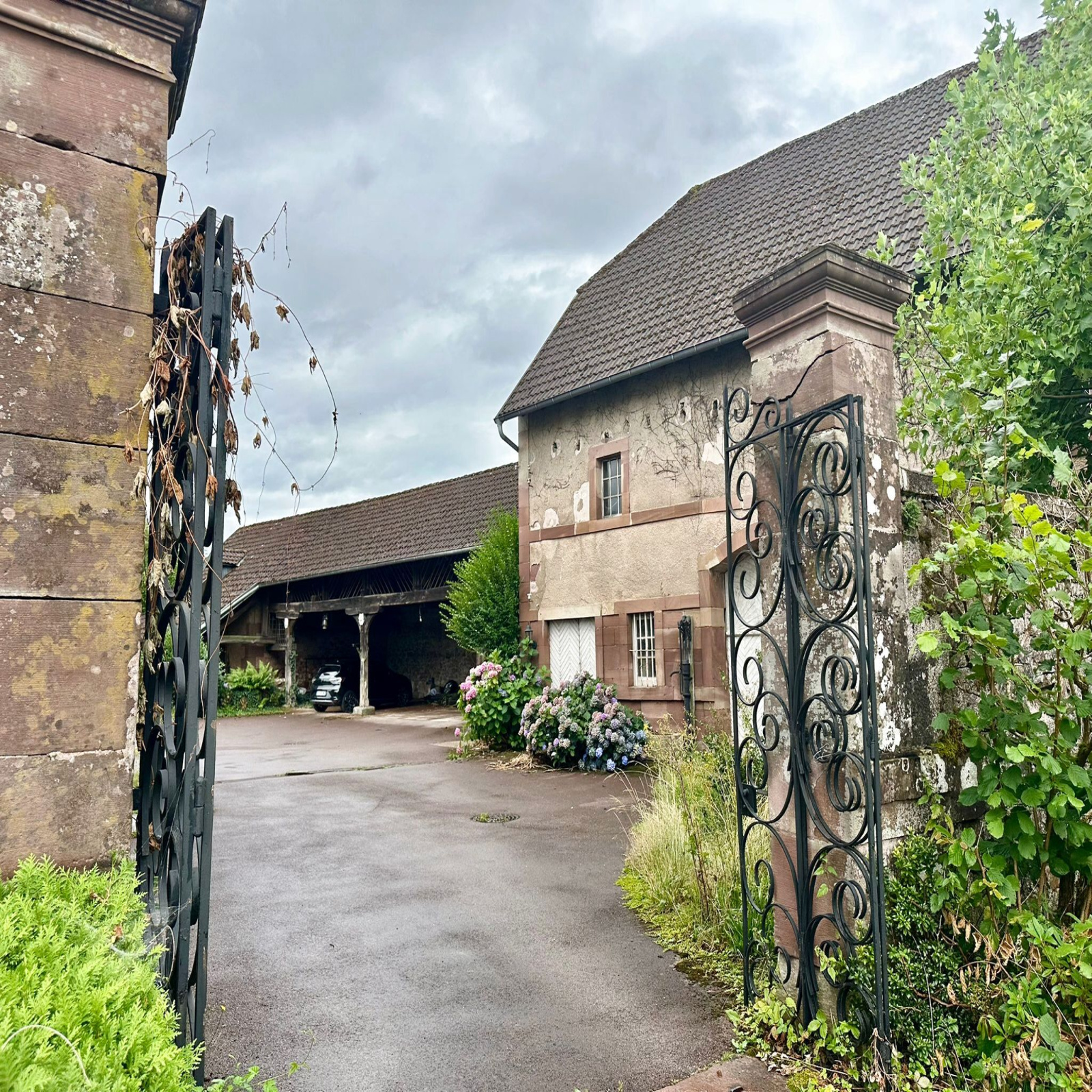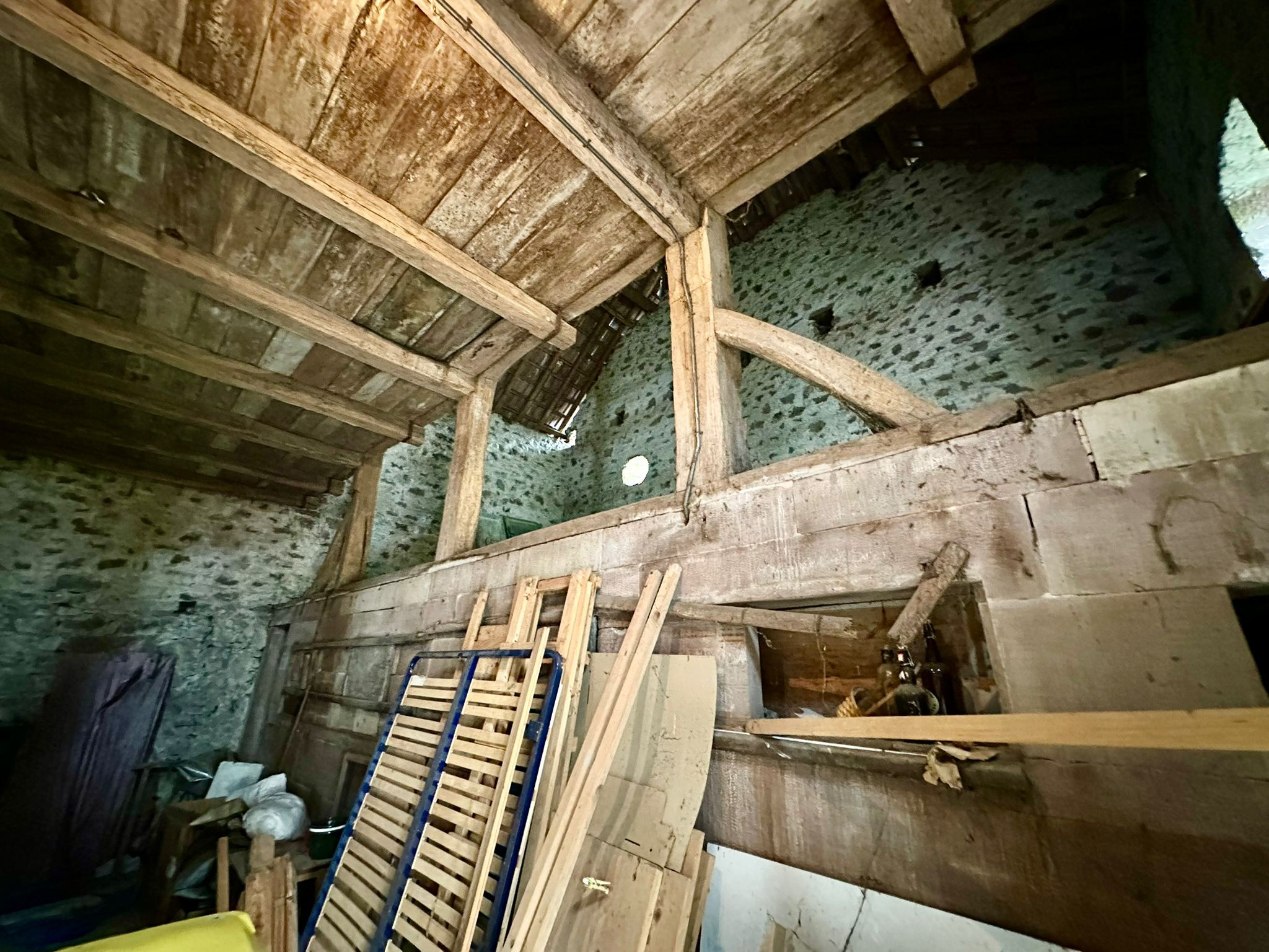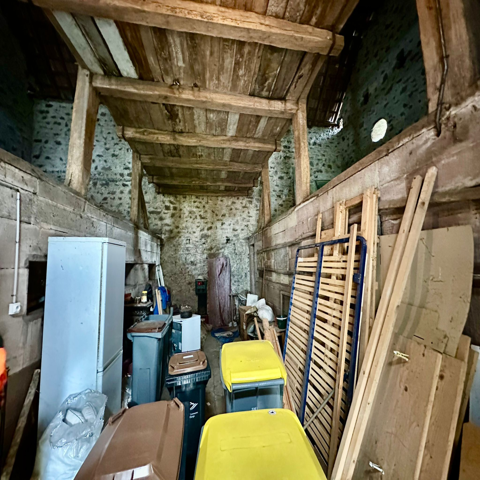 Grange avec 2 écuries. Appentis fermé pouvant accueillir 5 véhicules côte à côte.