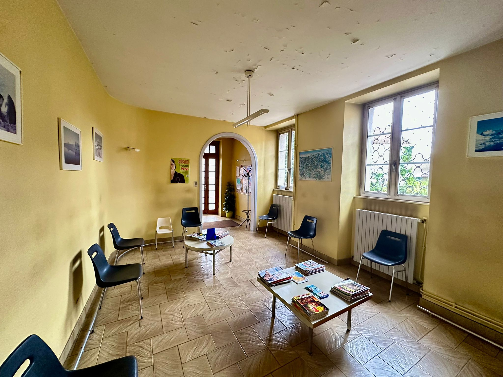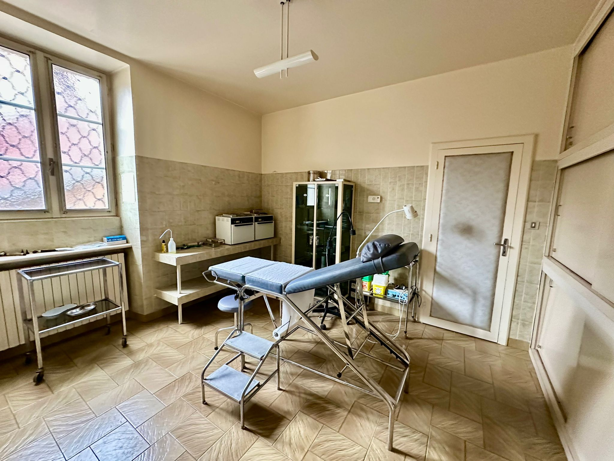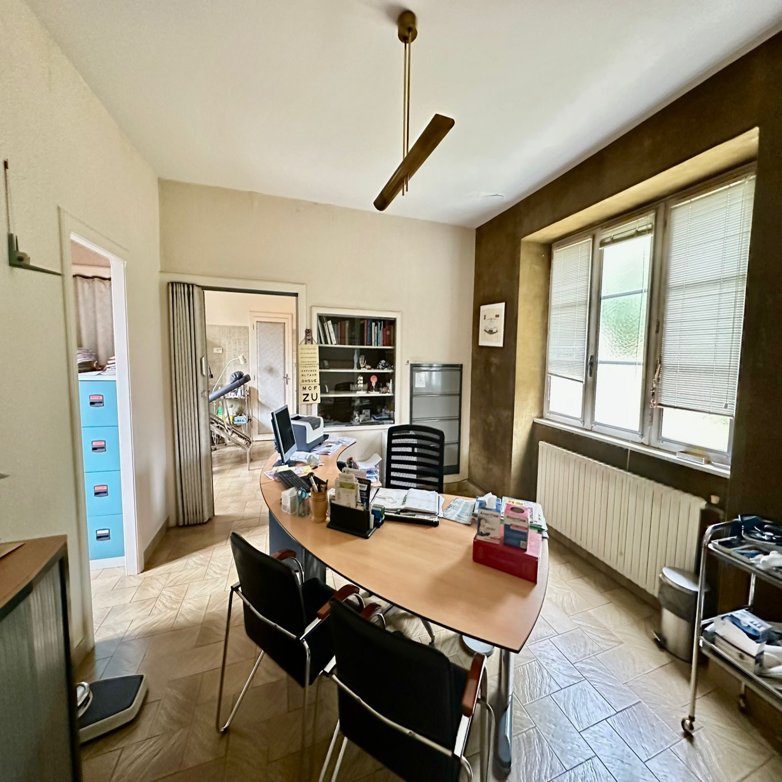 Un cabinet médical avec 3 pièces, wc, bureau, chaufferie en rez-de-chaussée ; appartement loué avec le cabinet (950 euros/mois) situé au dessus de celui-ci comprenant entrée, cuisine, séjour avec accès terrasse, wc, salle de bains, 2 chambres. Chauffage central fuel individuel.