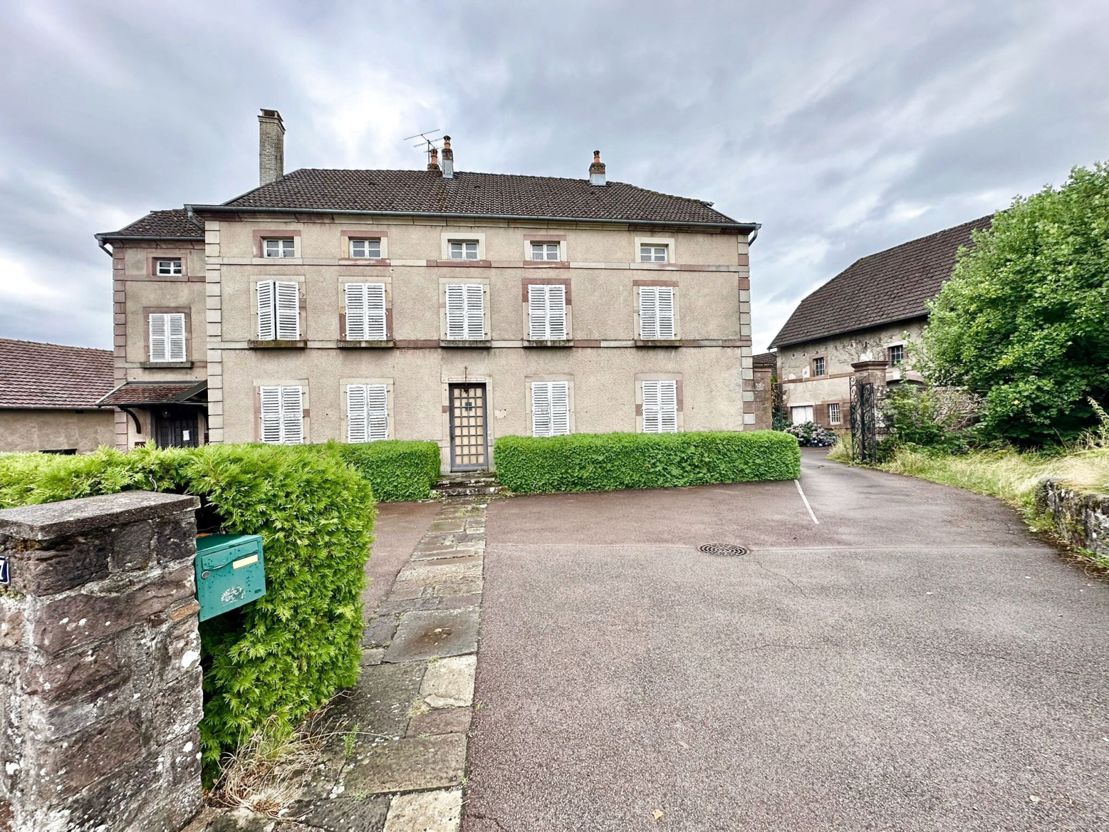 Une bâtisse principale comprenant : vaste entrée, cuisine avec excès extérieur, salle à manger, séjour, wc au rez-de-chaussée; dégagement, salle de bains avec wc, 5 chambres, lingerie au 1er étage ; 2 pièces, greniers sur toute surface au 2ème étage ; grenier sur toutes surfaces au 3ème étage. Cave voûtée en sous sol. Chauffage par chaudière fuel individuelle.