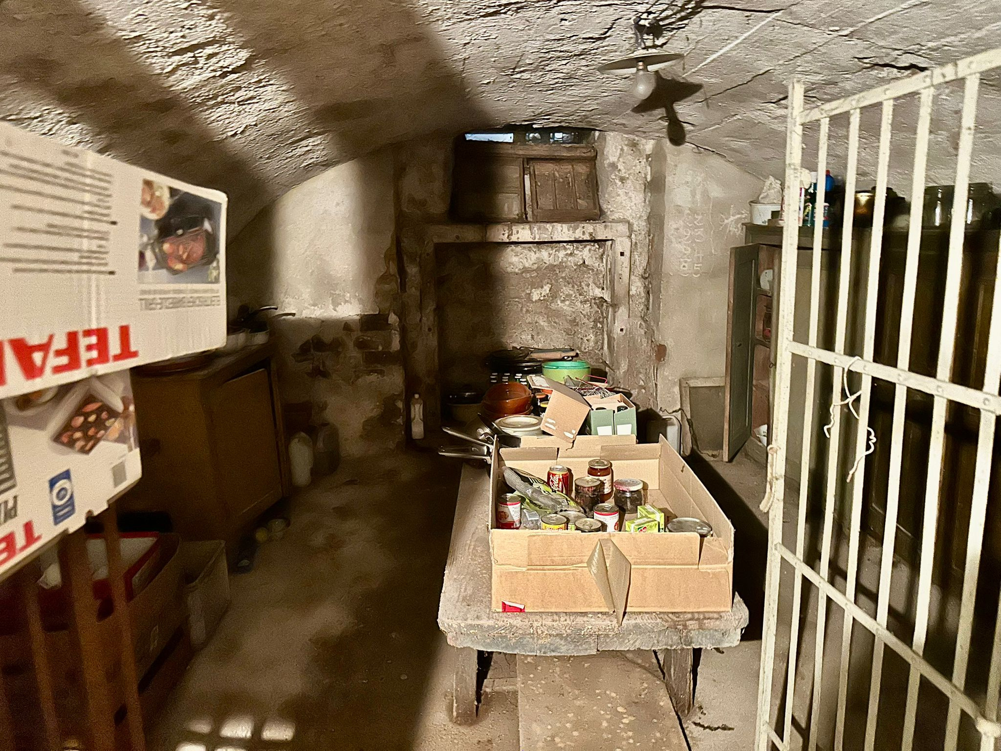 Vastes caves sous le cabinet et le terrain.