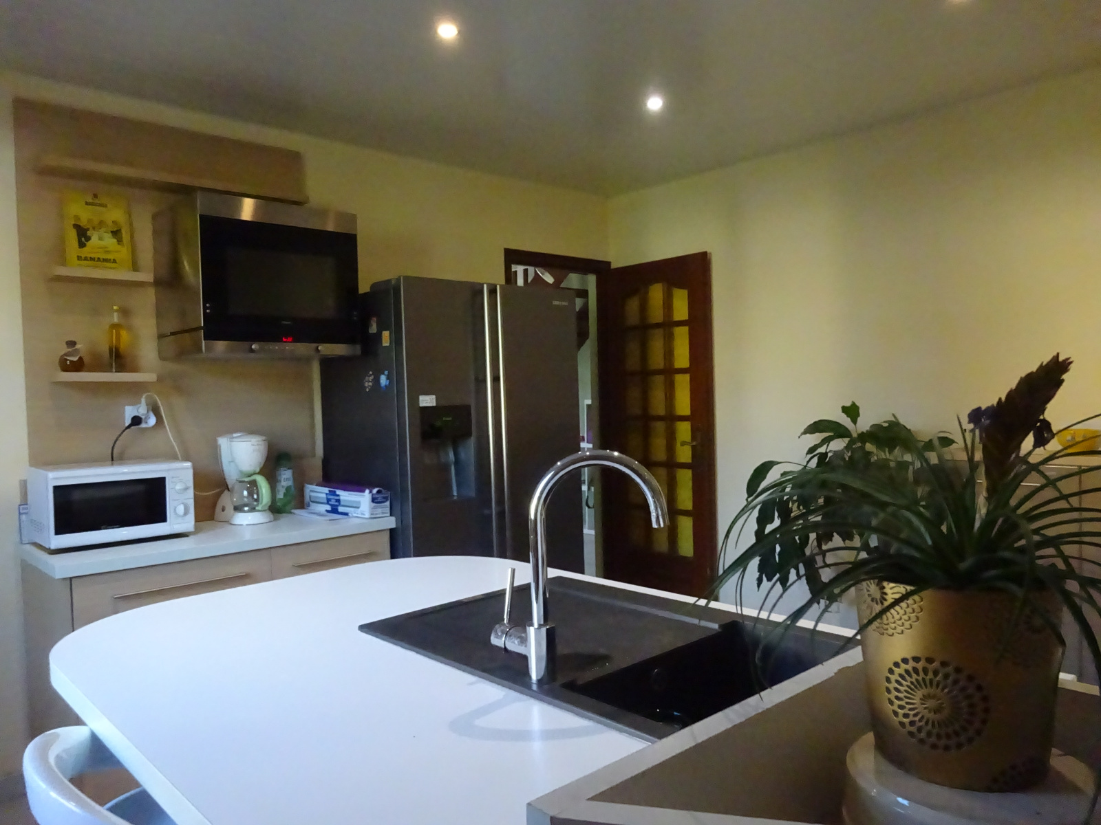 Au rez-de-chausée : entrée avec rangements, cuisine équipée (14 m² env), salle à manger / salon (40 m² env) avec cheminée insert et accès terrasse (store électrique), une chambre (10 m² env), salle de bains, wc.