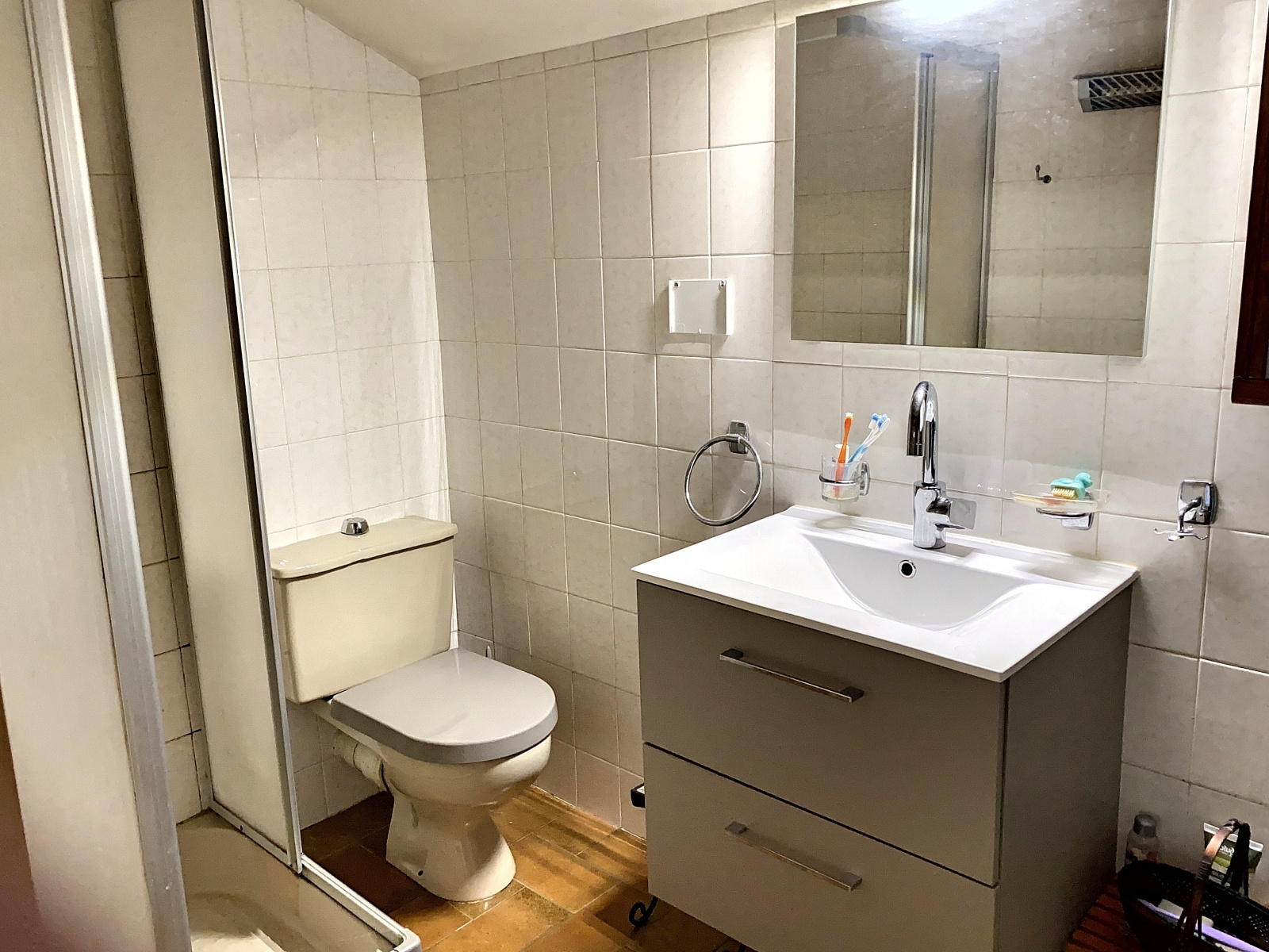 A l'étage : 2 chambres avec placards, salle d'eau avec wc.