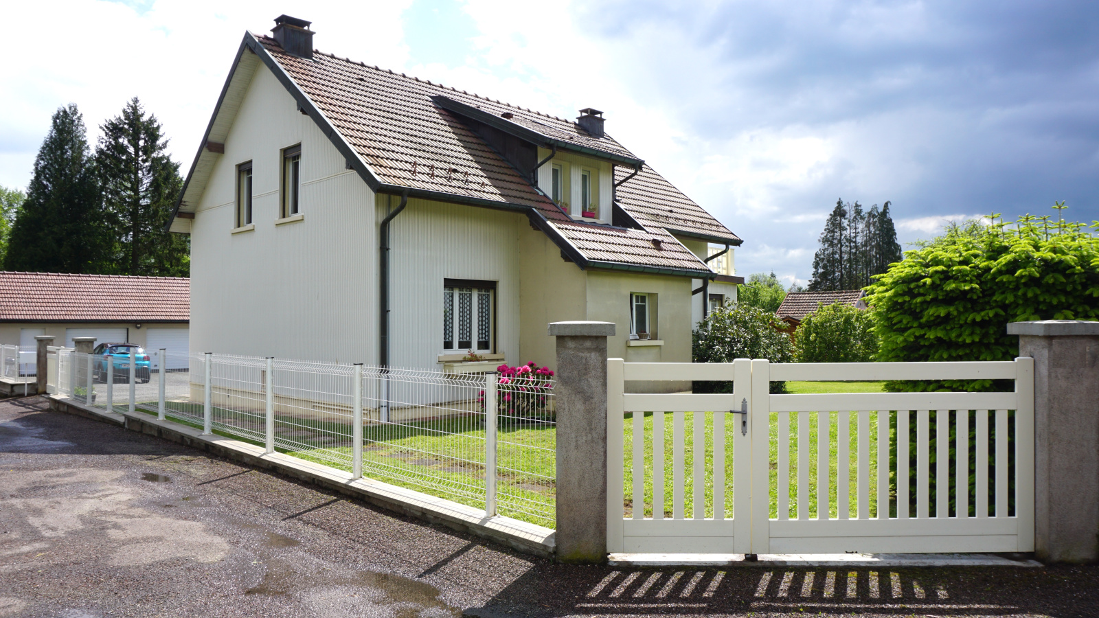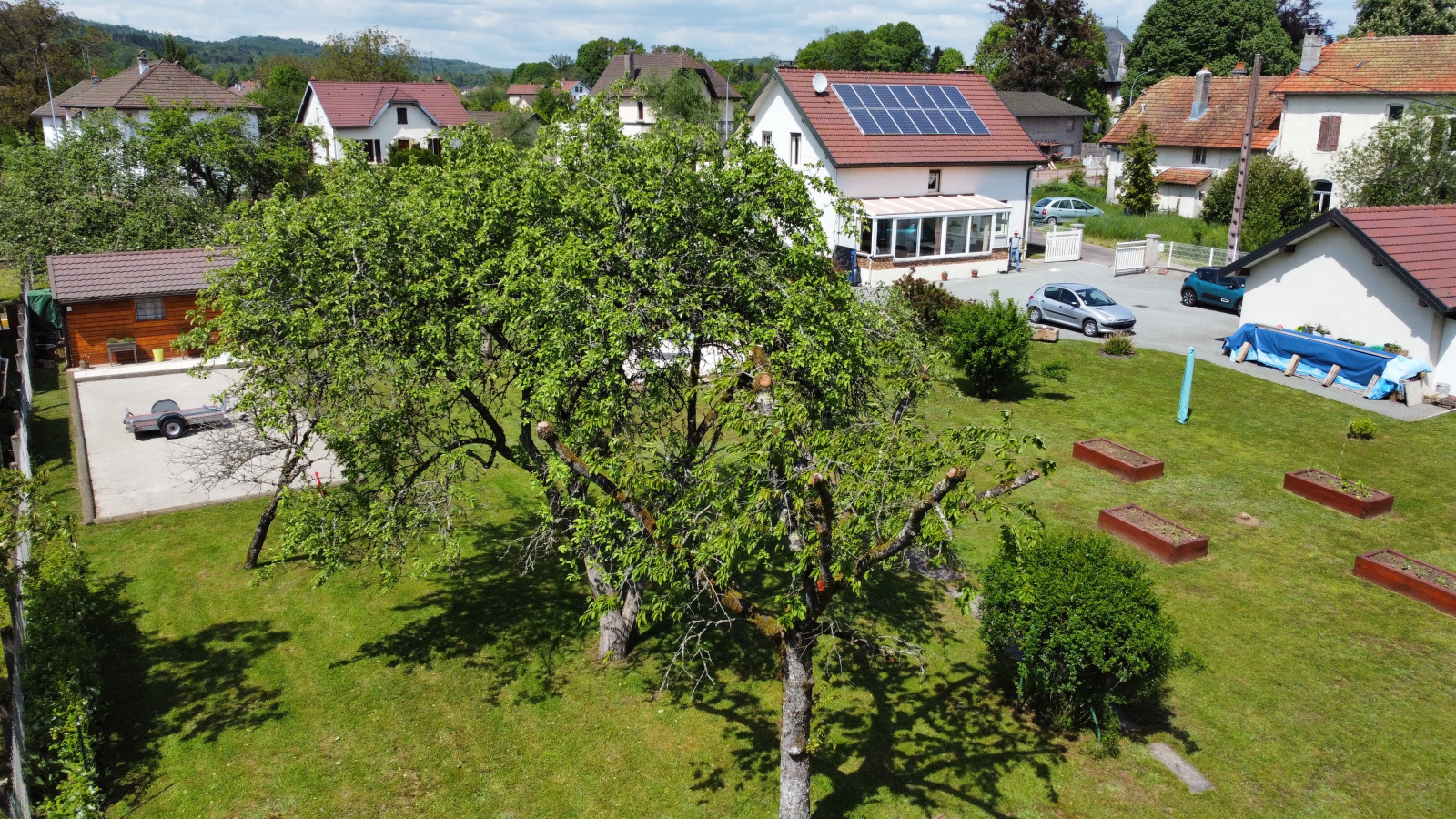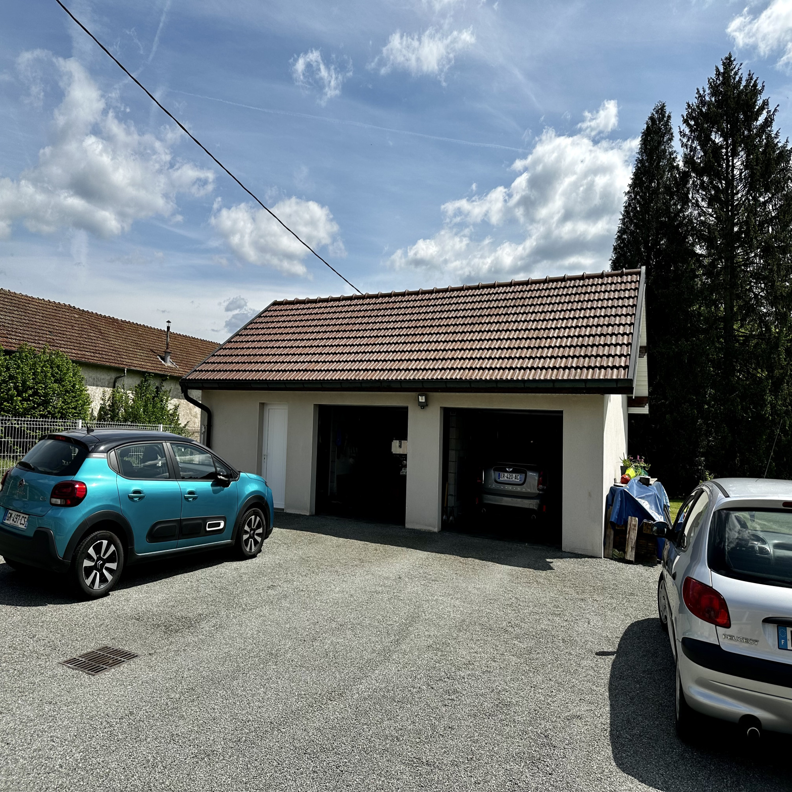 Dépendances : 2 garages avec portes motorisées (60 m2 env) , grenier au-dessus (30 m2 env). Abri de jardin avec dalle (20 m2 env).