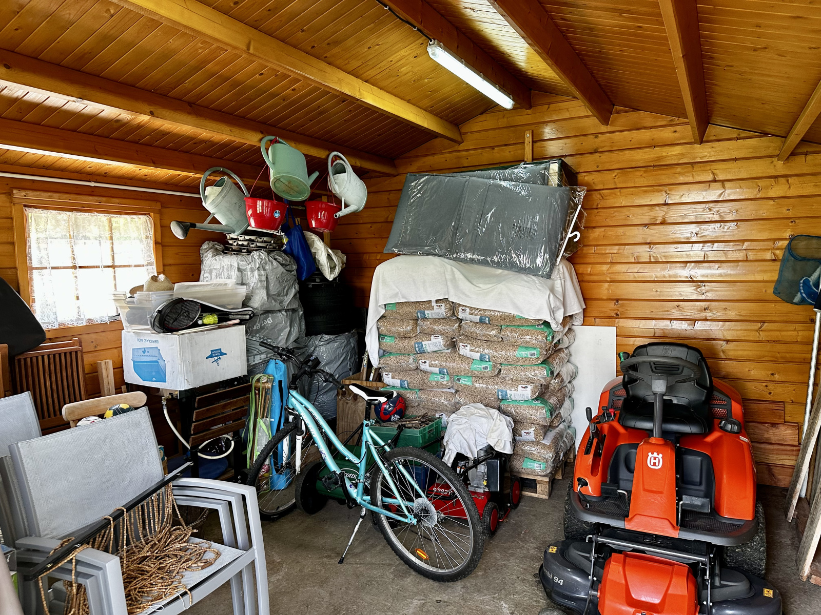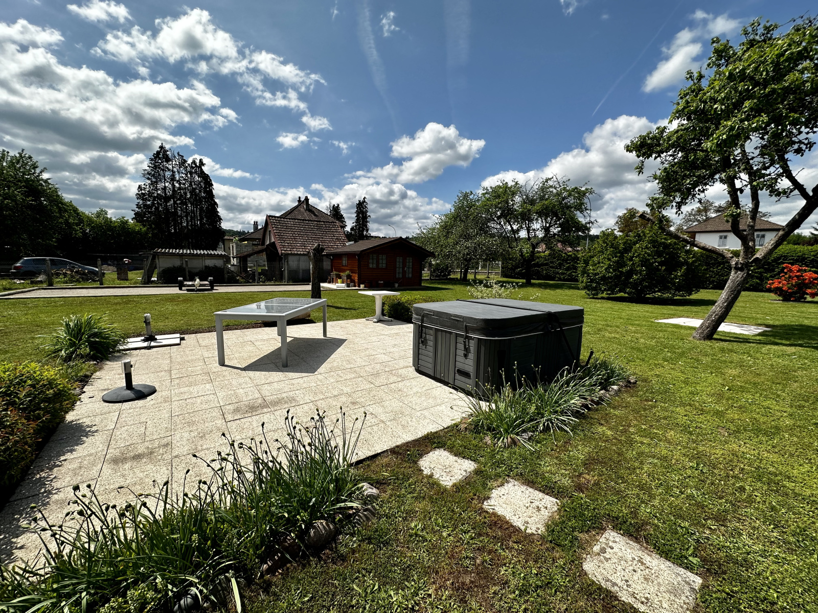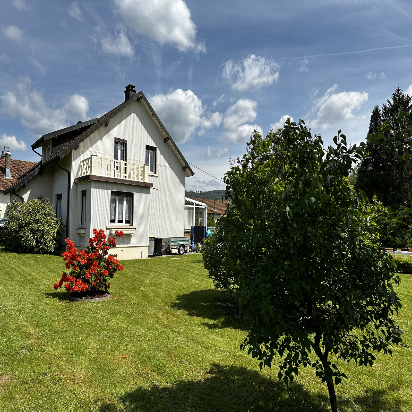 Dépendances : 2 garages avec portes motorisées (60 m2 env) , grenier au-dessus (30 m2 env). Abri de jardin avec dalle (20 m2 env).
