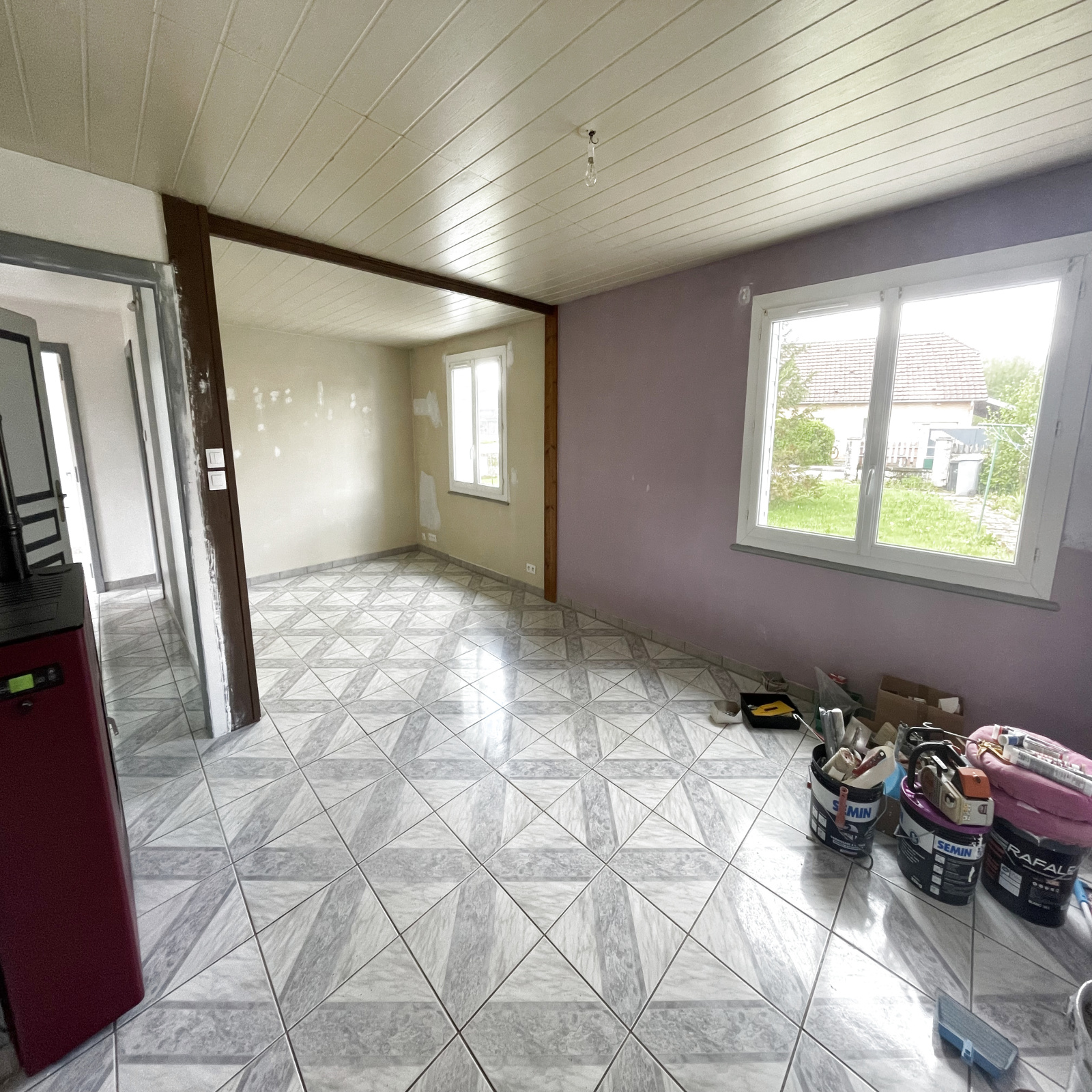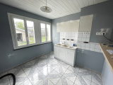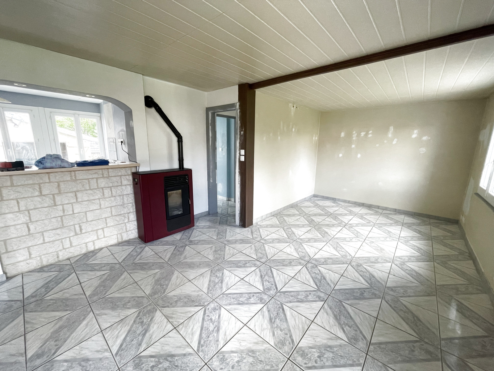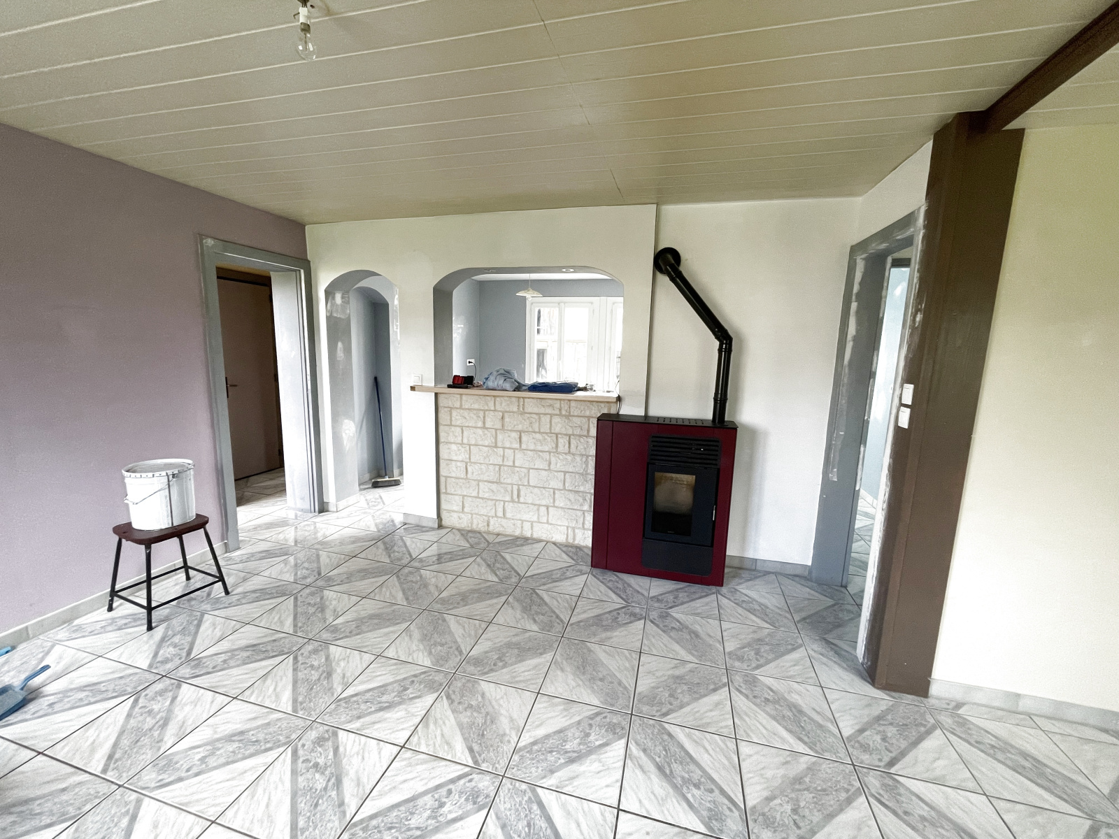Entrée avec placards, cuisine, salon/séjour avec poêle à pellet, 3 chambres, salle d'eau avec w.c.