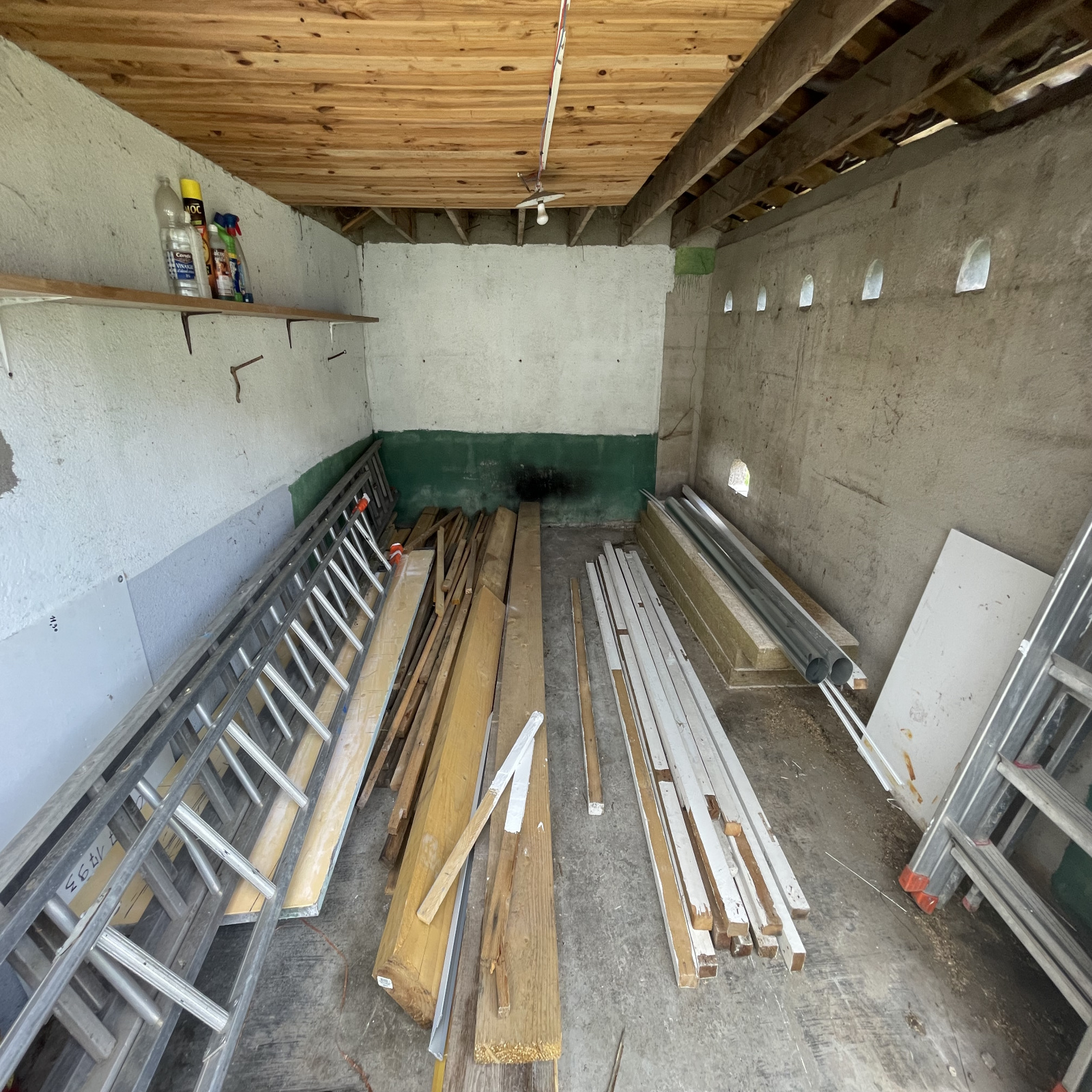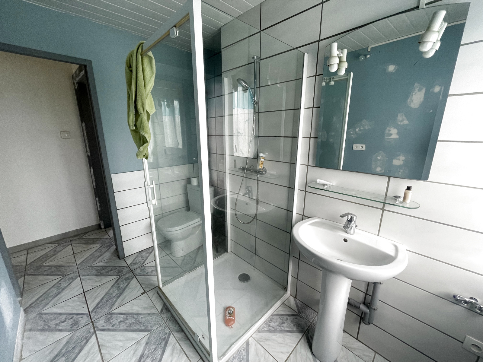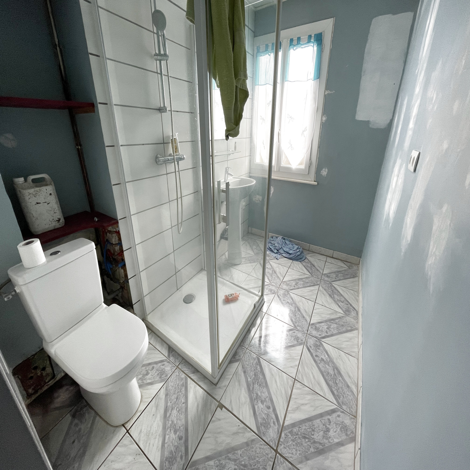 Entrée avec placards, cuisine, salon/séjour avec poêle à pellet, 3 chambres, salle d'eau avec w.c.