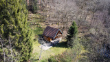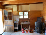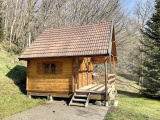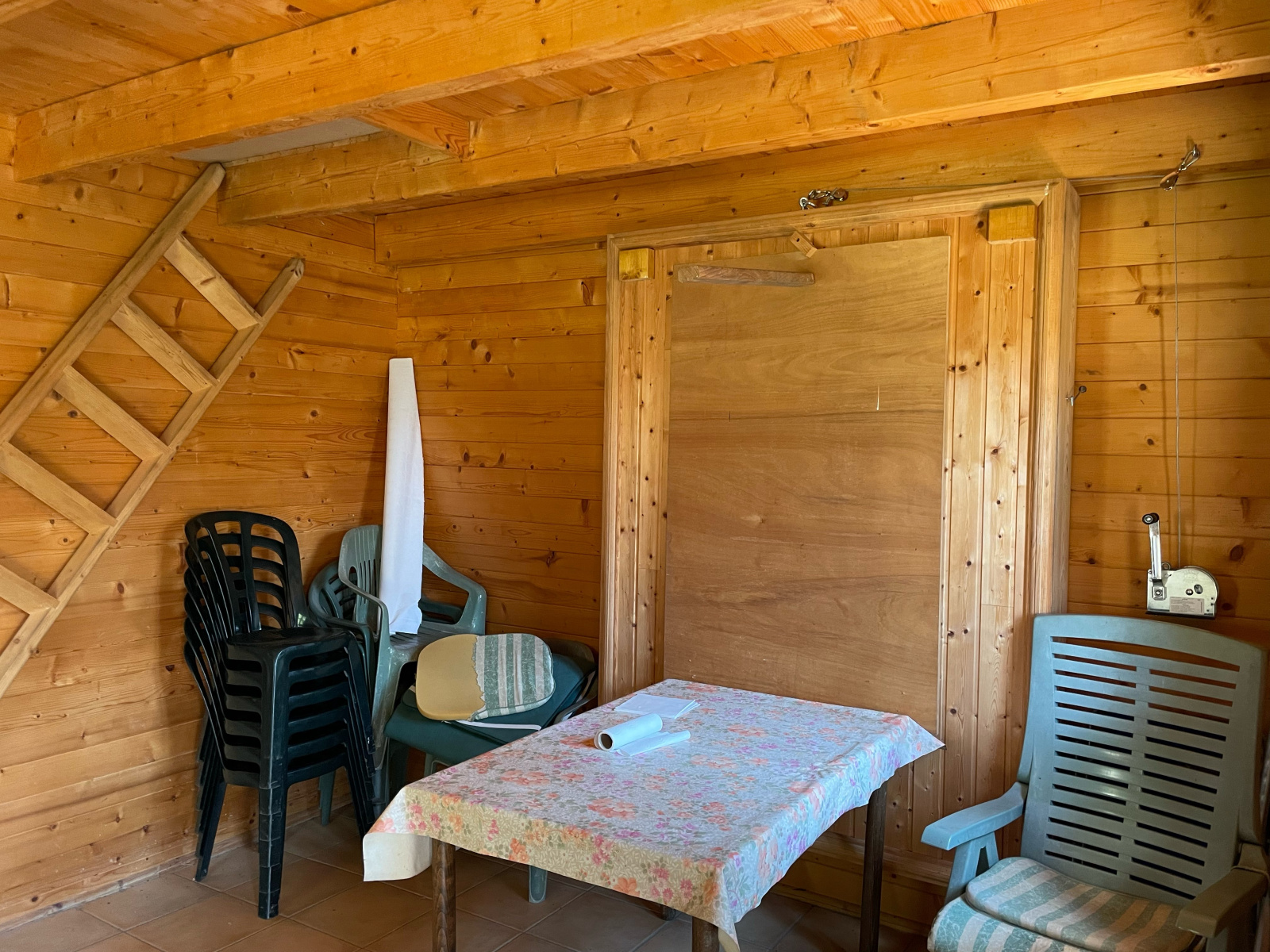 Petit chalet bois composé d'une pièce de 14 m2 environ ainsi que d'une jolie terrasse. (avec permis de construire). Pas d'eau, pas d'électricité