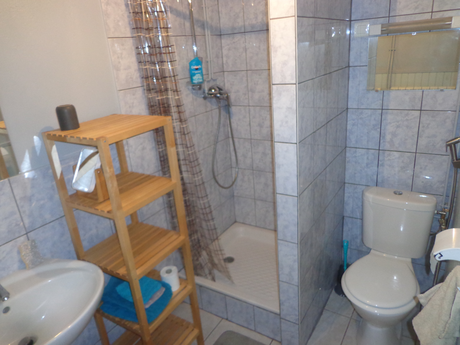 Au rez-de-chaussée : 2 entrées sur couloir traversant la maison (10 m² env), salon (23 m² env), salle d'eau avec wc, buanderie avec douche et wc (6.6 m² env), chaufferie (8 m² env).