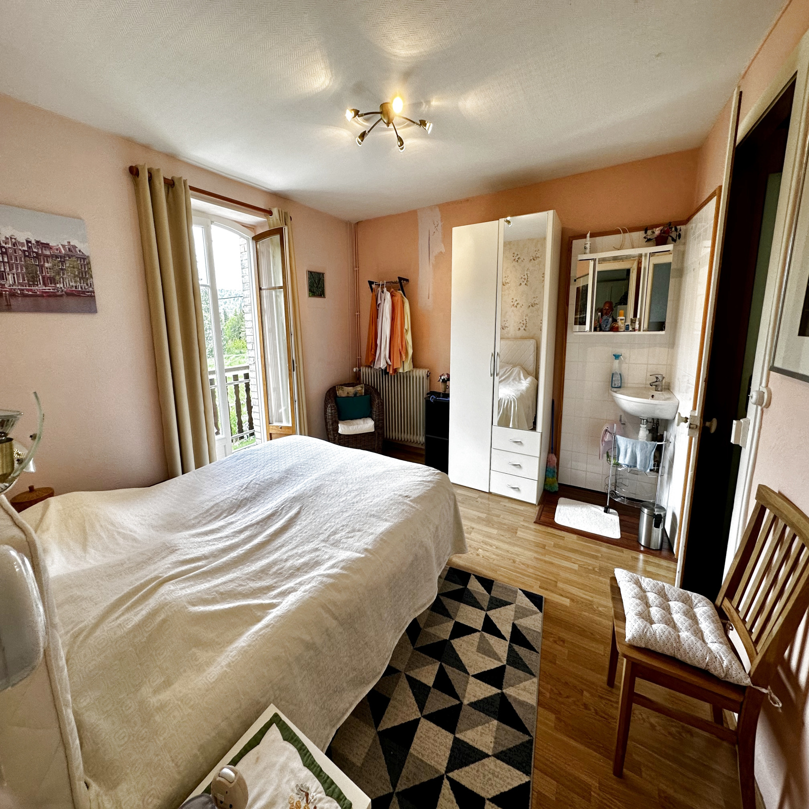 Au 2ème étage : 2 chambres en enfilade dont une avec un lavabo (16 et 12 m2 env), wc.