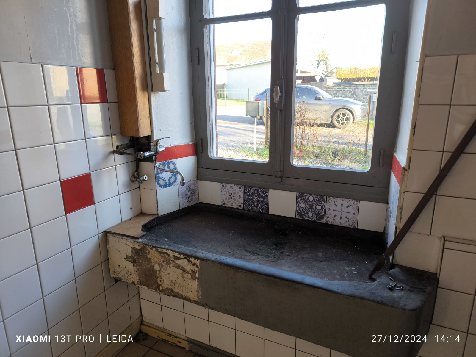 Norbert vous invite à découvrir en exclusivité cette maison de village entèrement à rénover, mitoyenne d'un côté, sur son terrain de 950 m2, elle comprend :