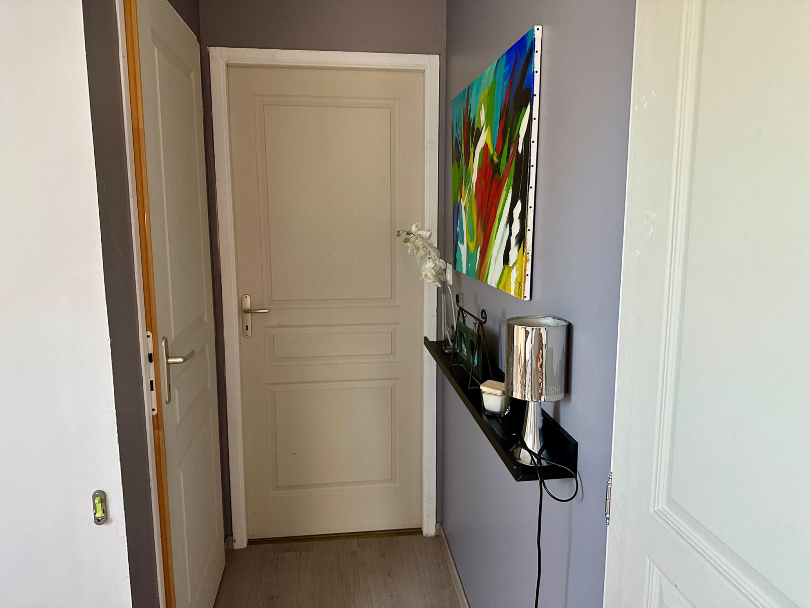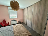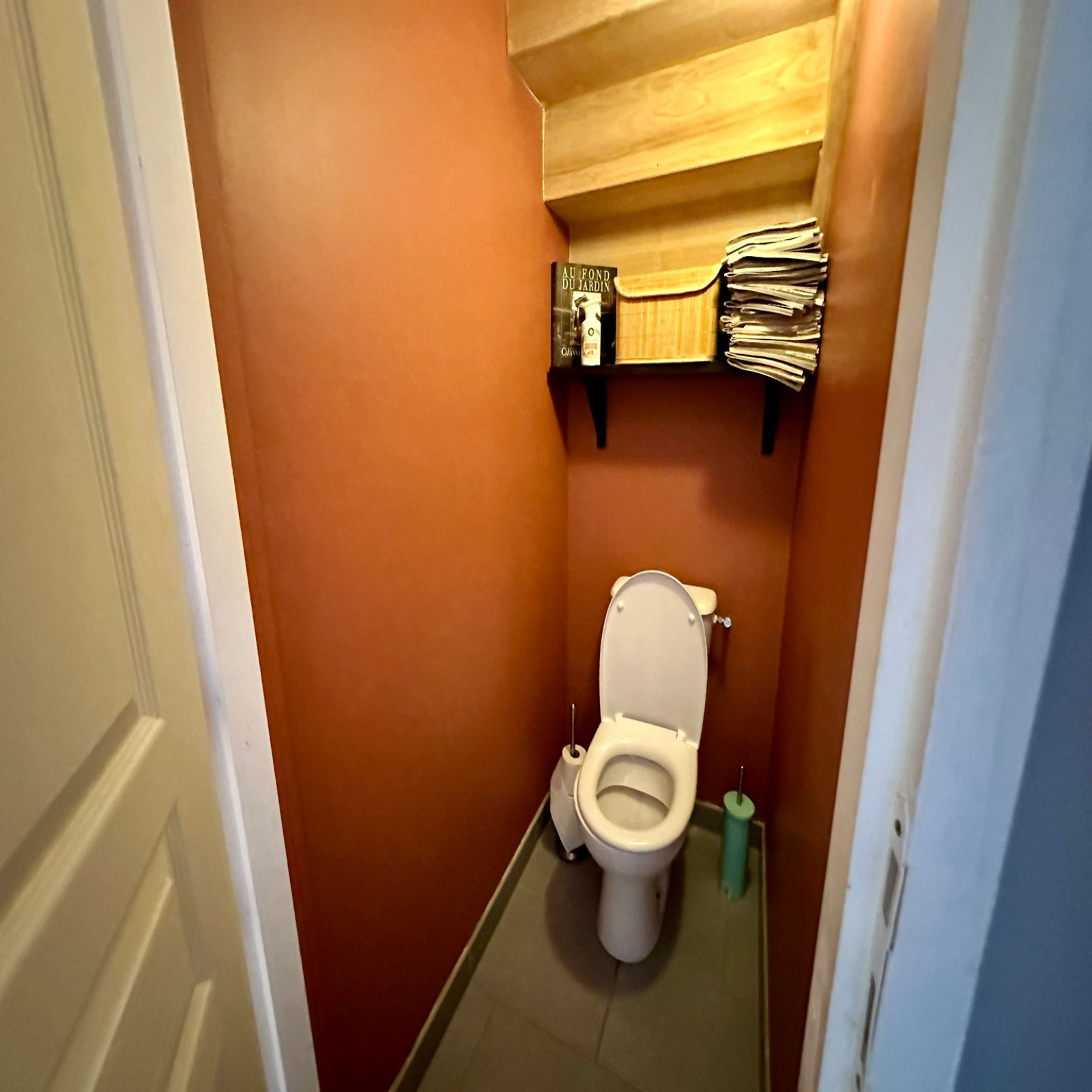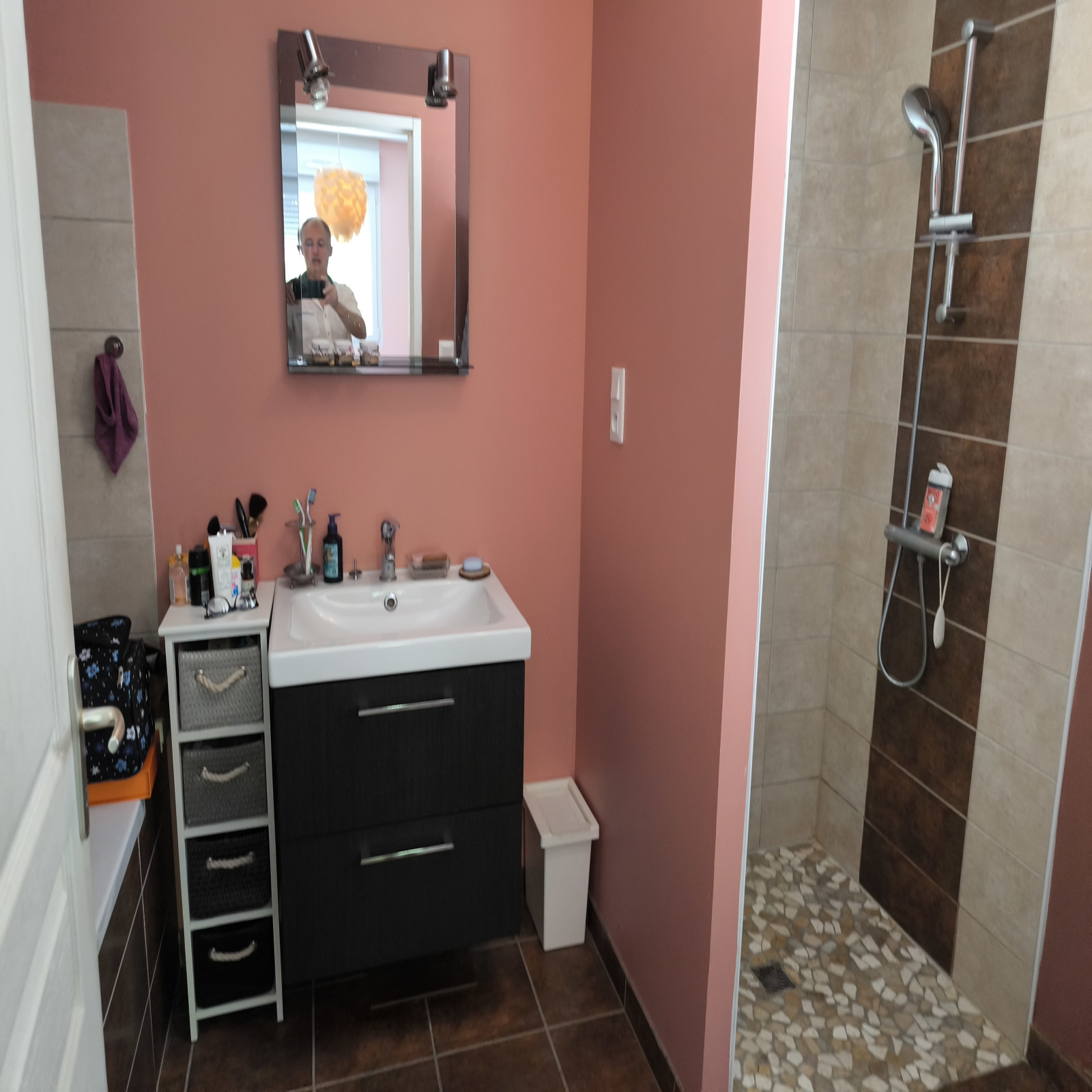 A l'étage : 2 chambres mansardés (9 et 10 m2 env), salle de bains mansardée (3 m2 env), w.c.