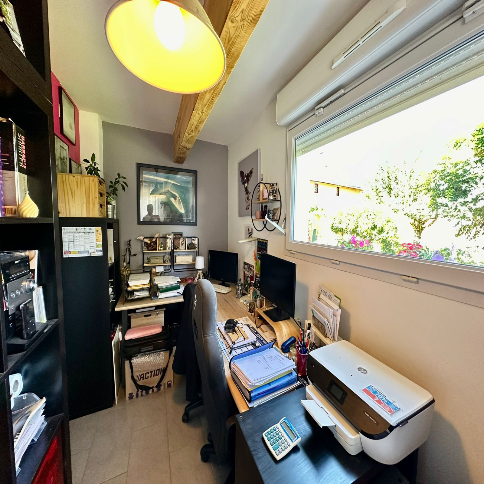 Au rez-de-chaussée : entrée ouverte sur cuisine équipée/séjour (40 m2 env), bureau (10 m2 env), suite parentale avec chembre(13 m2 env) et salle de bains (6 m2 env) , buanderie (4 m2 env), wc..
