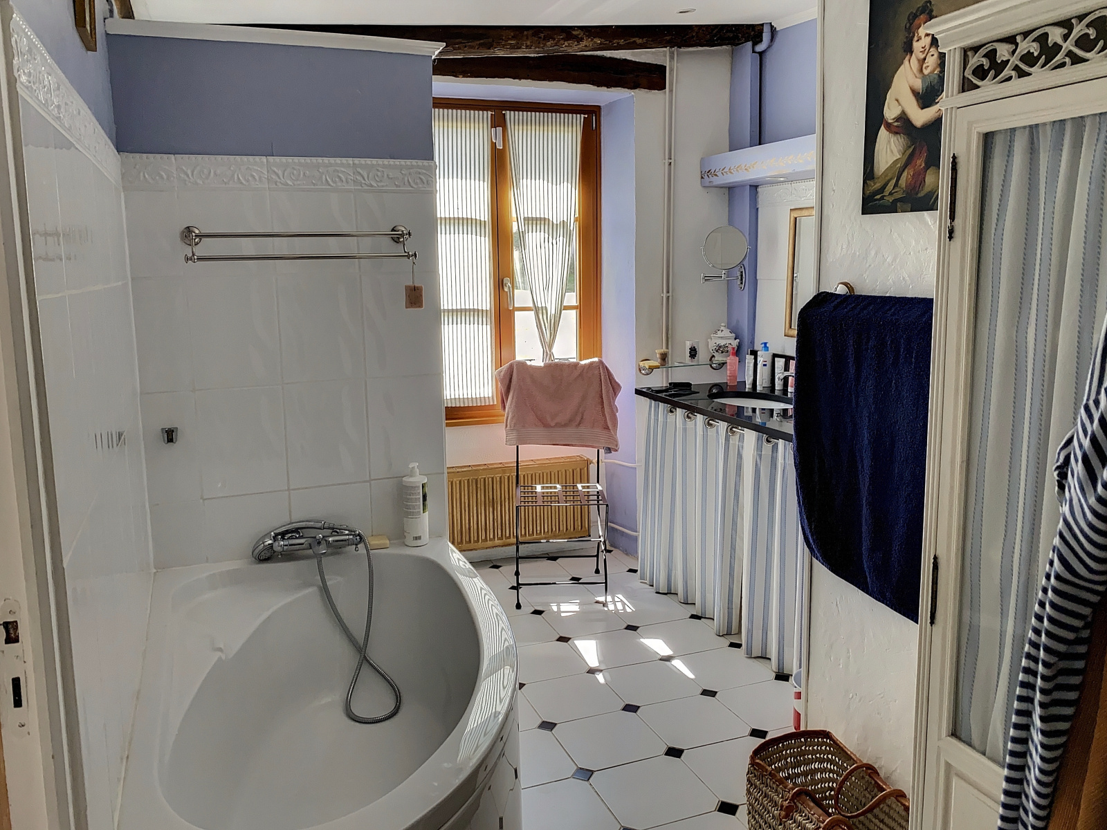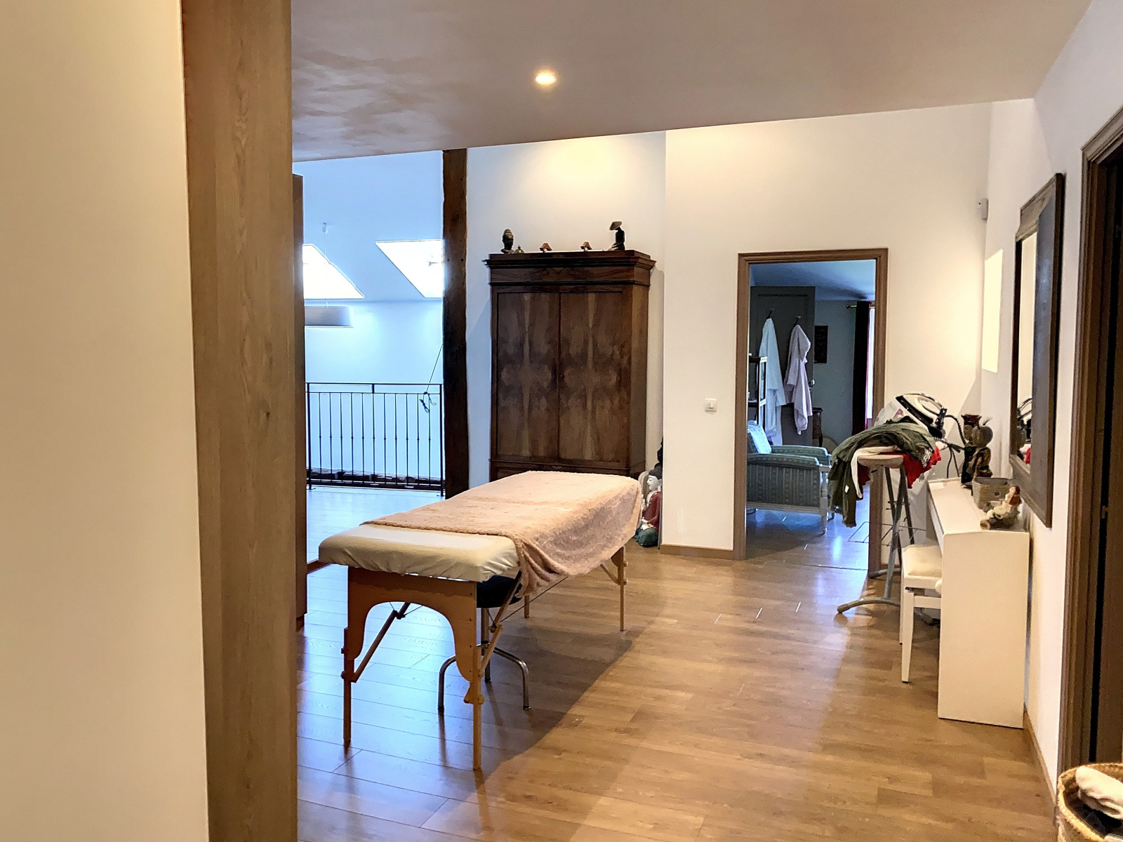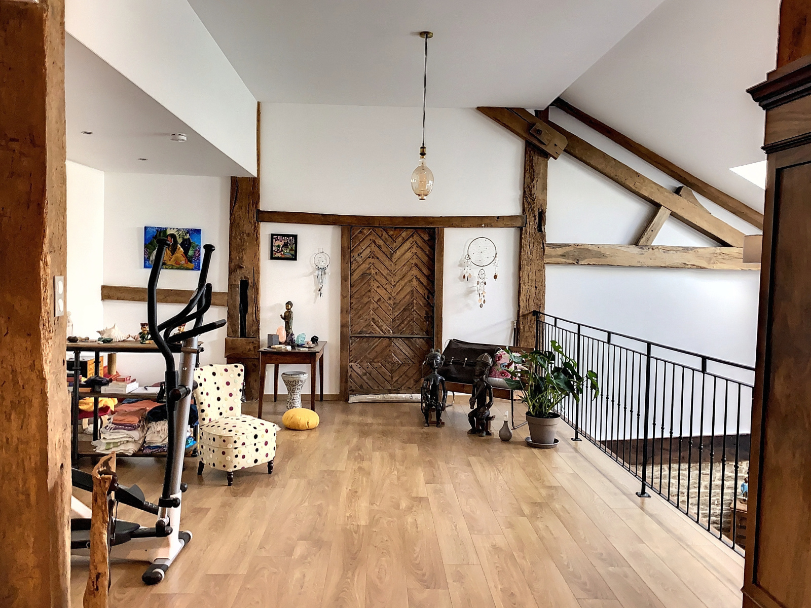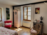 A l'étage : grande mezzanine, une chambre avec un lavabo, une autre grande chambre, une chambre parentale avec salle d'eau et wc, buanderie avec adoucisseur d'eau.