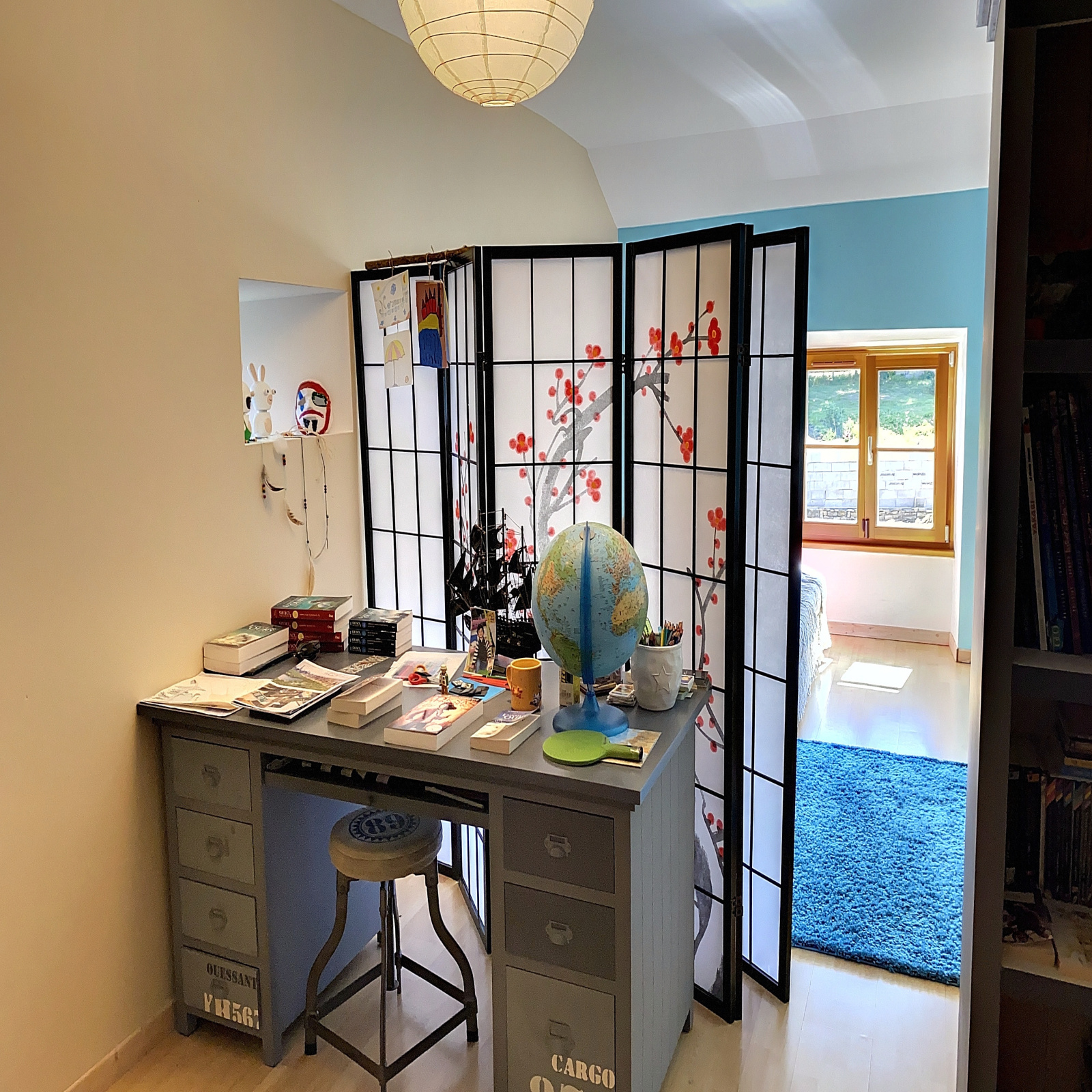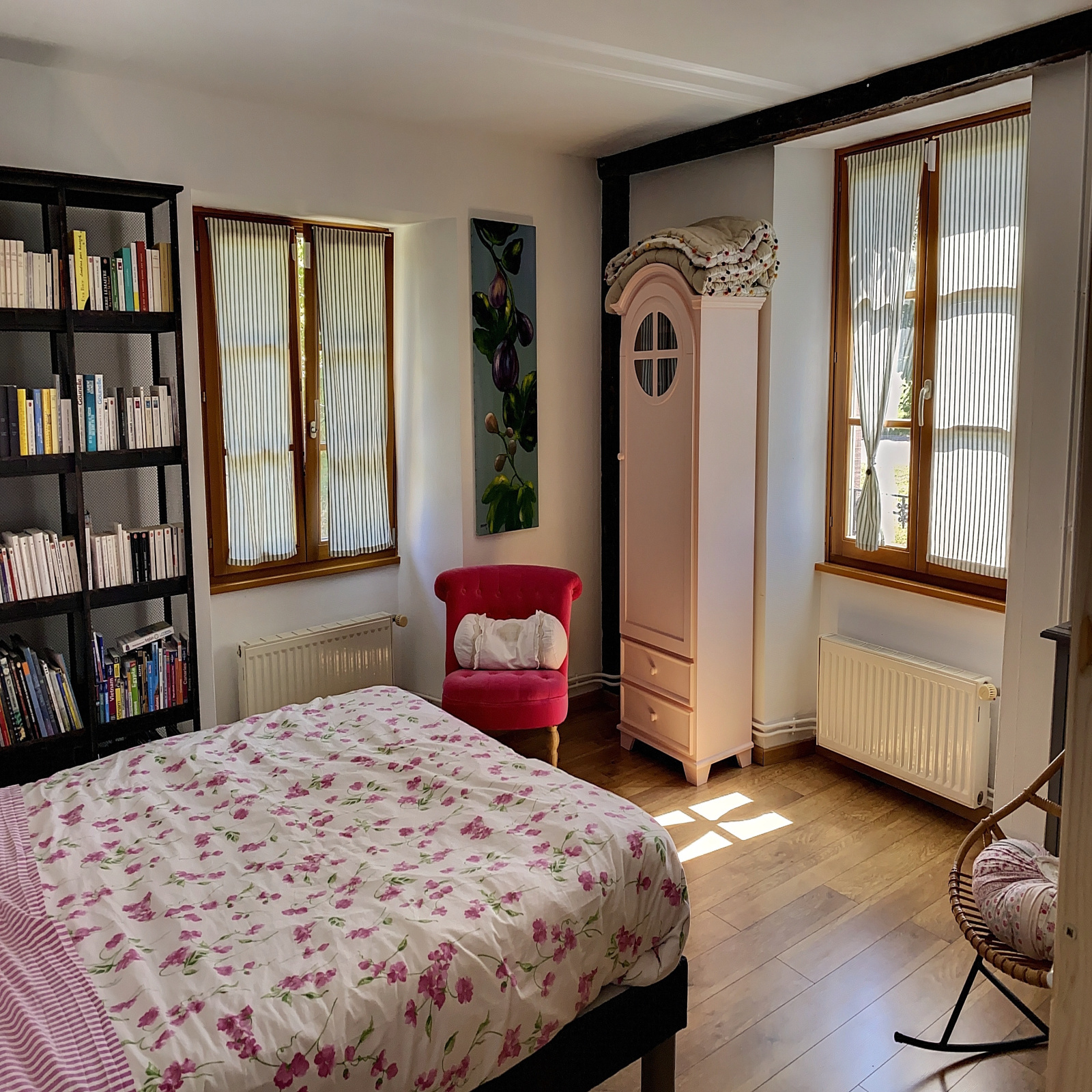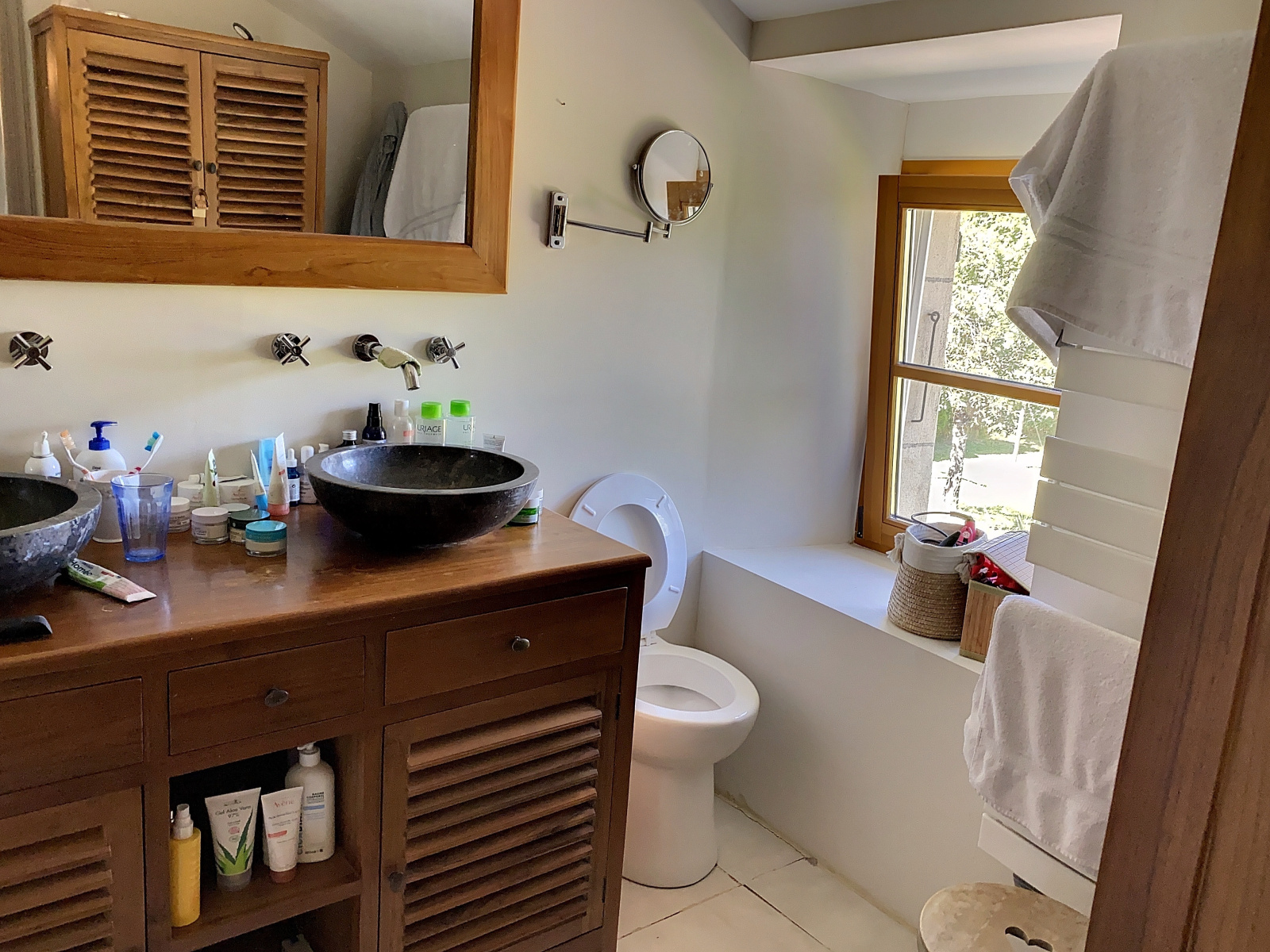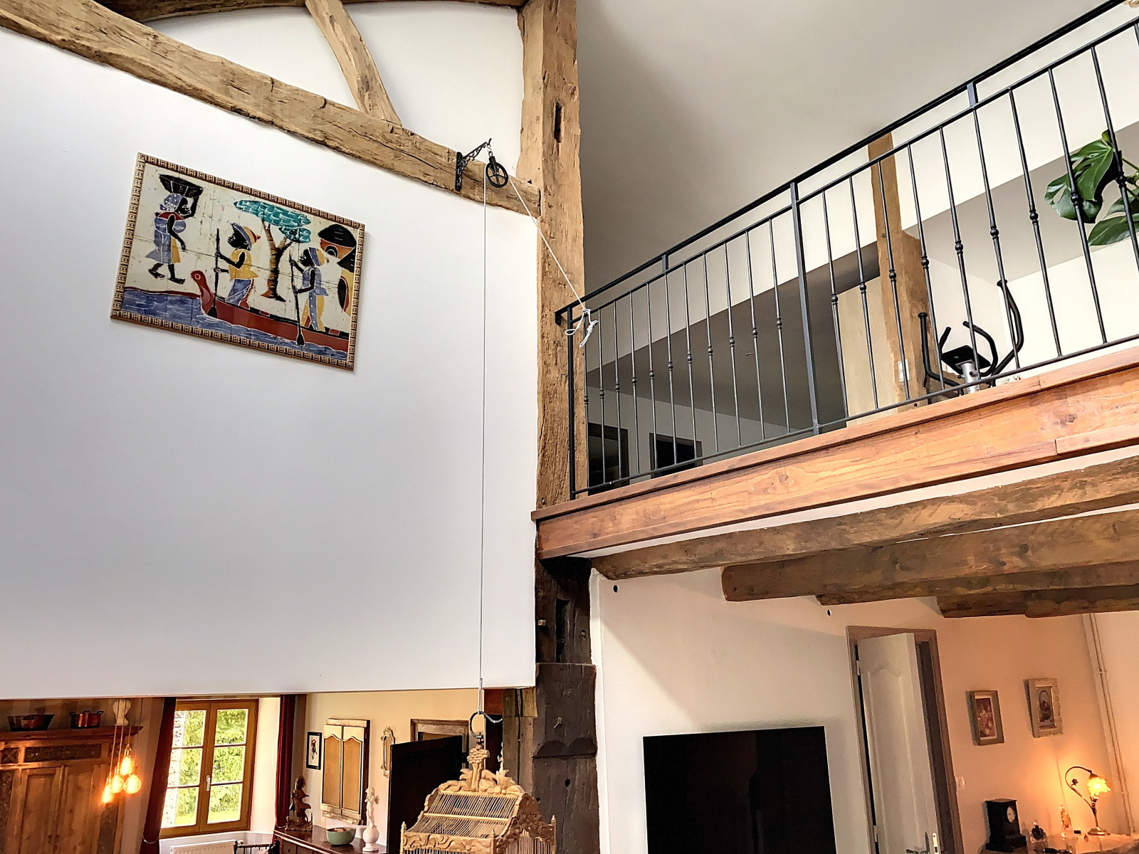 A l'étage : grande mezzanine, une chambre avec un lavabo, une autre grande chambre, une chambre parentale avec salle d'eau et wc, buanderie avec adoucisseur d'eau.