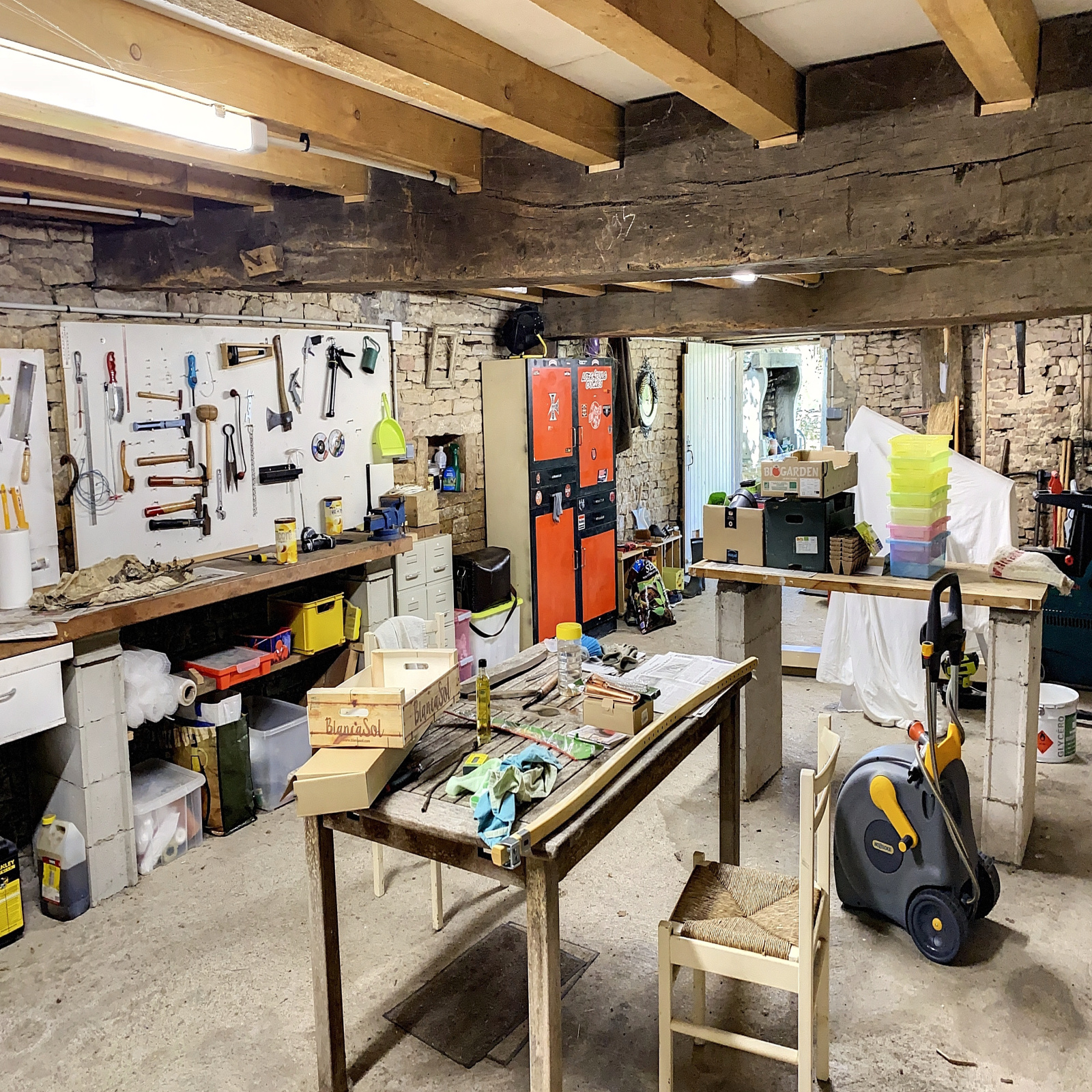 Dépendances attenantes : garage 2 voitures, grand atelier, ancienne écurie avec cuve à fuel.