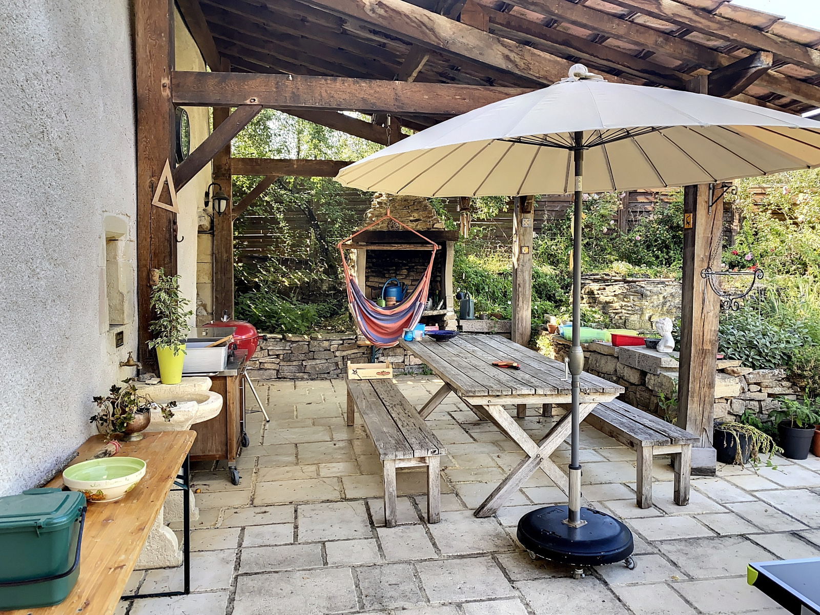 Découvrez en exclusivité Py Immobilier cette superbe ferme rénovée, sur terrain de 49 a 45 ca comprenant :