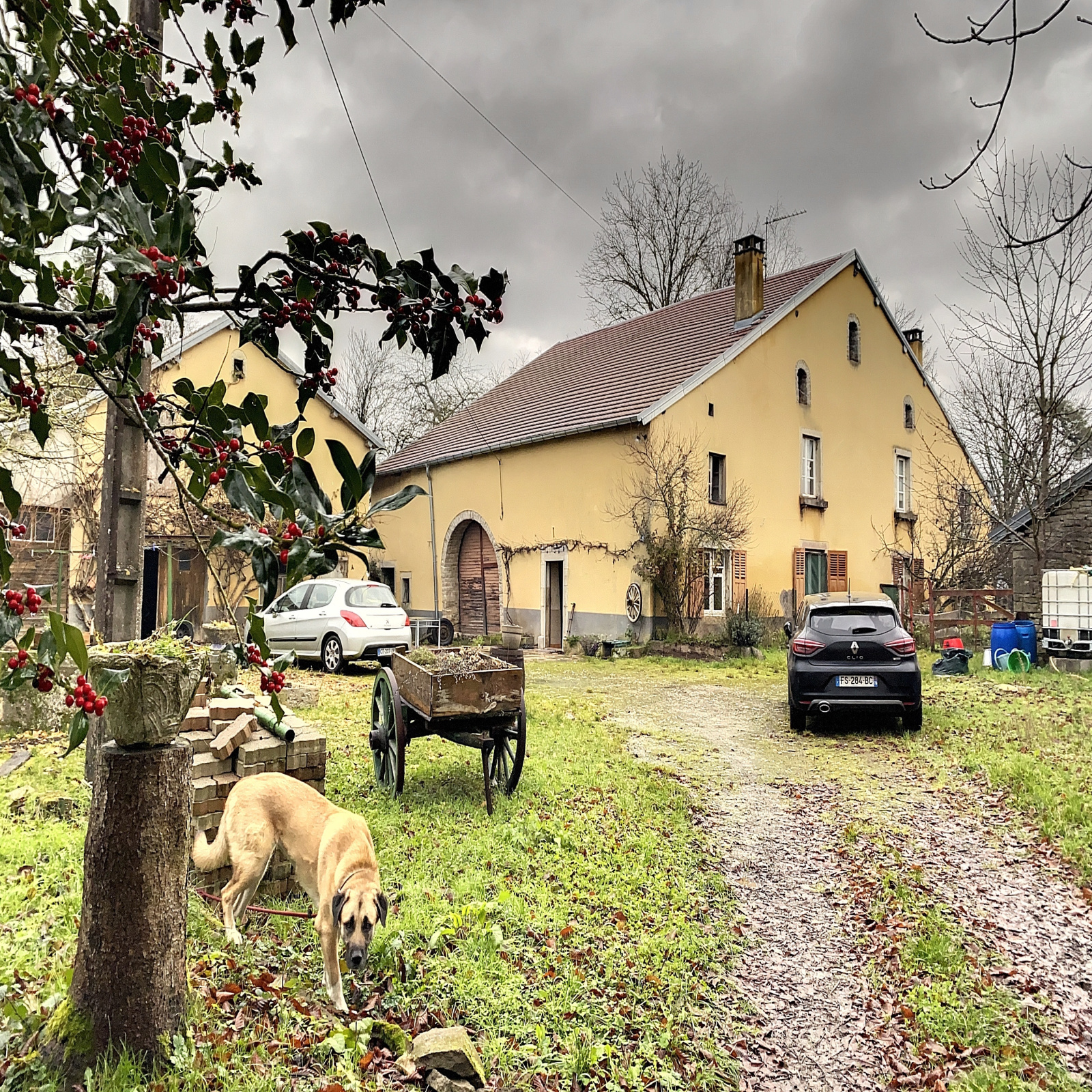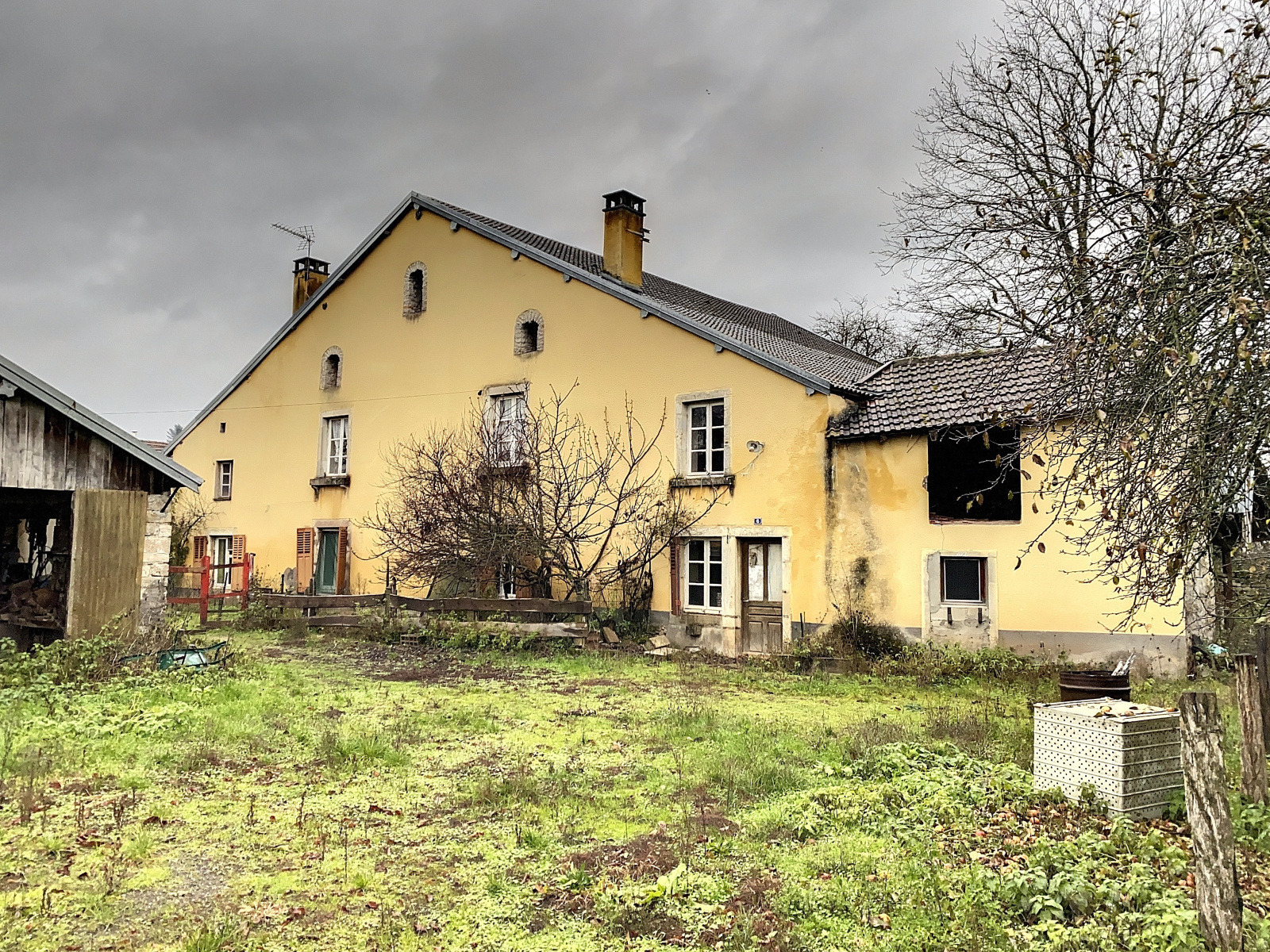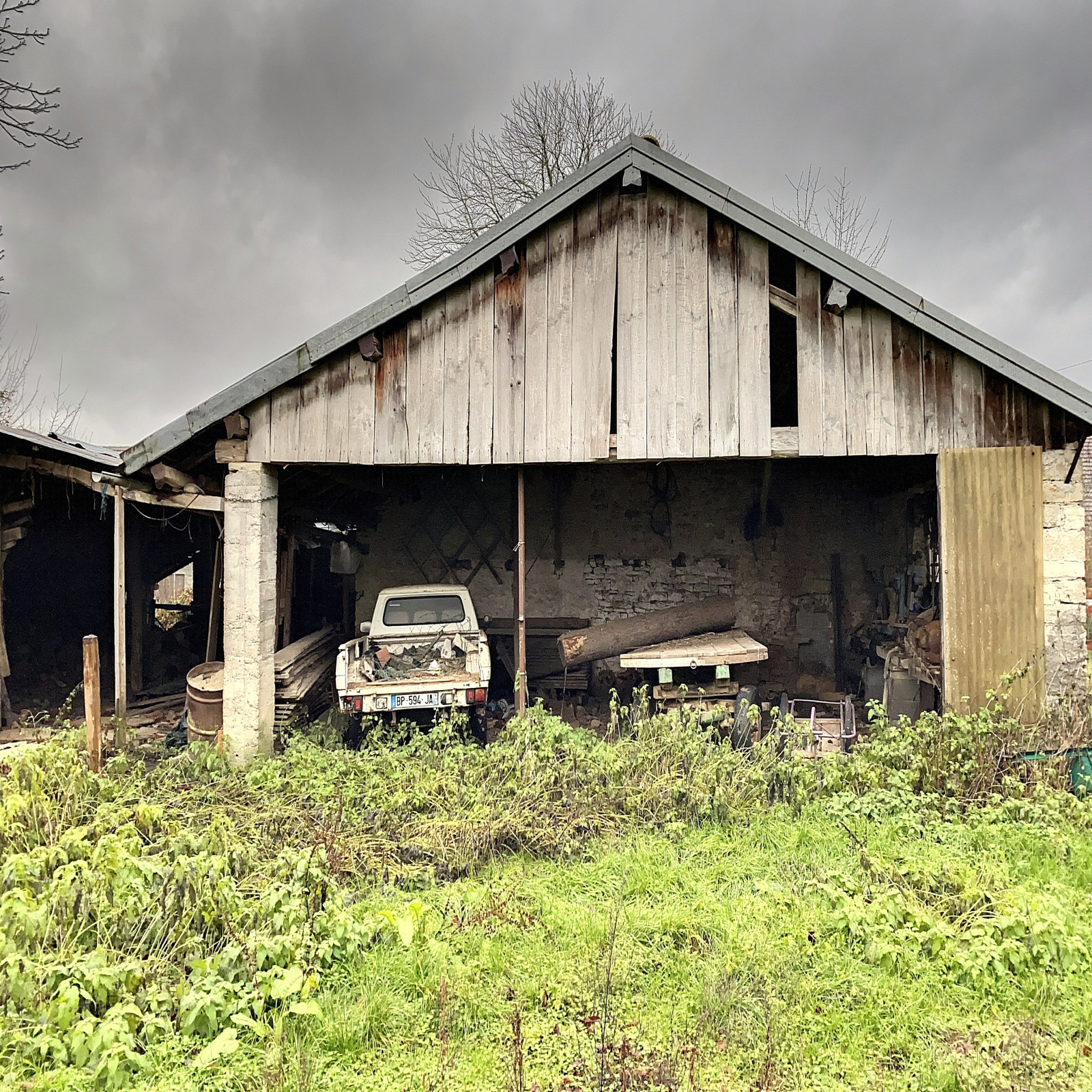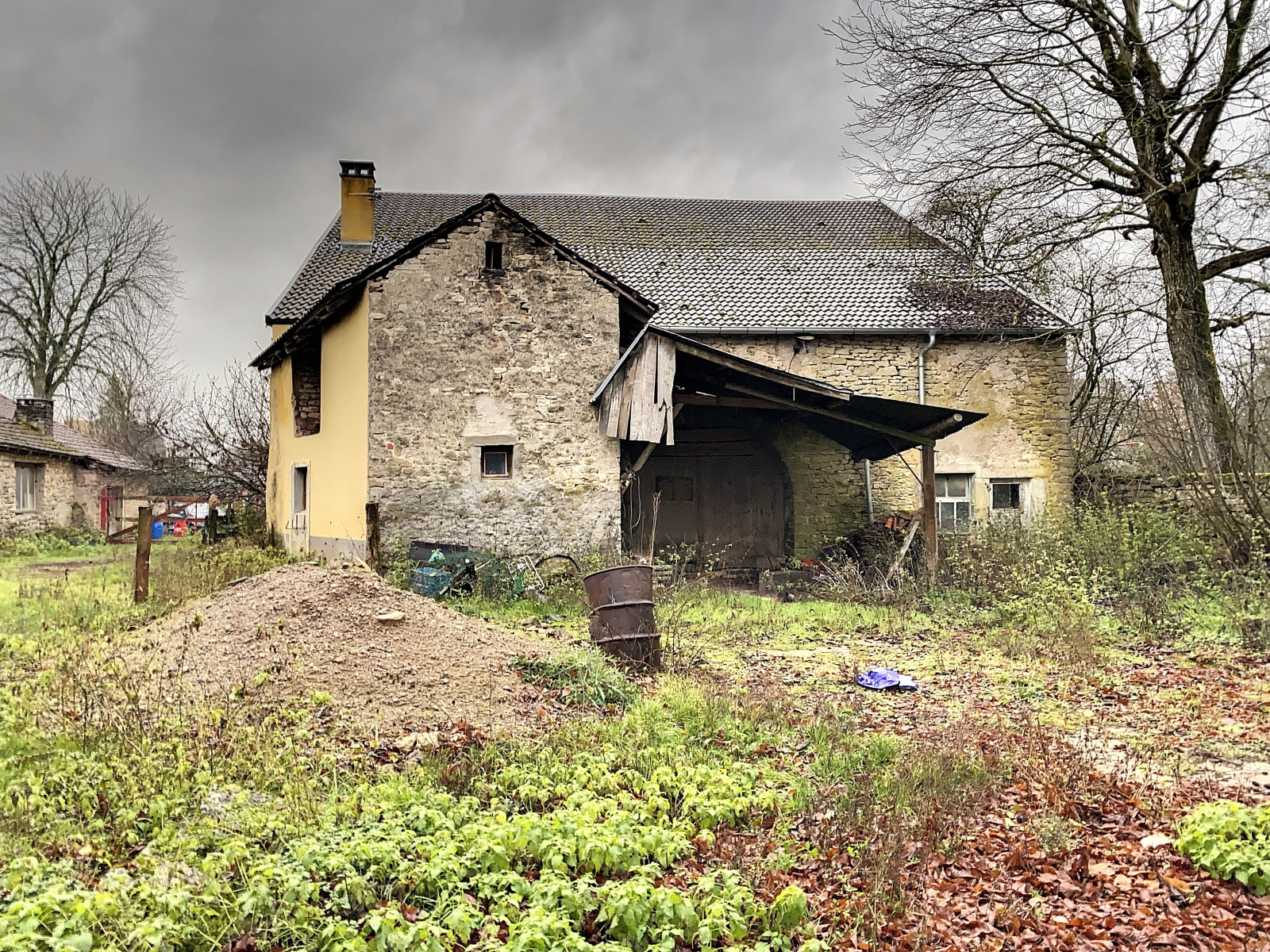 Grange attenante à la maison, 2 bâtiments annexes, grand hangar.