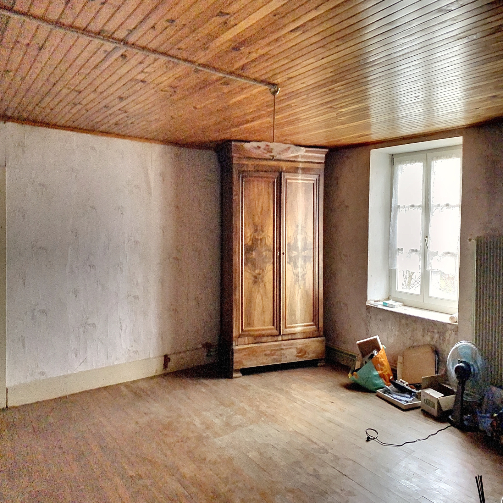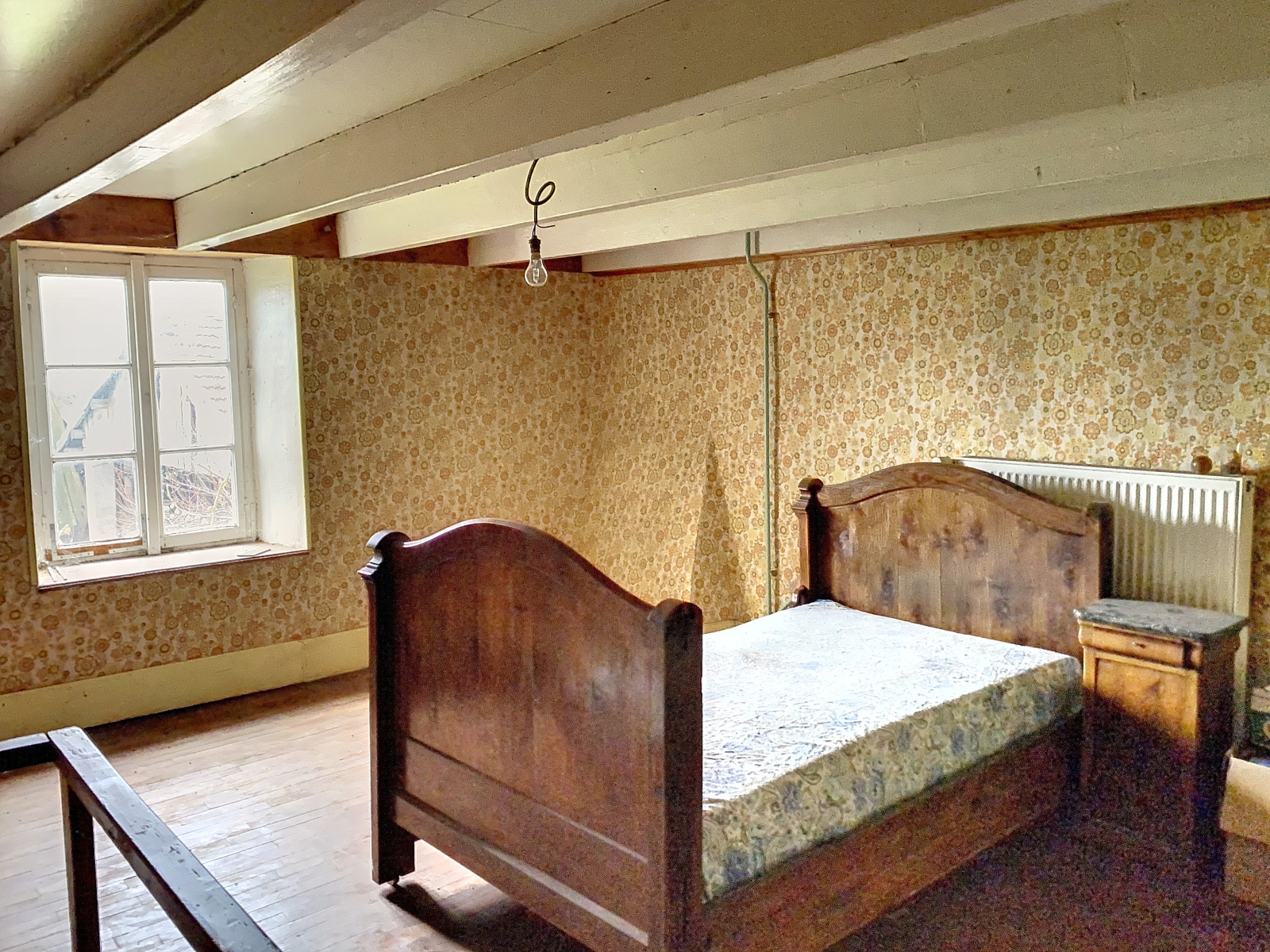 A l'étage : 3 chambres en enfilade (possibilité de les rendre indépendantes), une pièce (possibilité chambre ou salle d'eau), grenier.