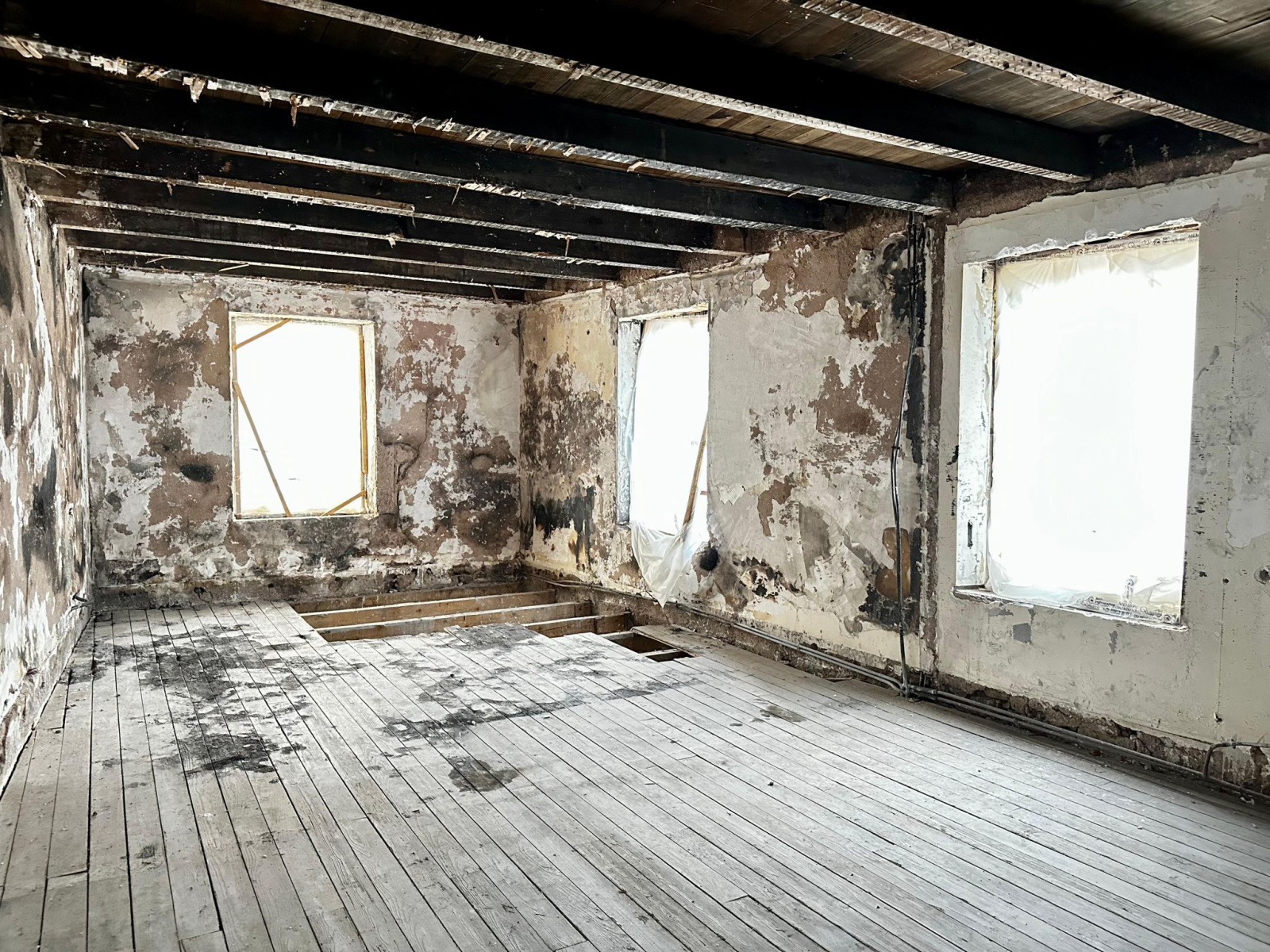 Au 1er étage : une grande pièce (35 m2 env, possibilité 2 chambres ou salon et une chambre).