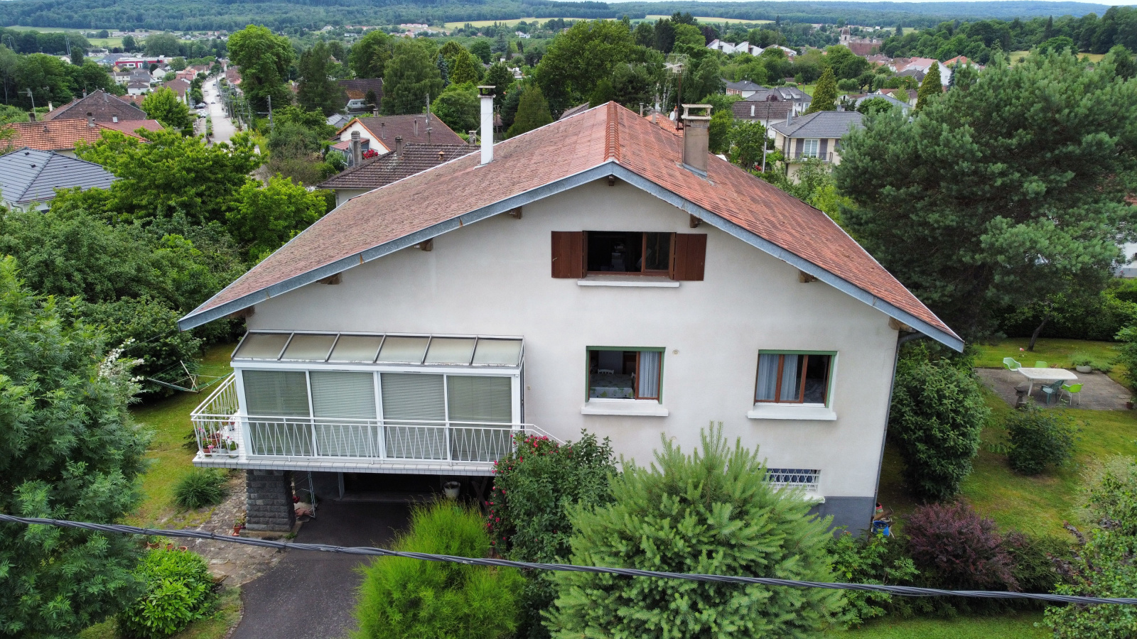 Sous-sol : pièce à vivre avec point d'eau, garage avec porte sectionnelle, chaufferie, atelier.