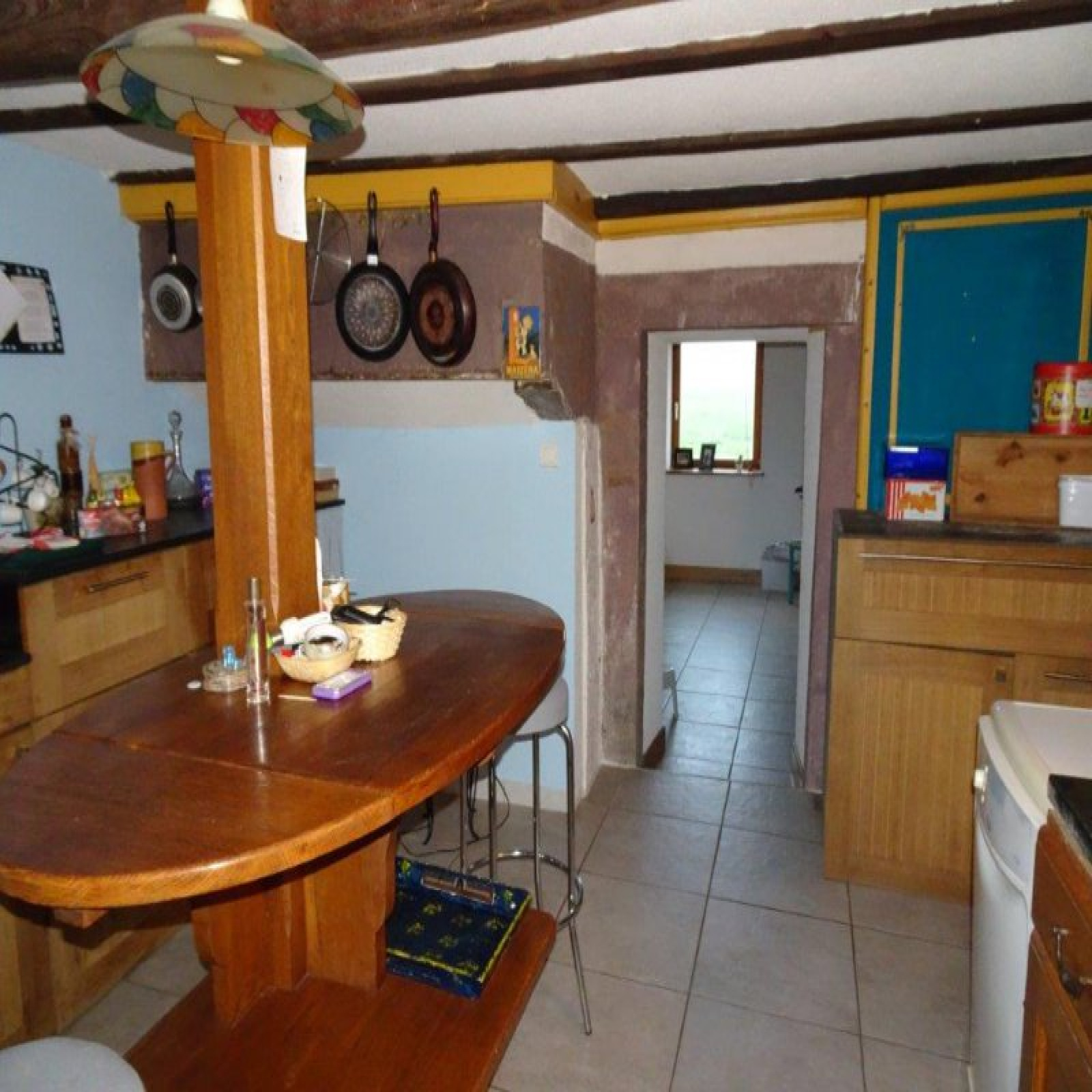Au rez-de-chaussée : entrée, cuisine semi-équipée, salle à manger, salon avec chemnée, salle d'eau avec wc, chaufferie/buanderie.